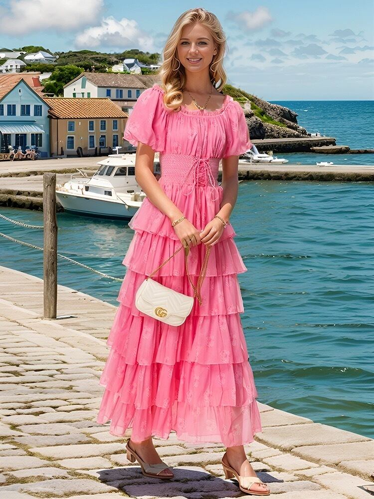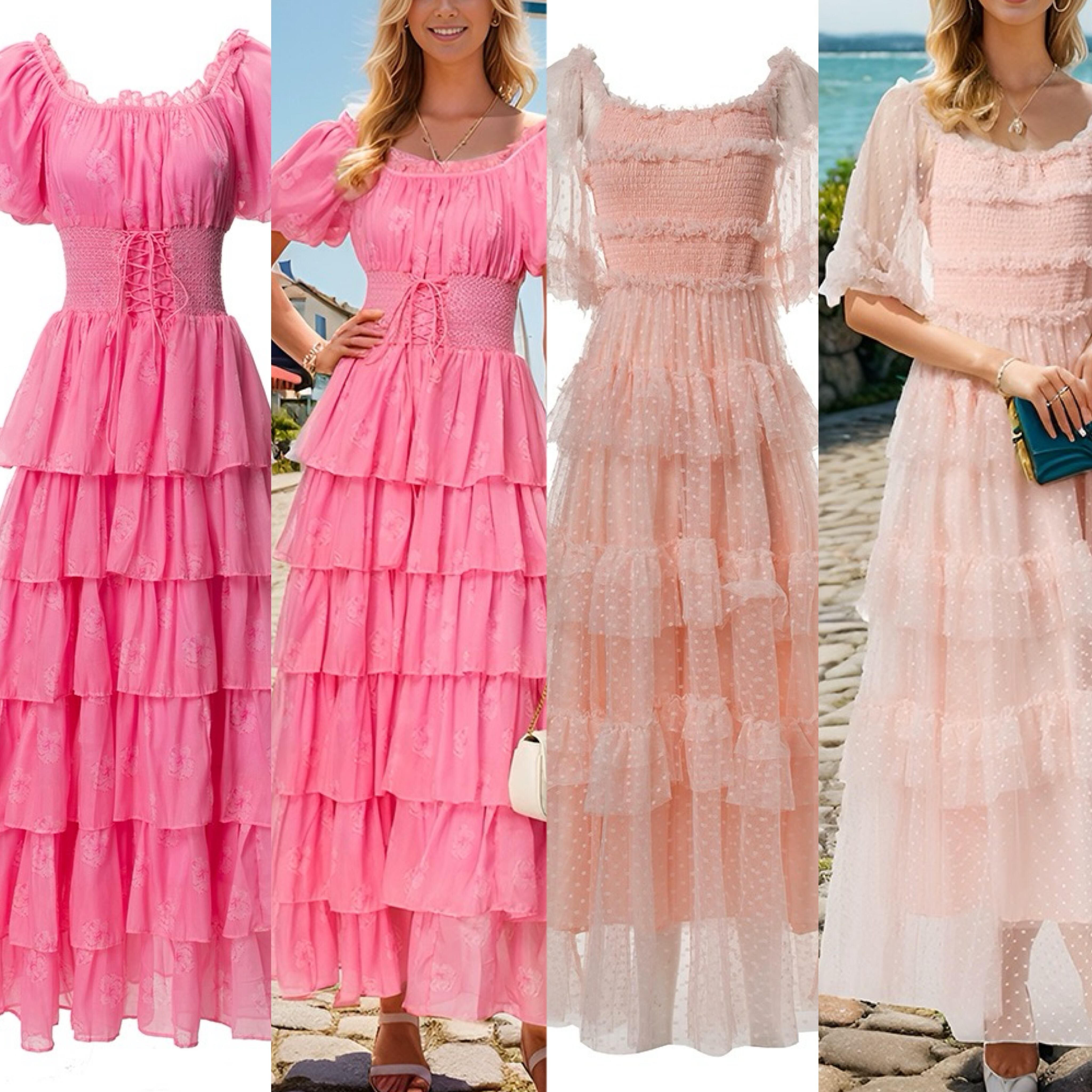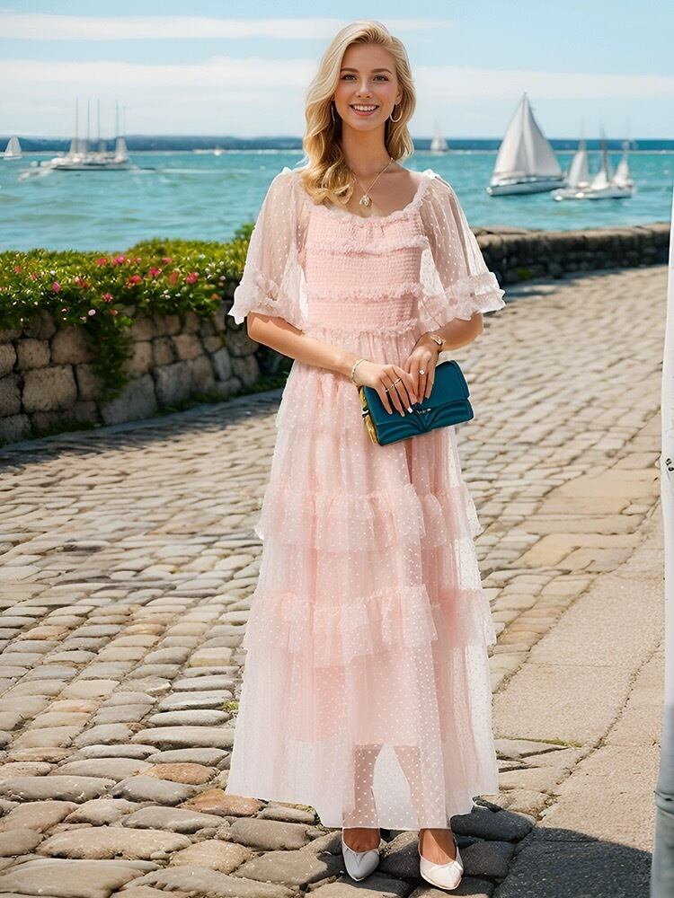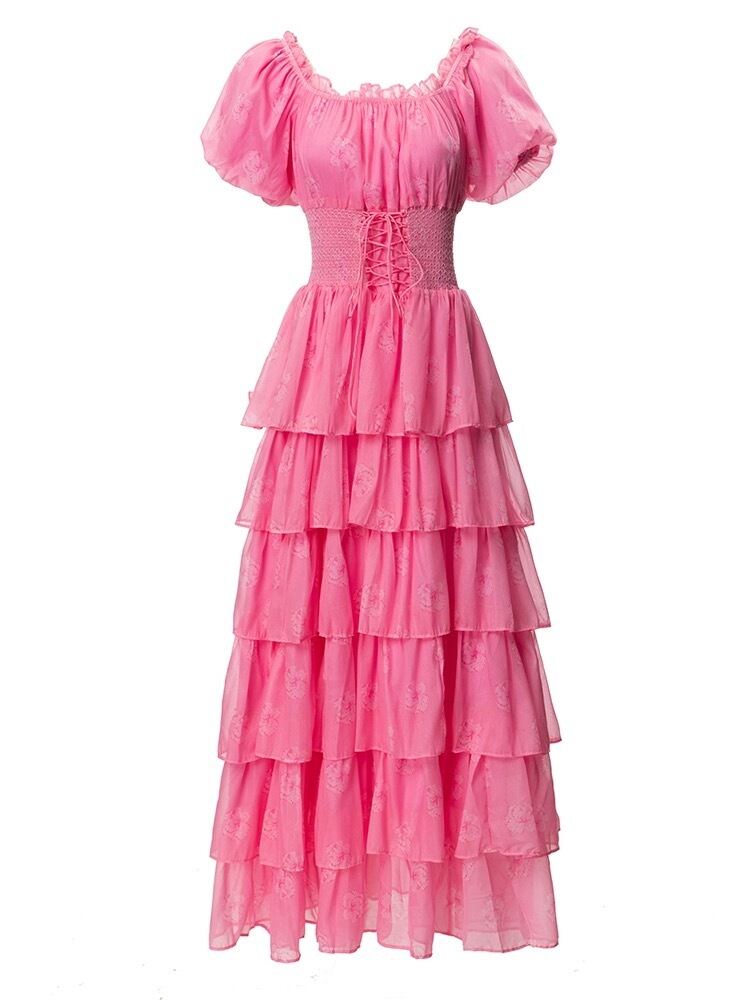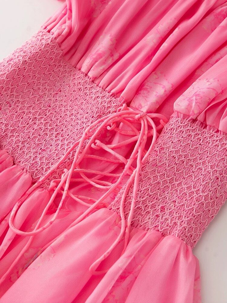 【2XLまで】ピンク リボン ガーリー ワンピース エレガント