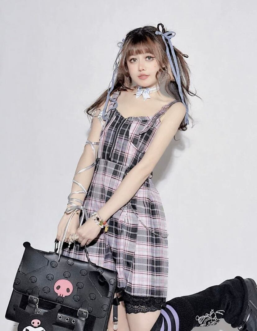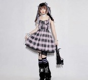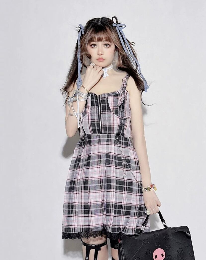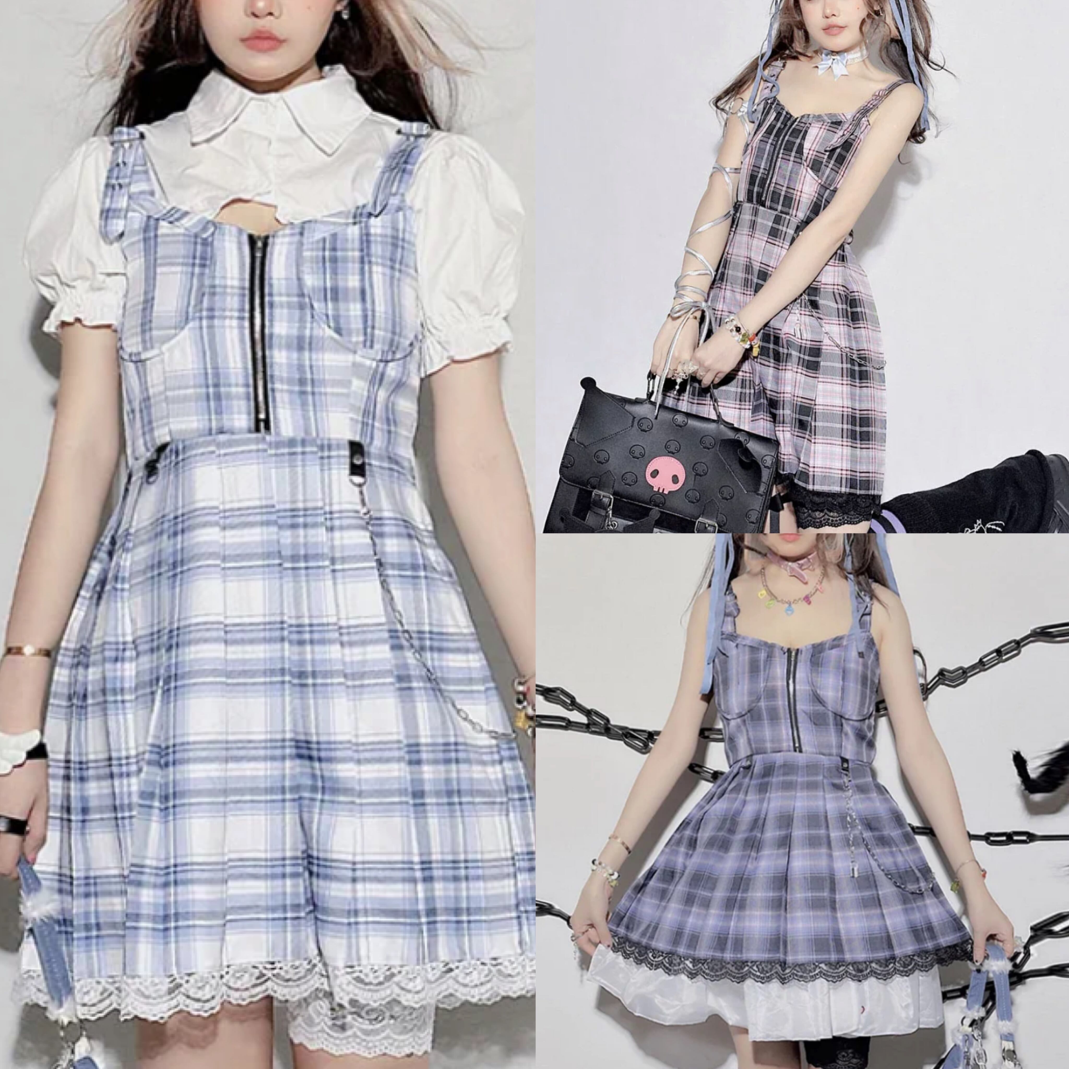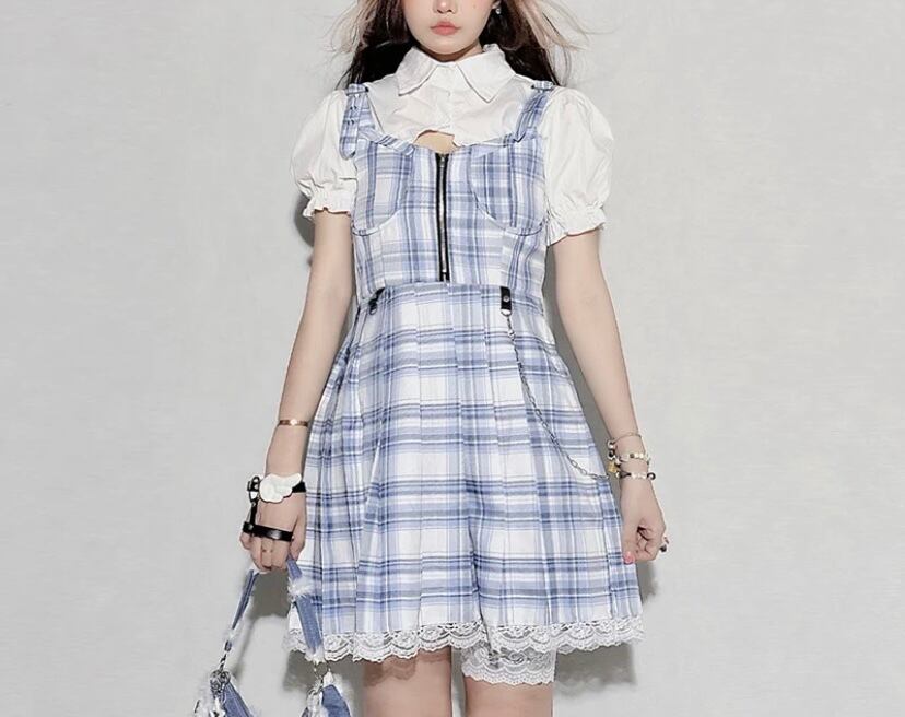 チェック ガーリー 水色 可愛い ワンピース グレー 原宿