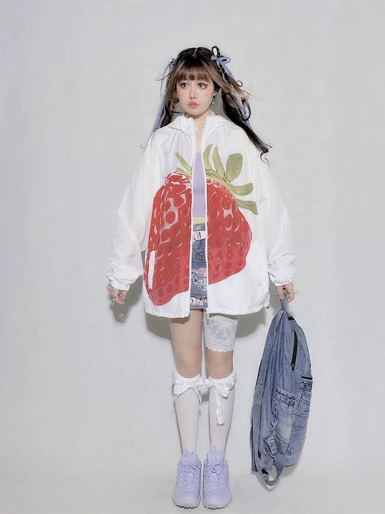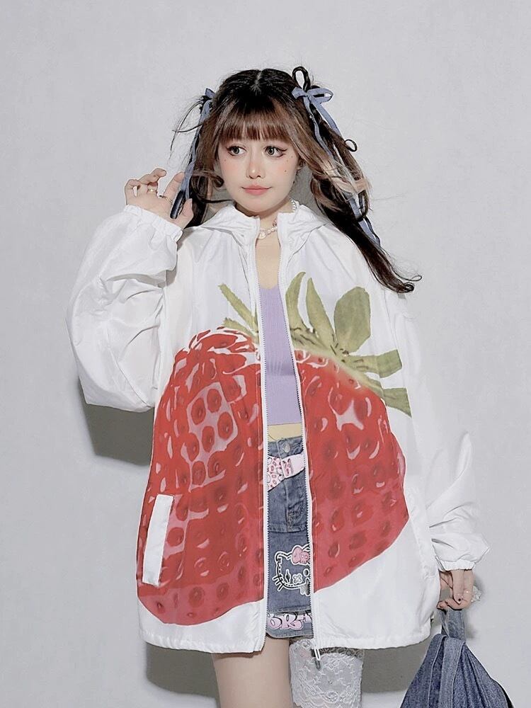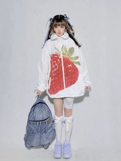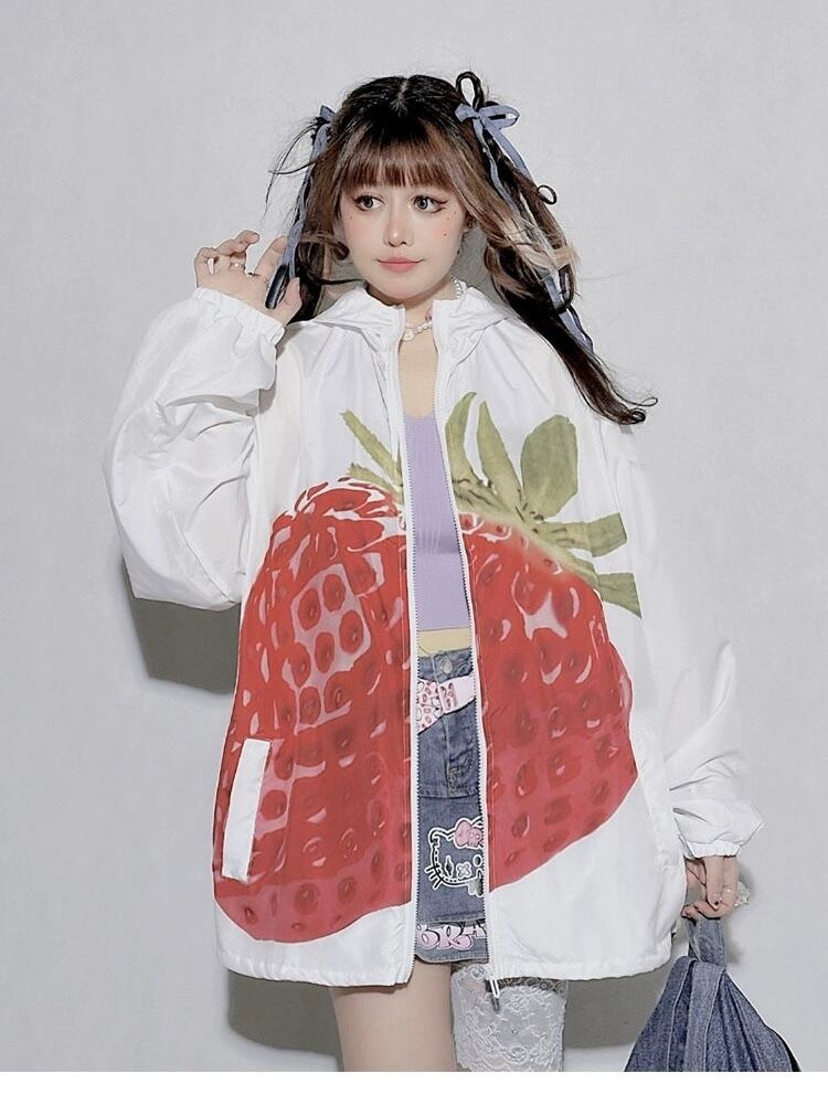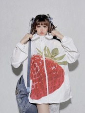 ジャンパー ブルゾン カーディガン 白 赤 いちご 原宿 可愛い