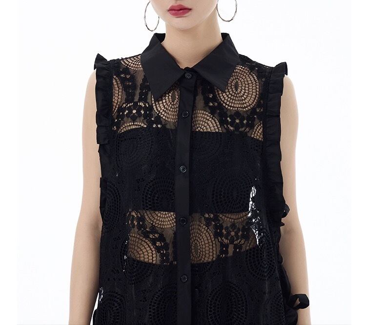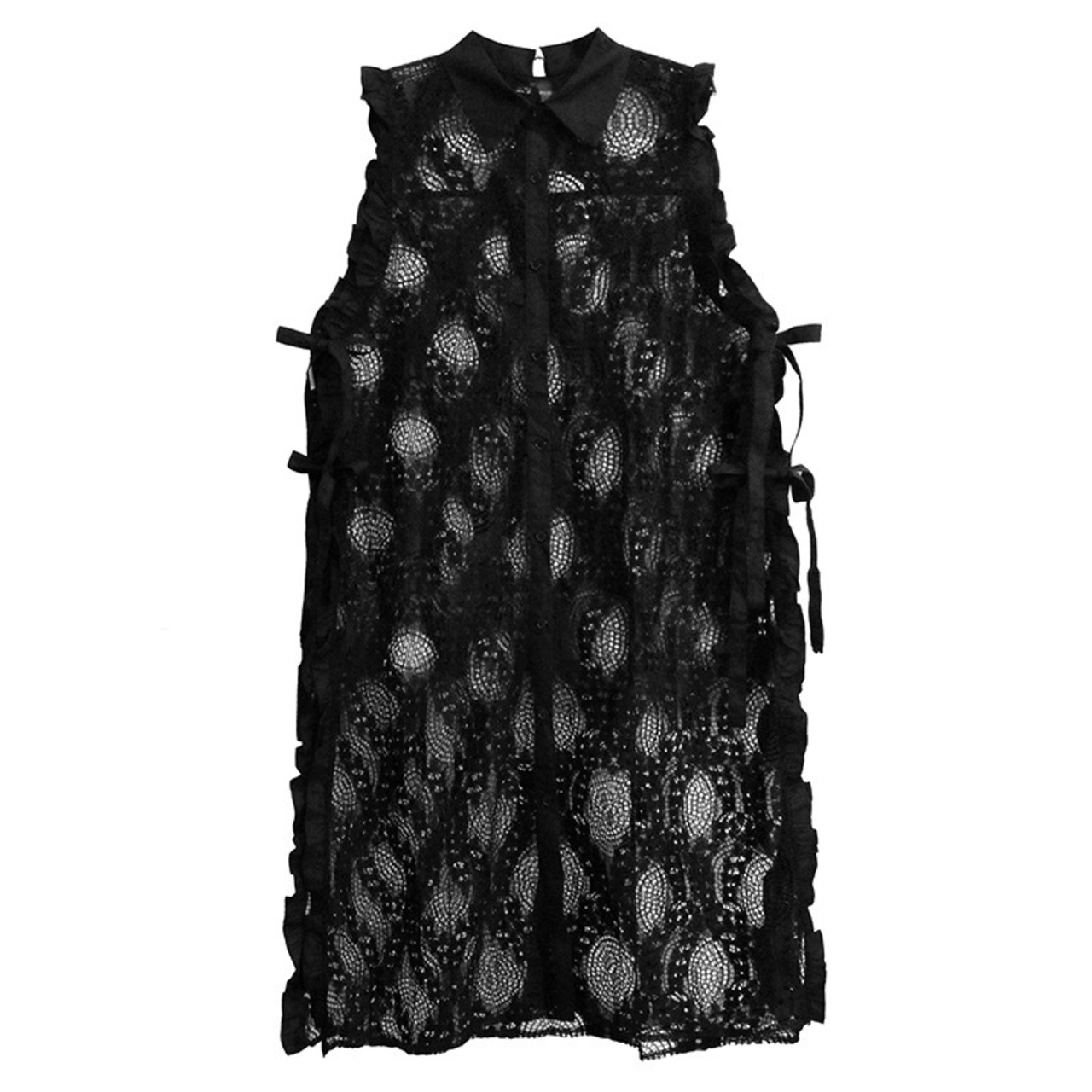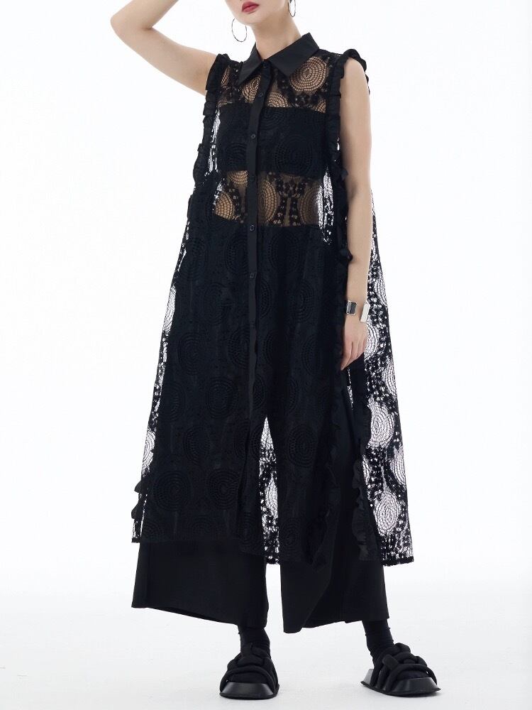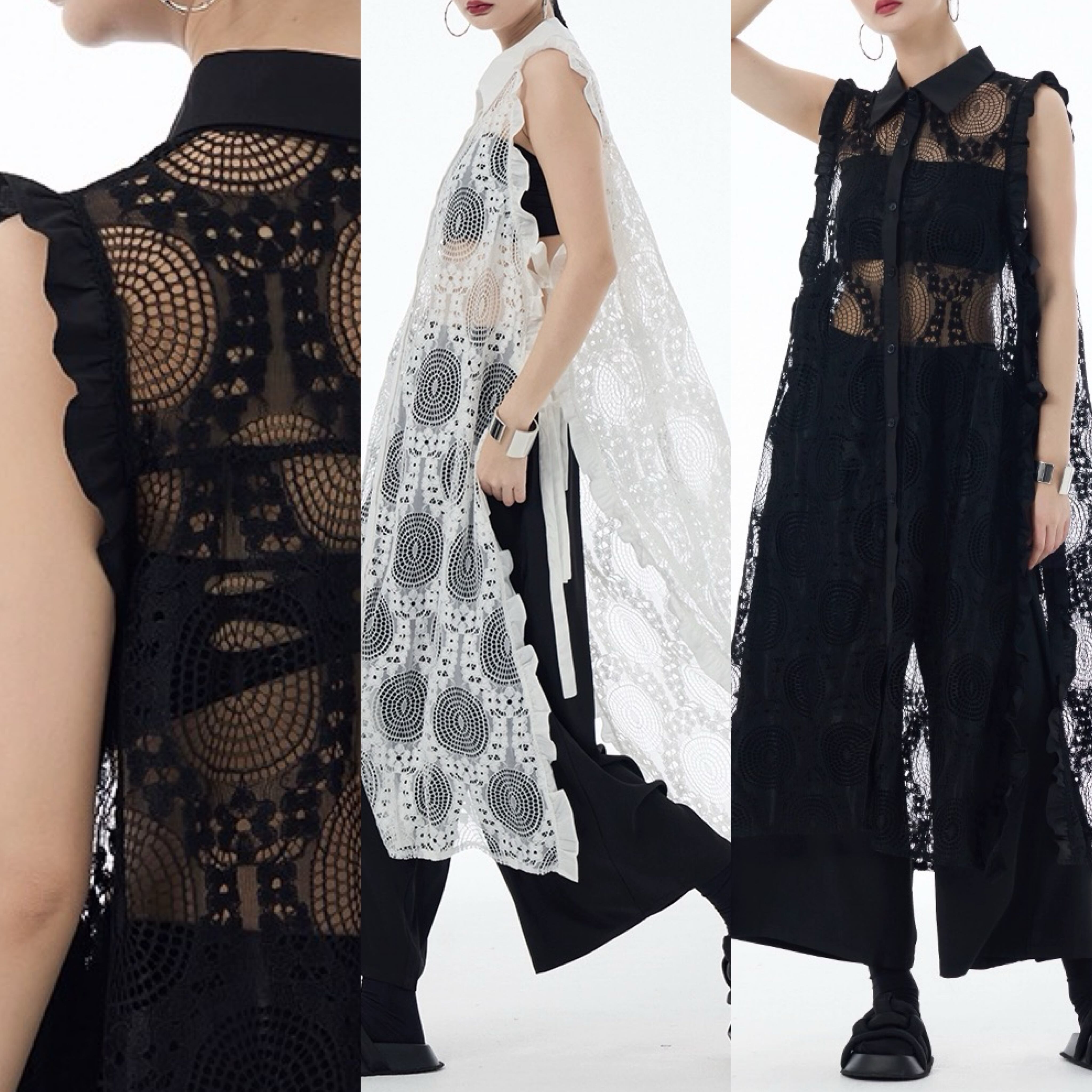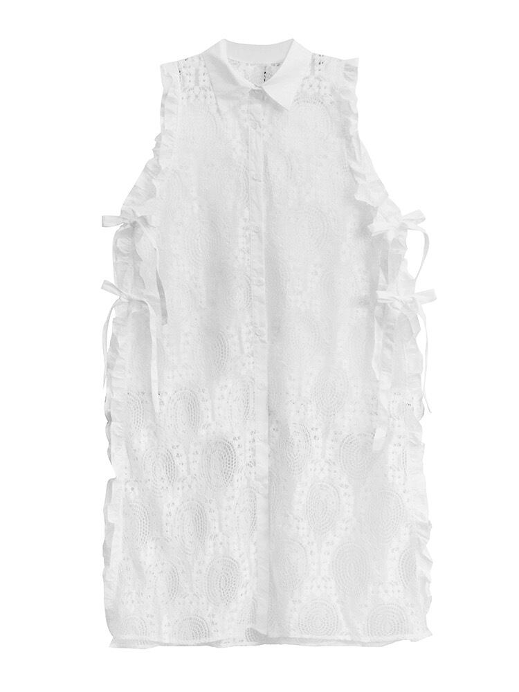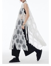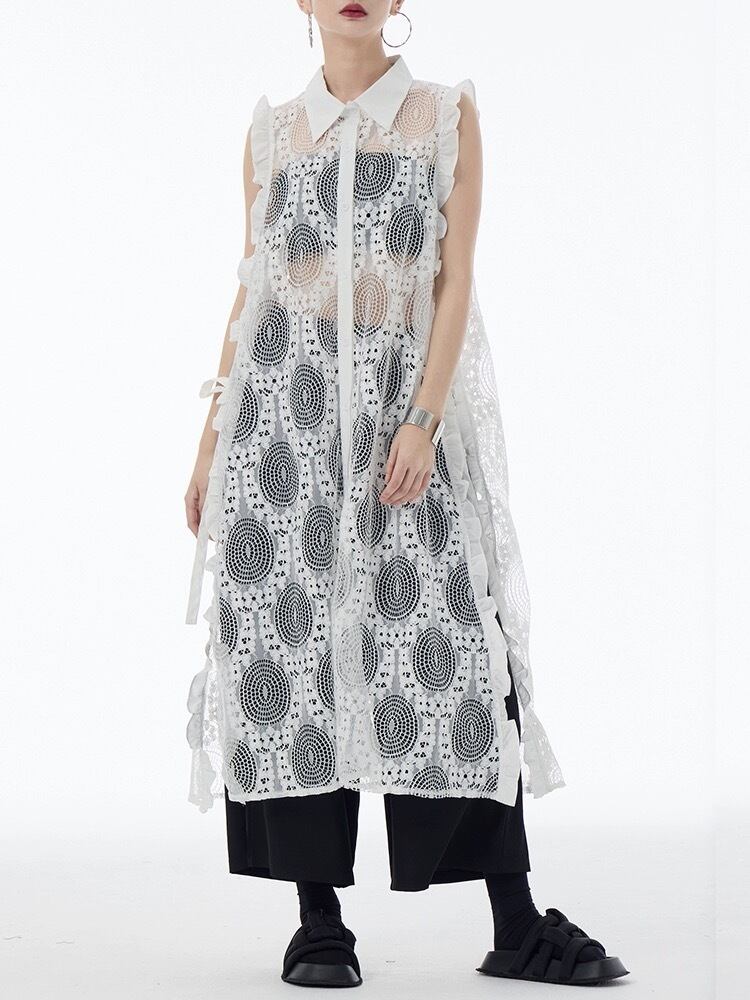 白 カーディガン シースルー 黒 水玉 ドット ワンピース