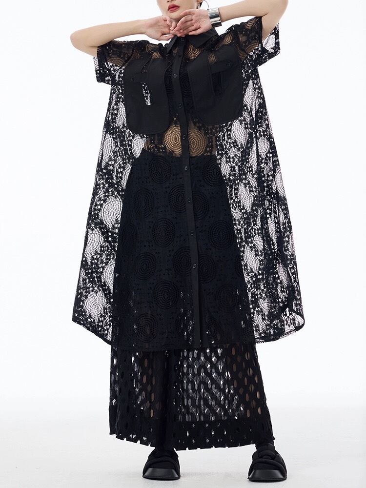 黒 白 シースルー ワンピース ブラウス カーディガン ゆったり