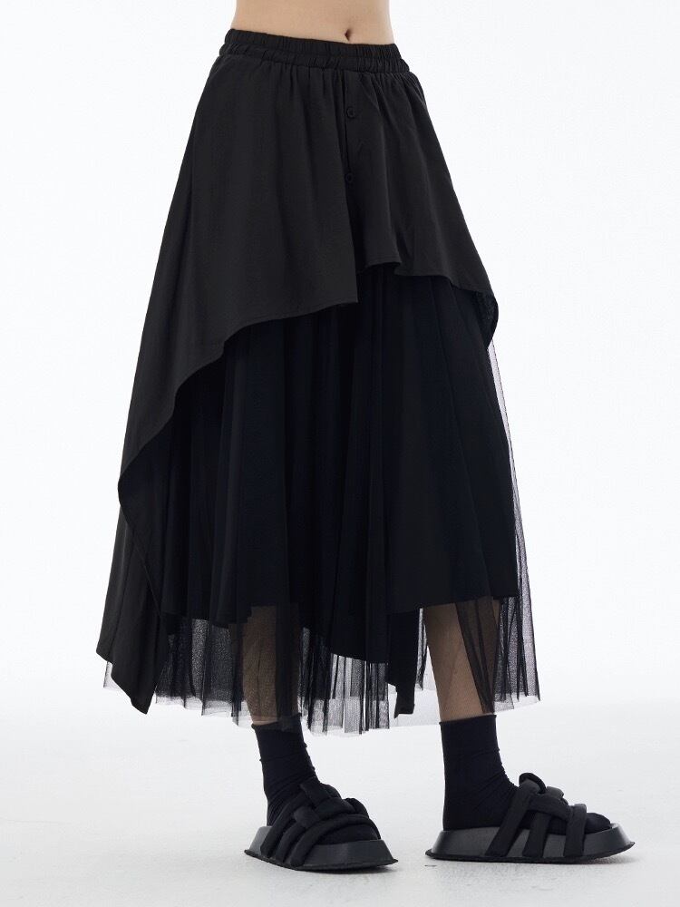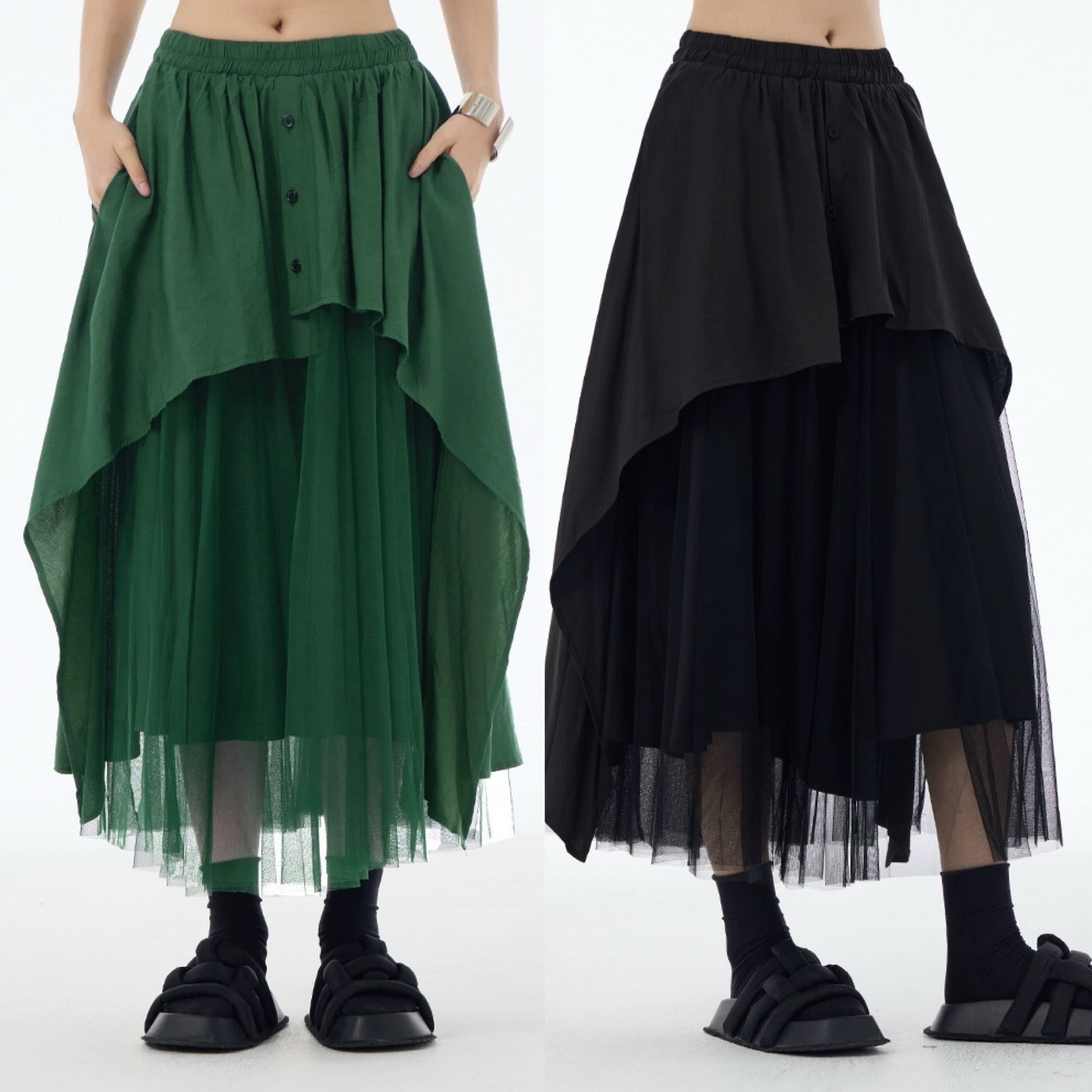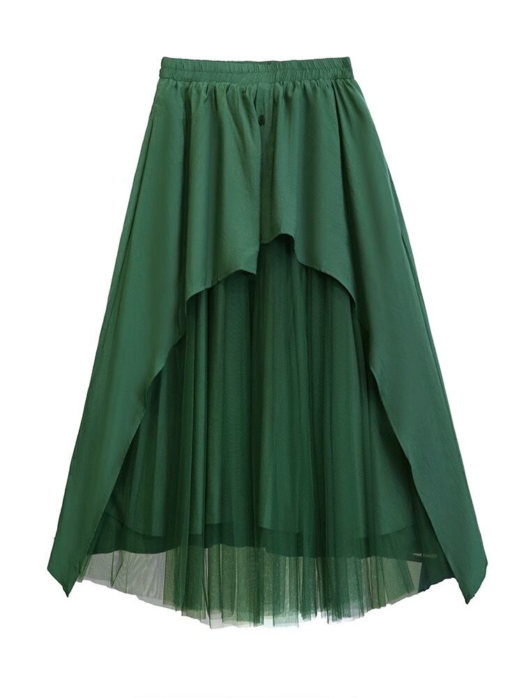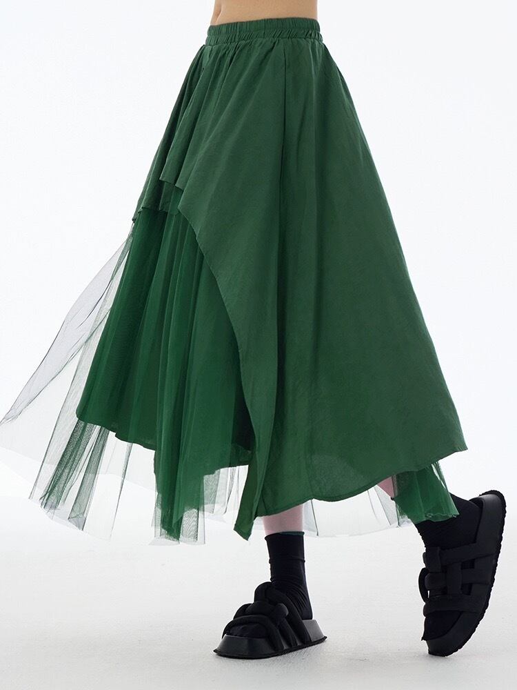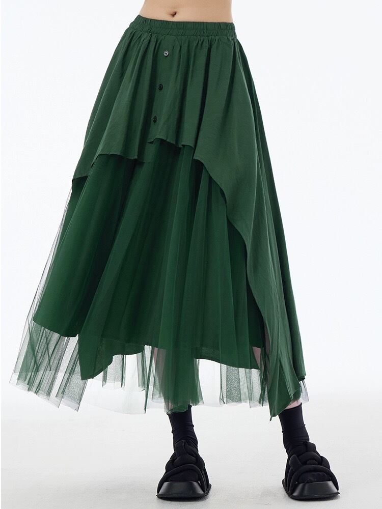 黒 緑 マキシ ボトムス スカート モード シンプル
