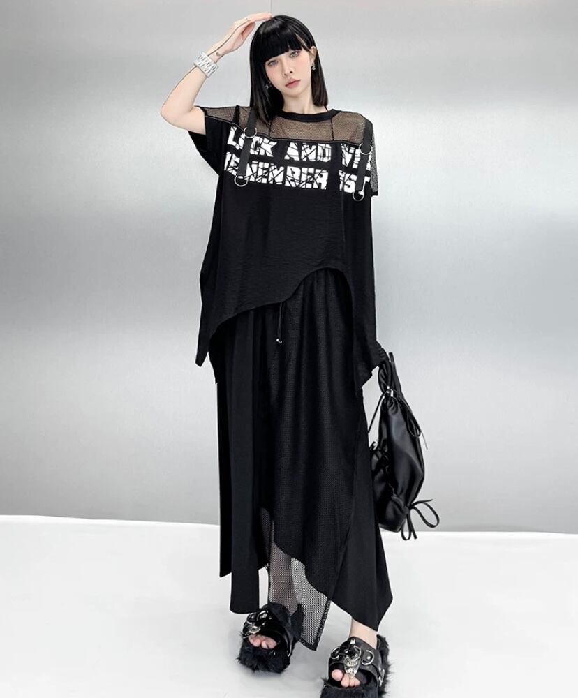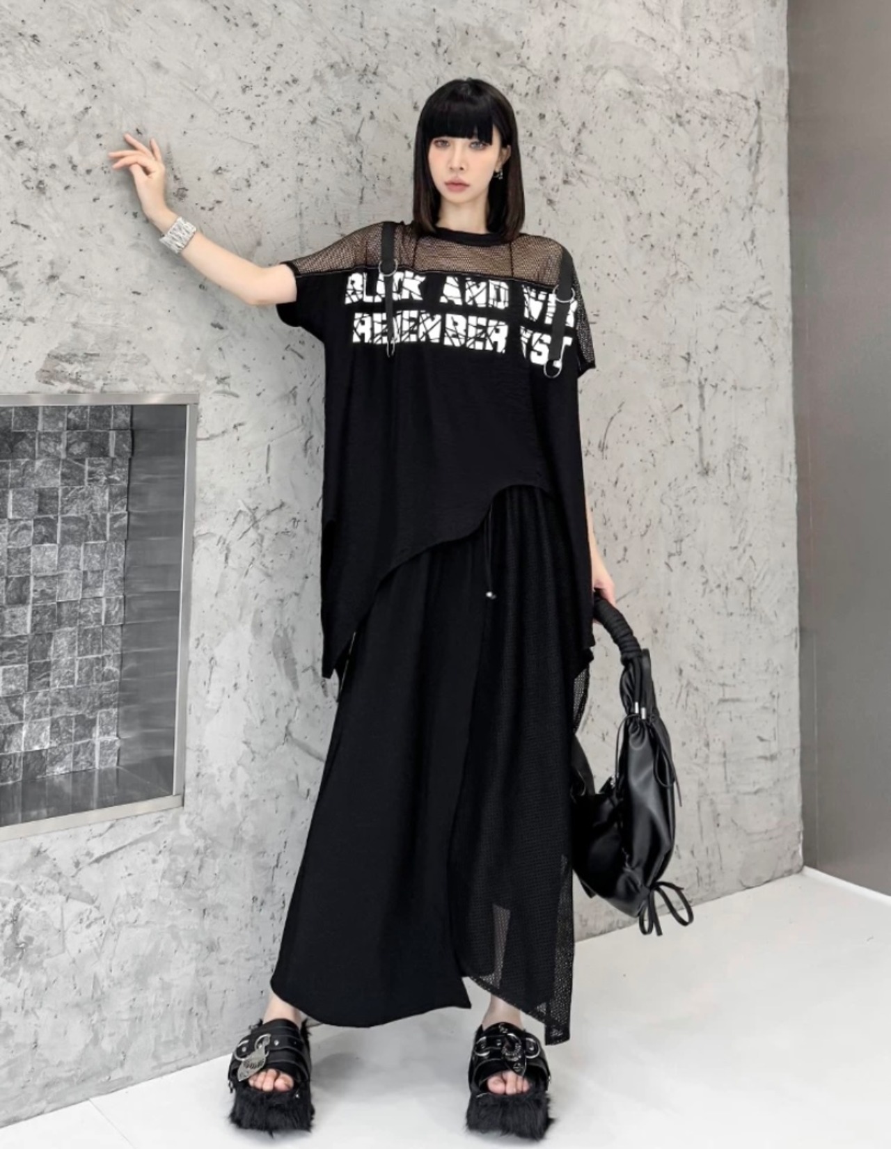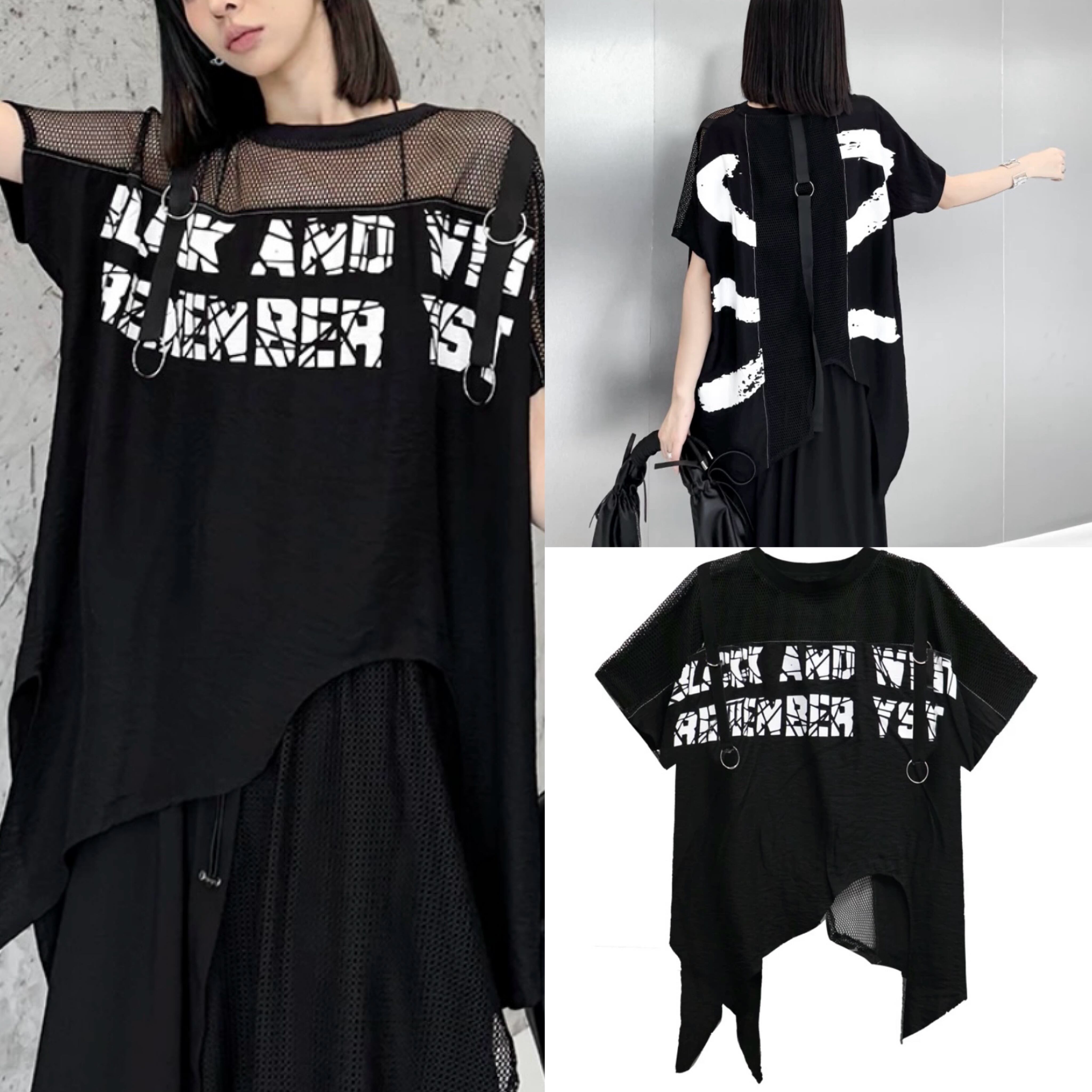黒 モード メッシュ Tシャツ ブラウス ブラック カジュアル