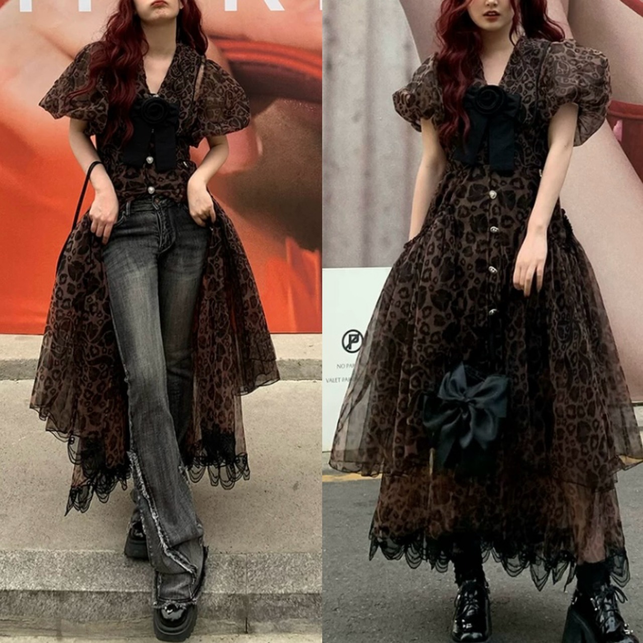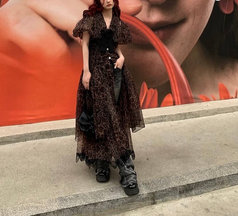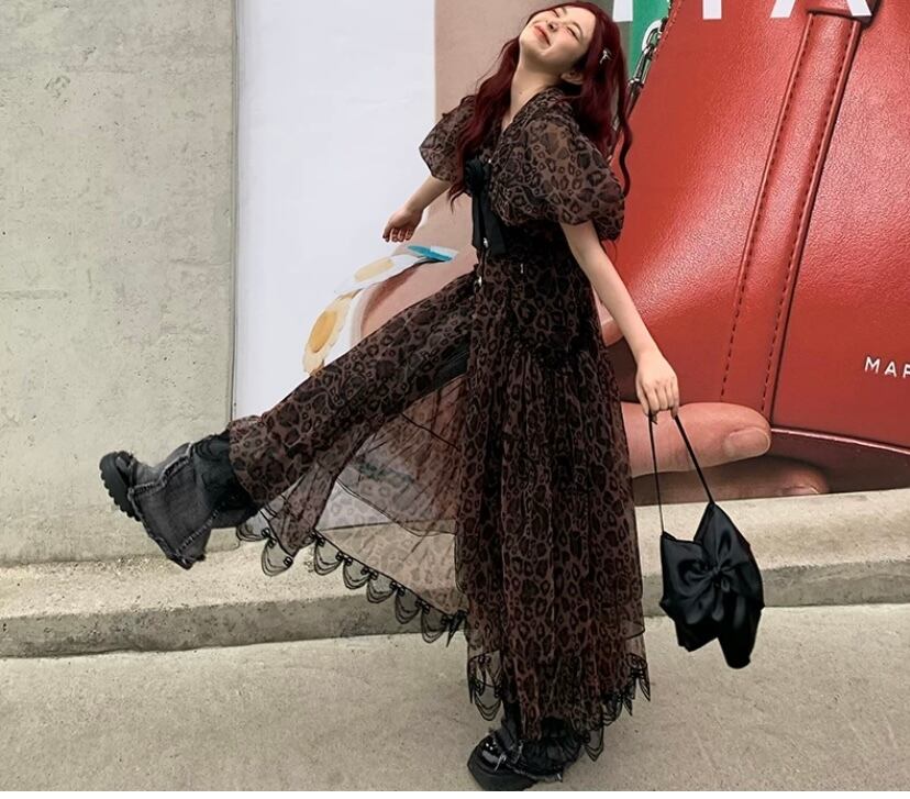 レオパード 豹柄 茶色 黒 ワンピース 可愛い カーディガン ブラウス ロング アウター