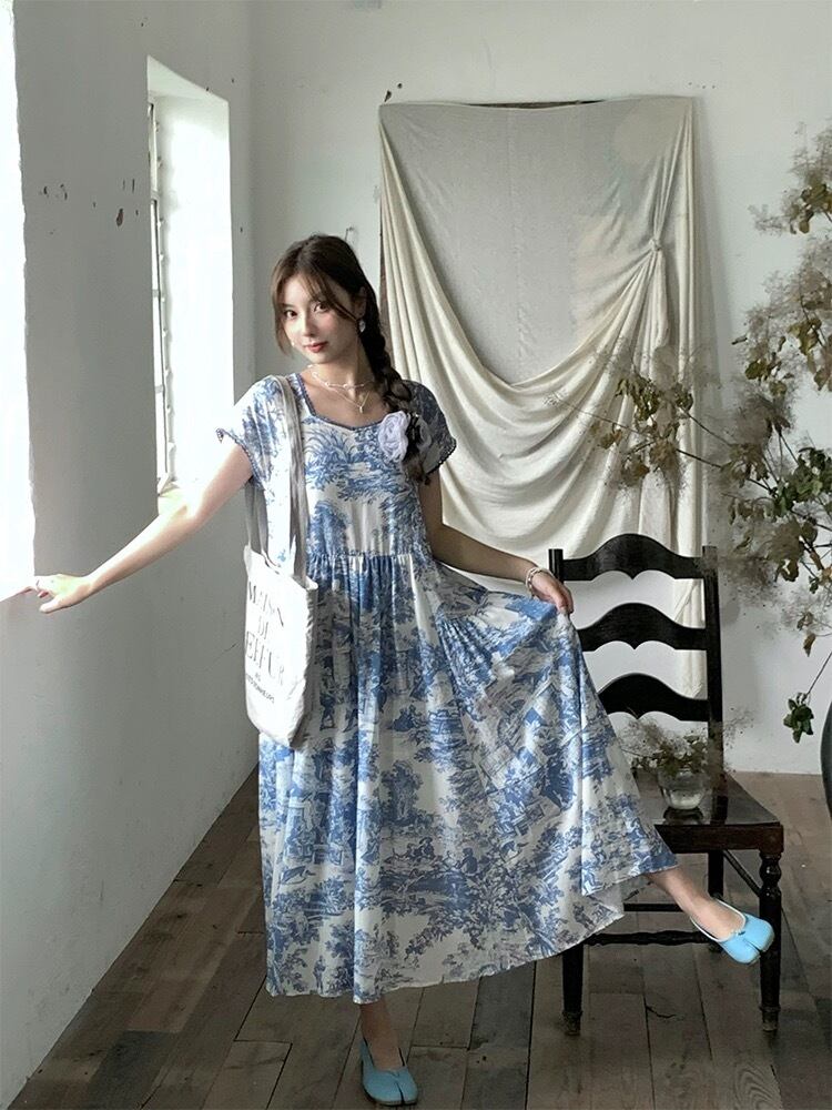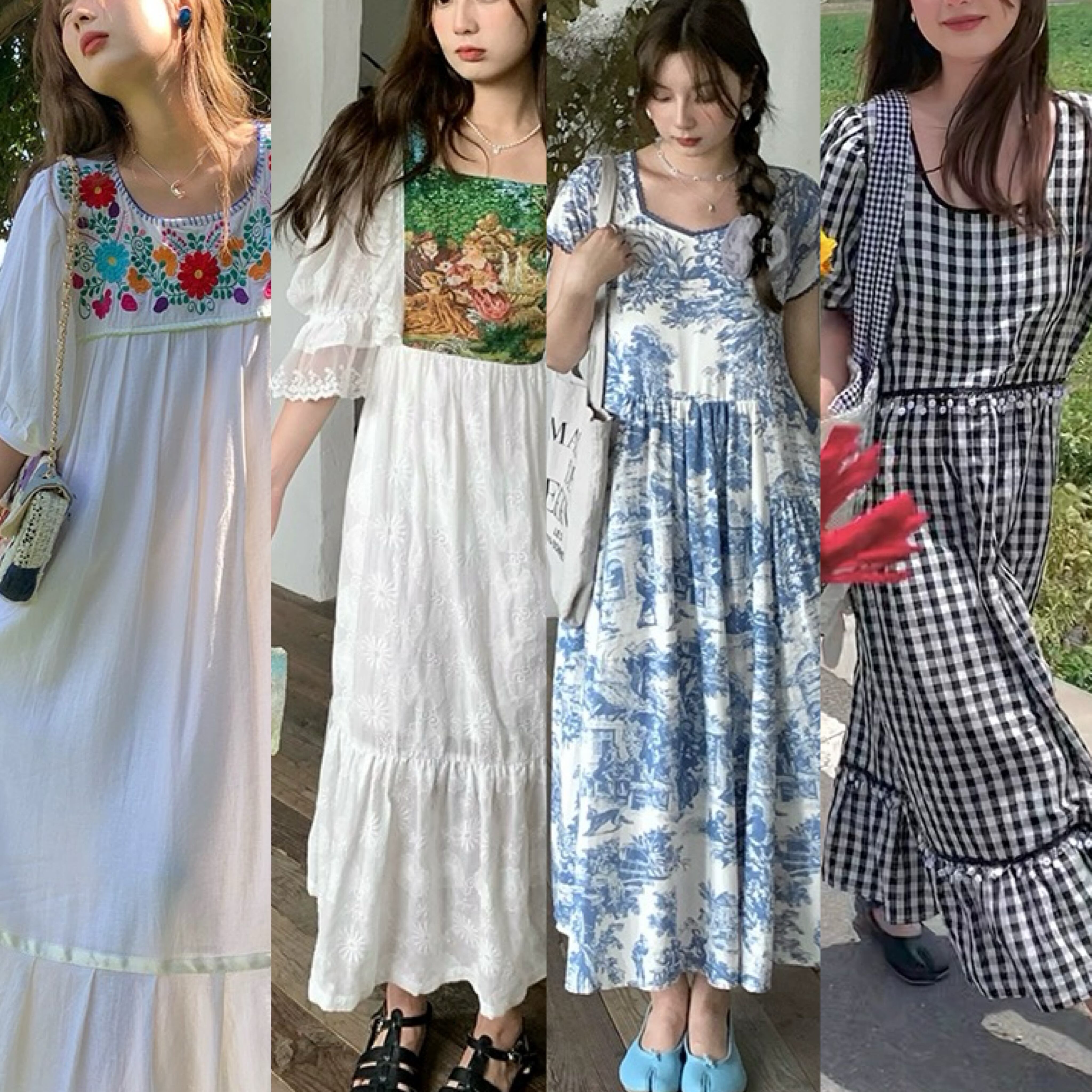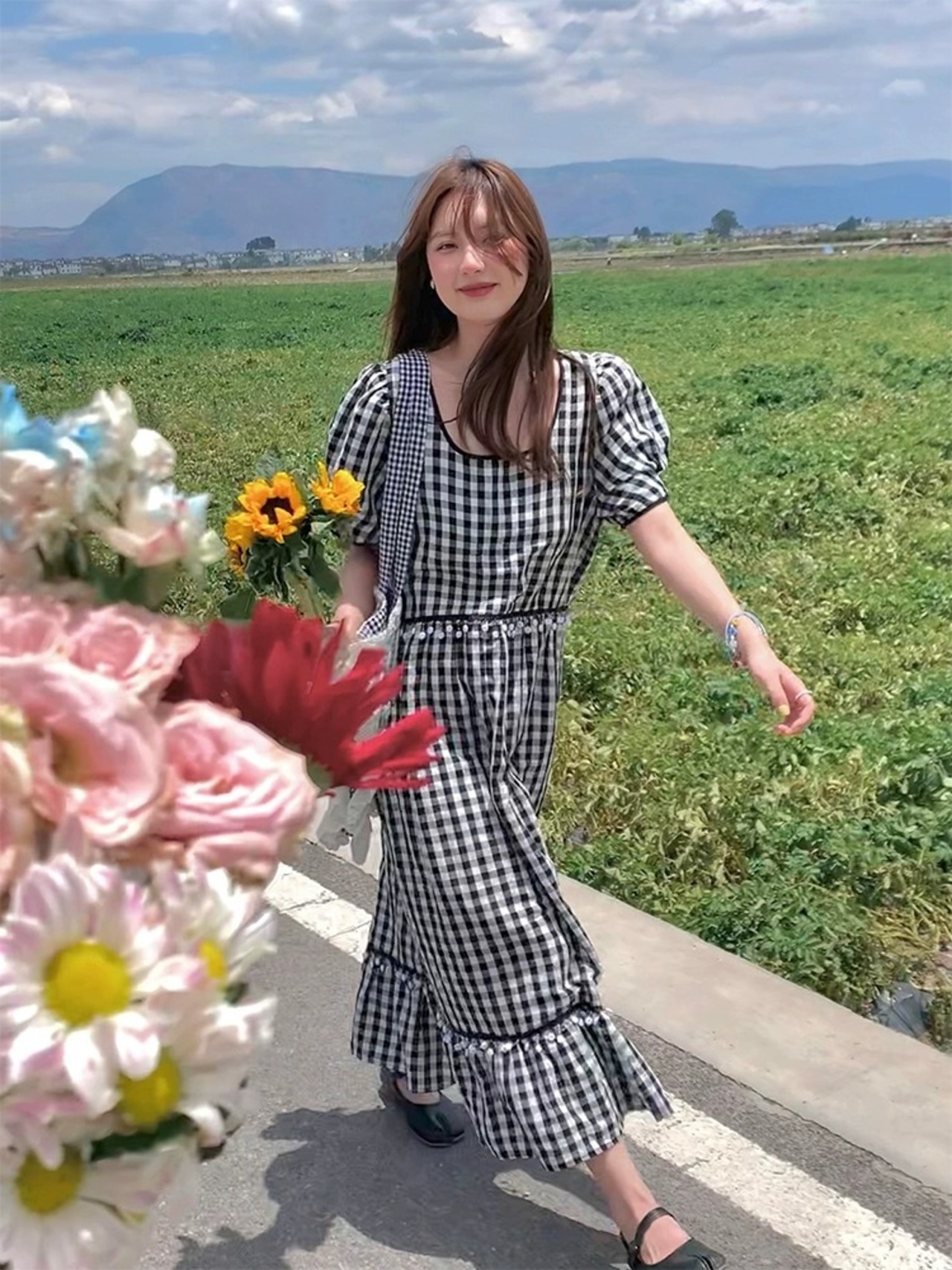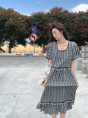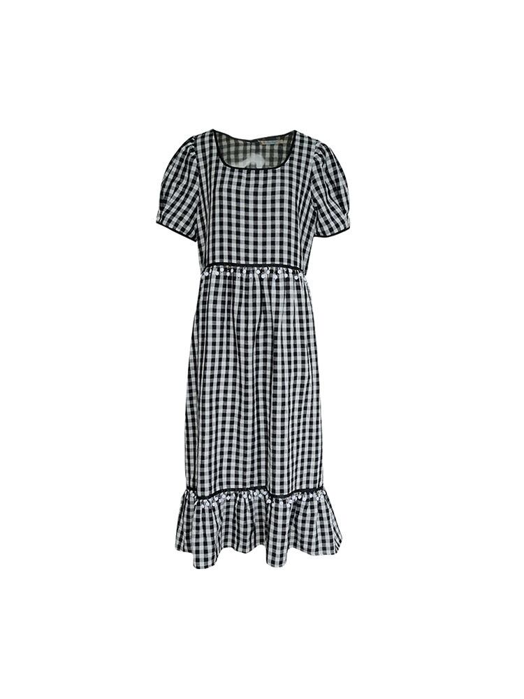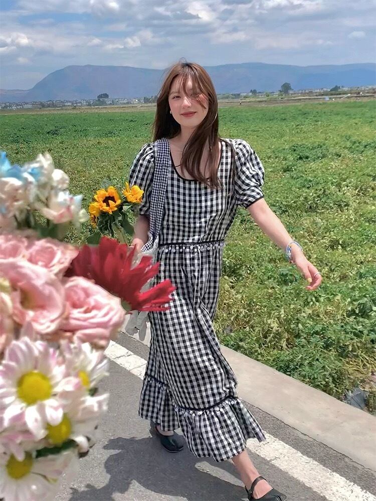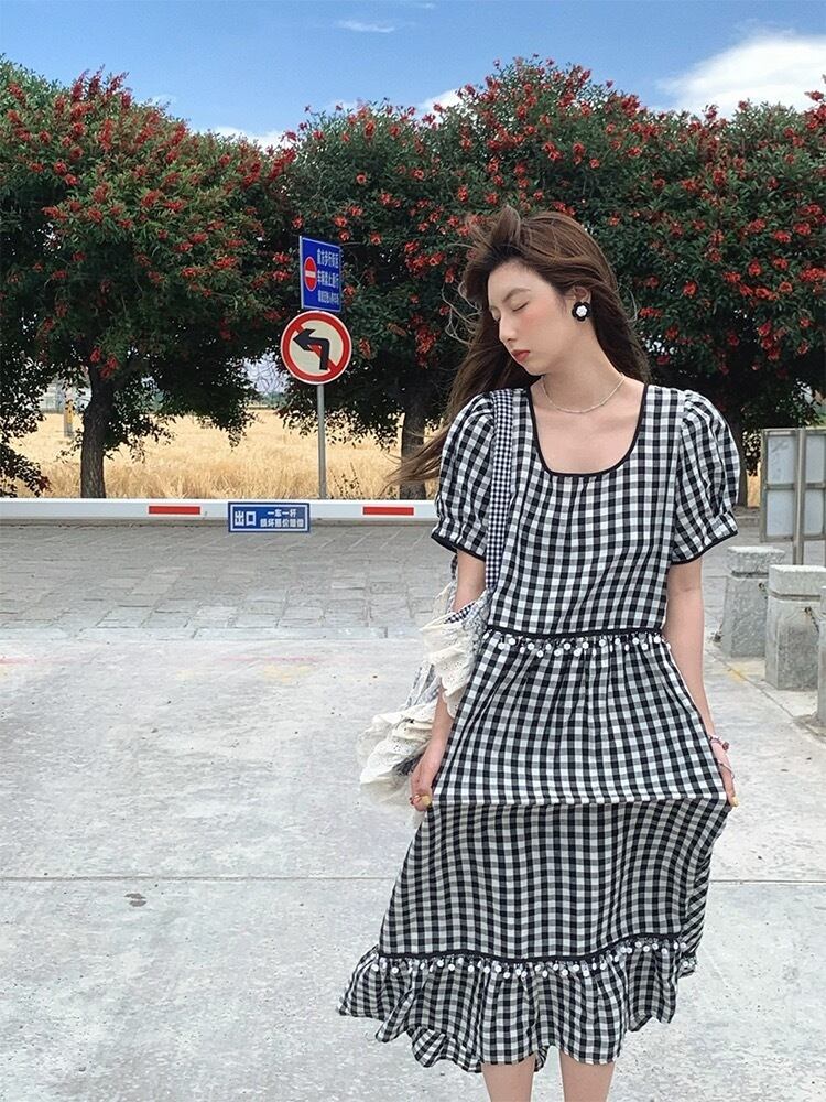 黒 チェック ガーリー アジアン ワンピース カジュアル ブルー