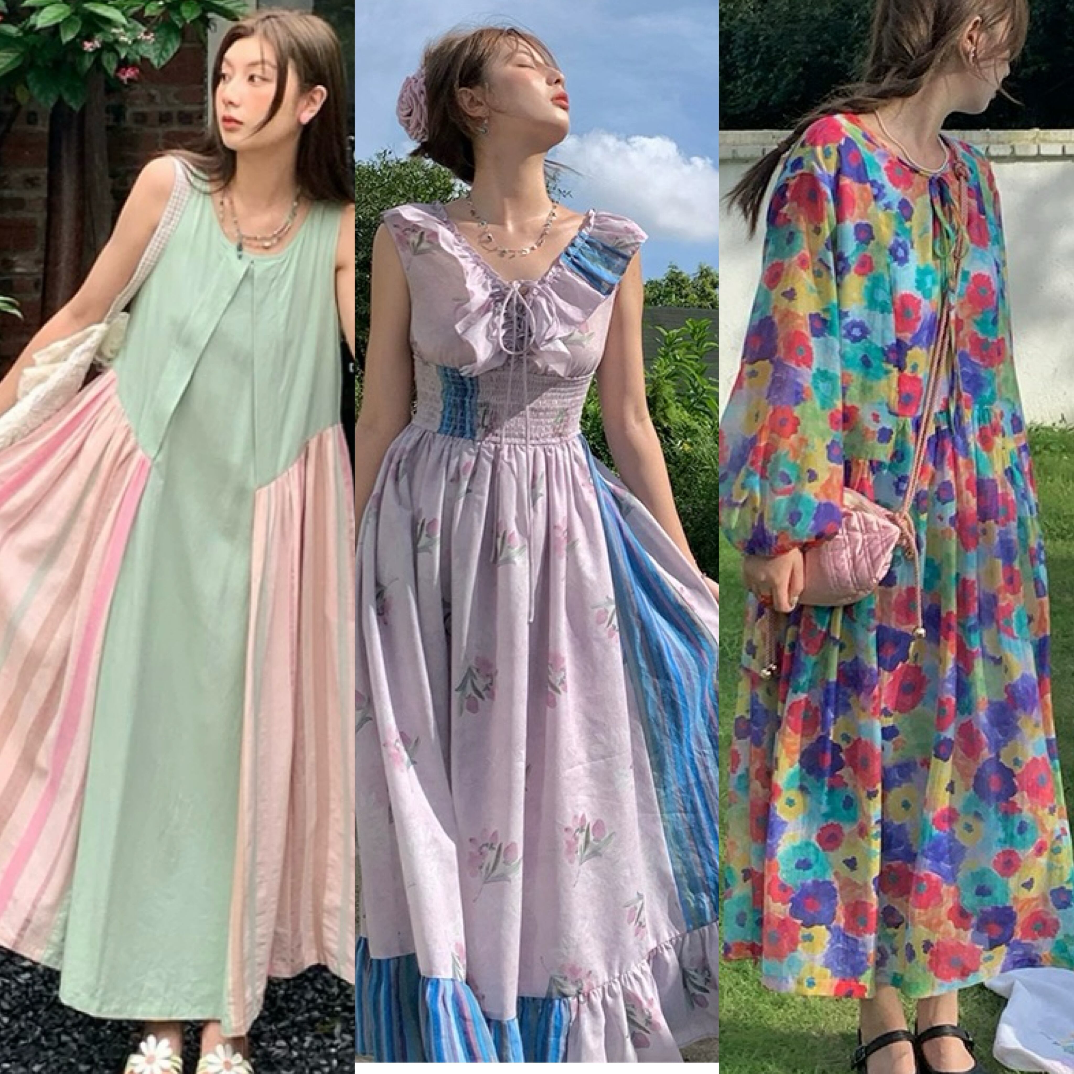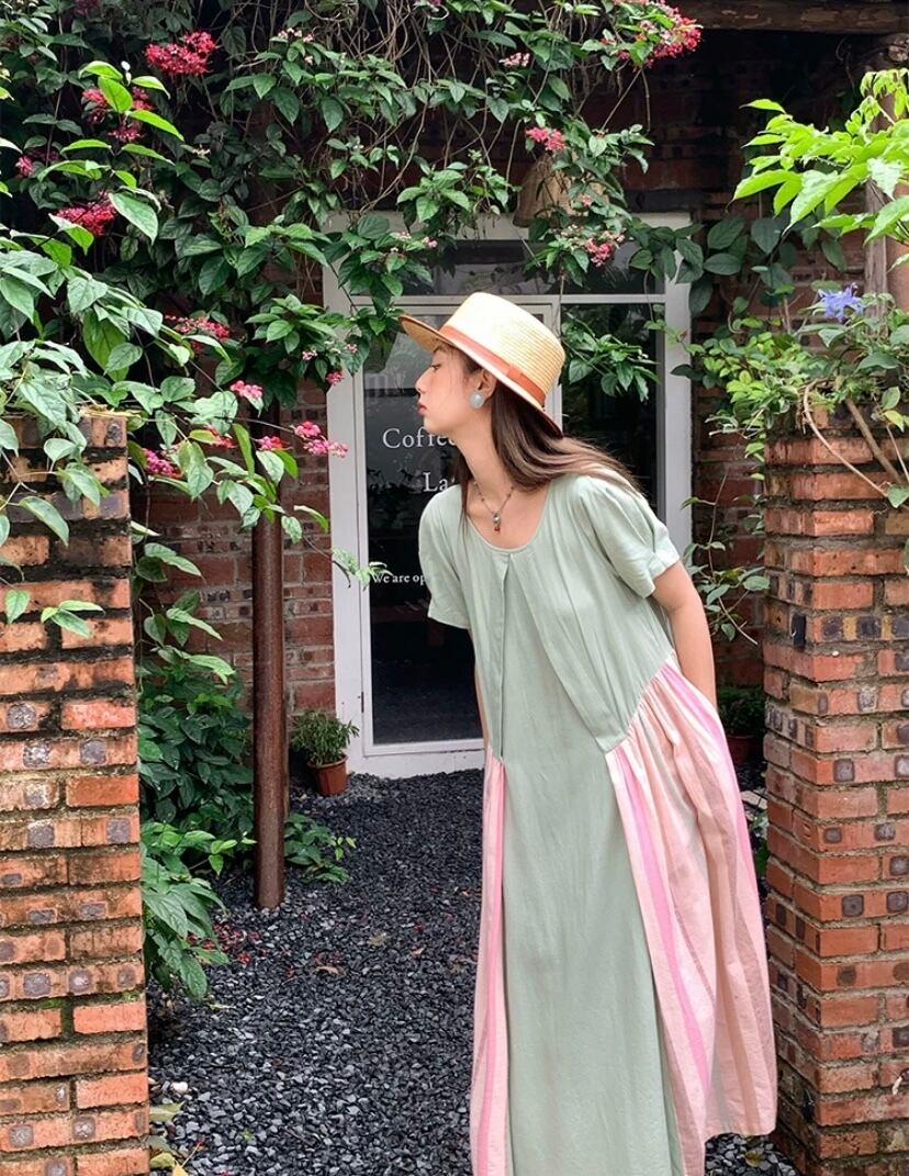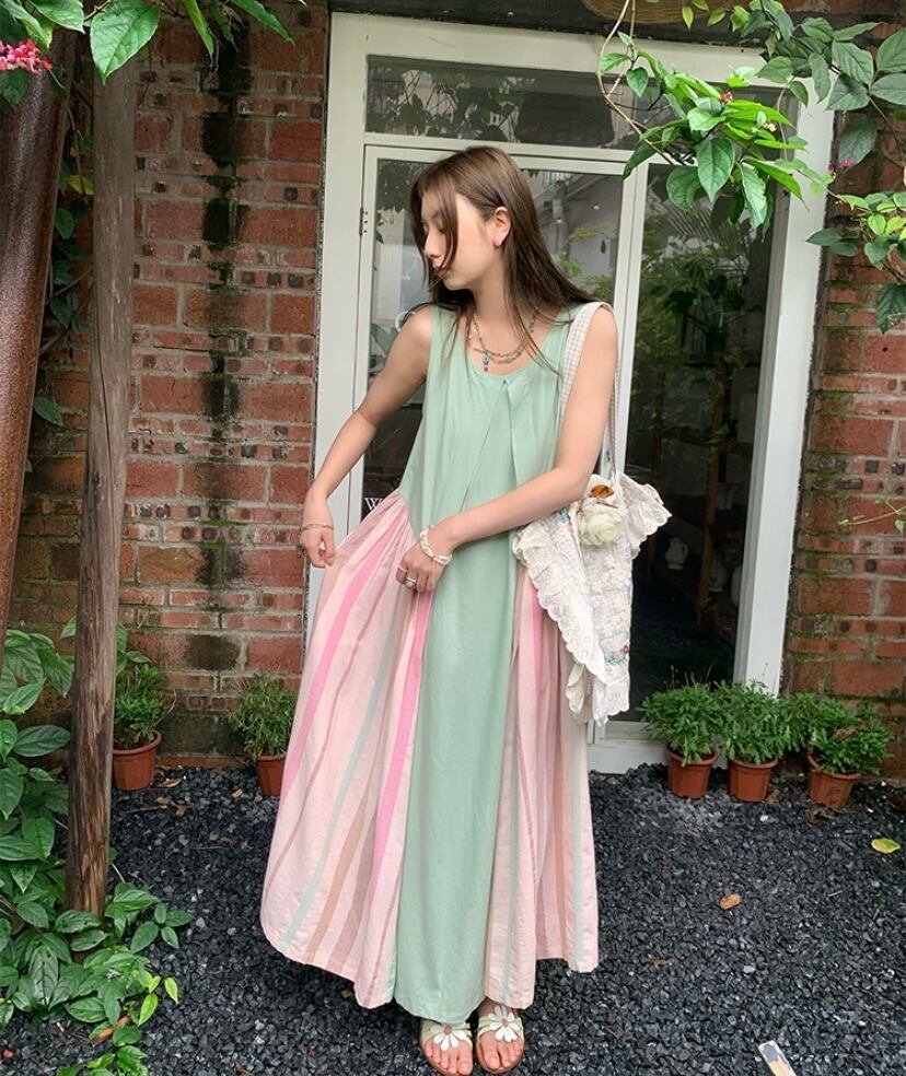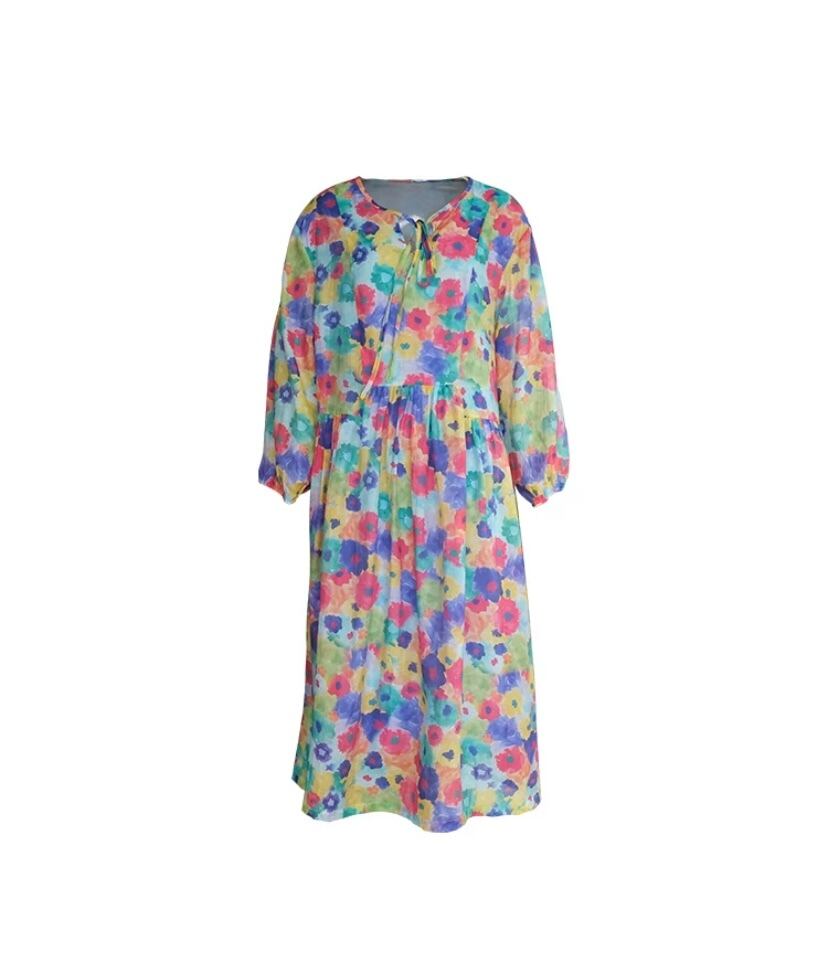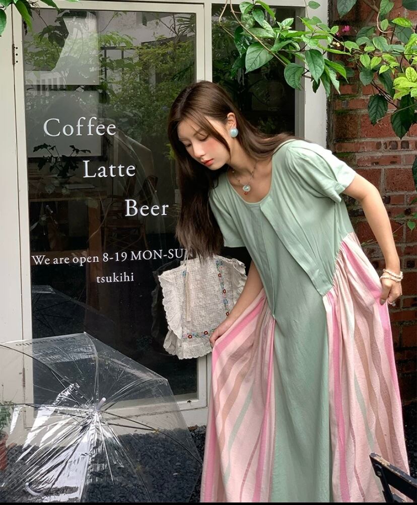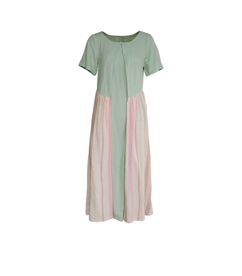 カラフル ゆったり ワンピース カジュアル 紫 緑 チェック