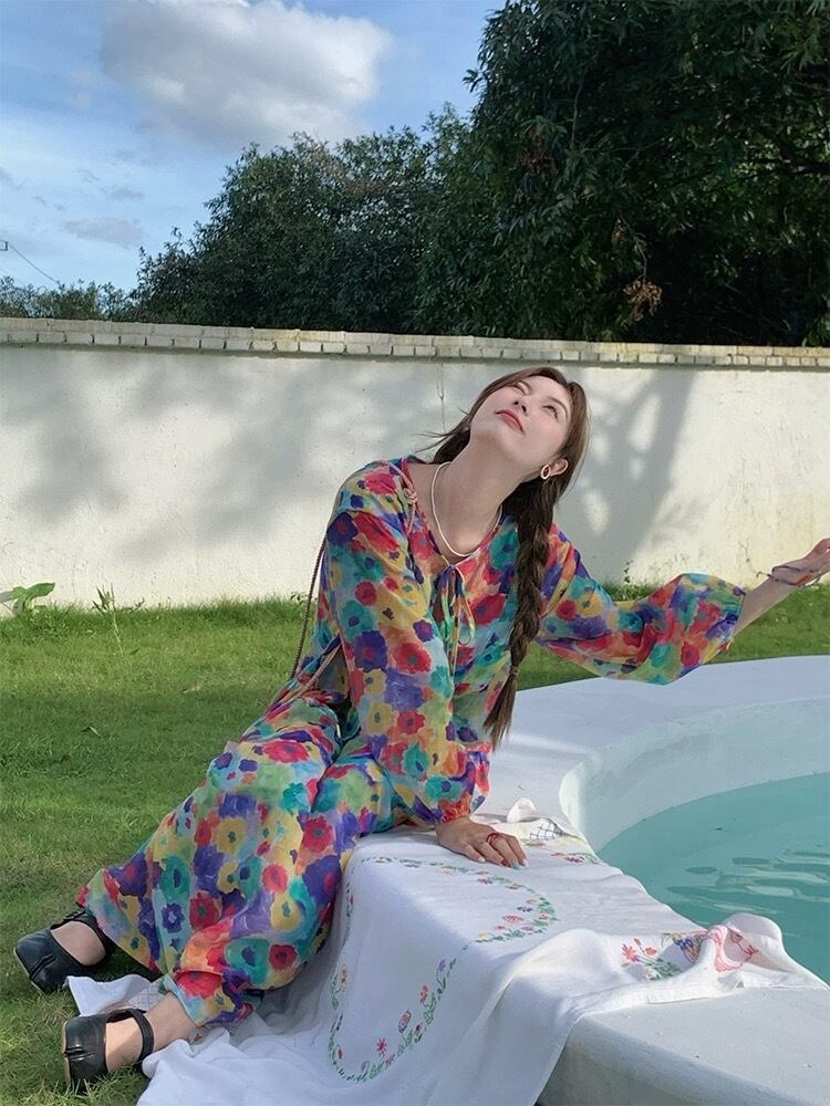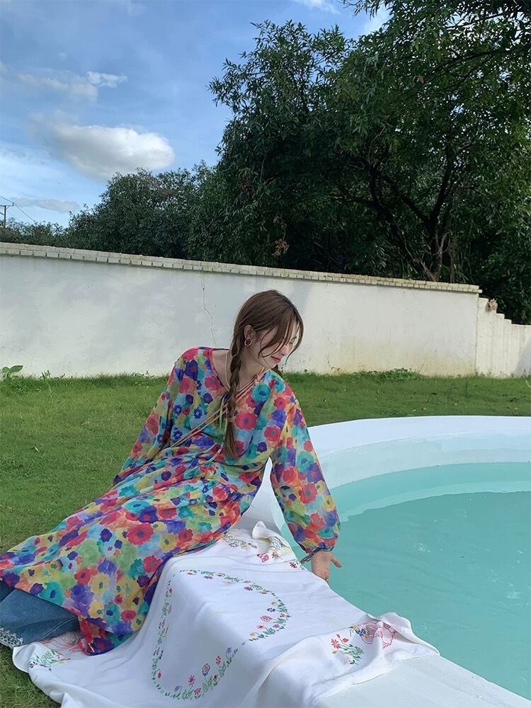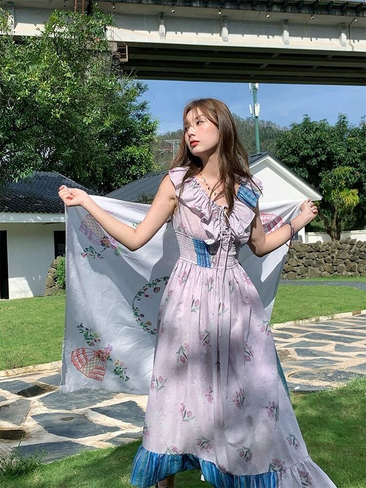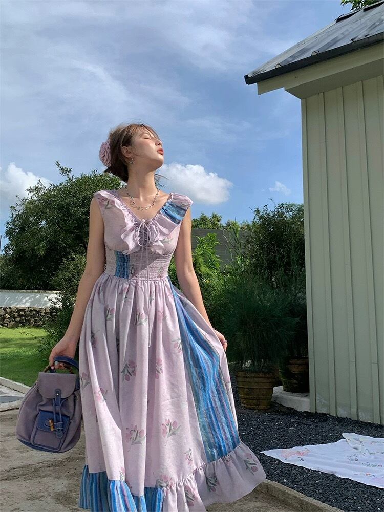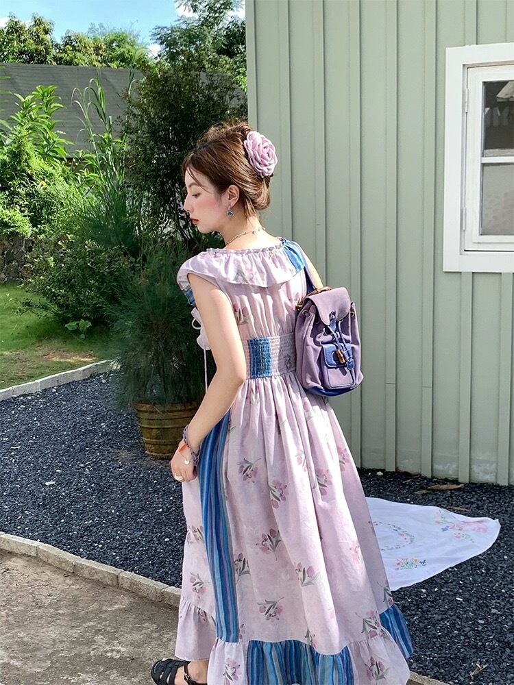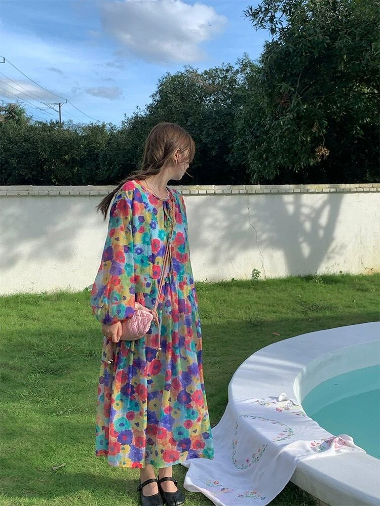 カラフル ゆったり ワンピース カジュアル 紫 緑 チェック