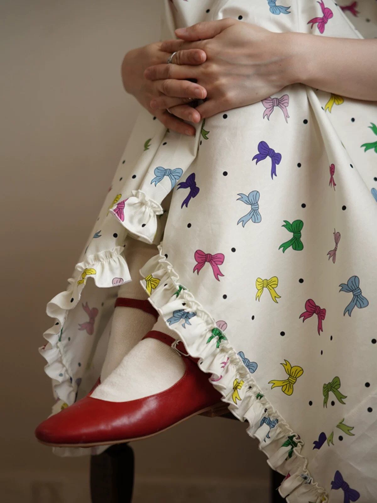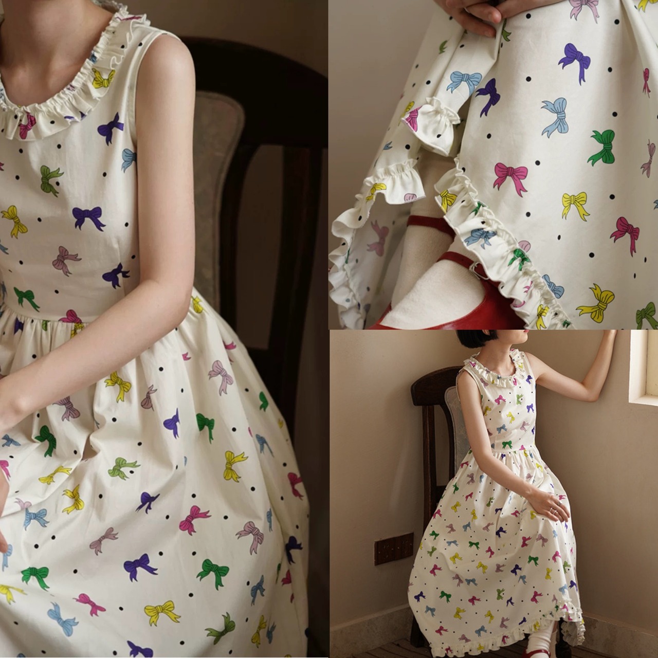 白 カラフル 可愛い リボン ガーリー ワンピース ブラウス 原宿