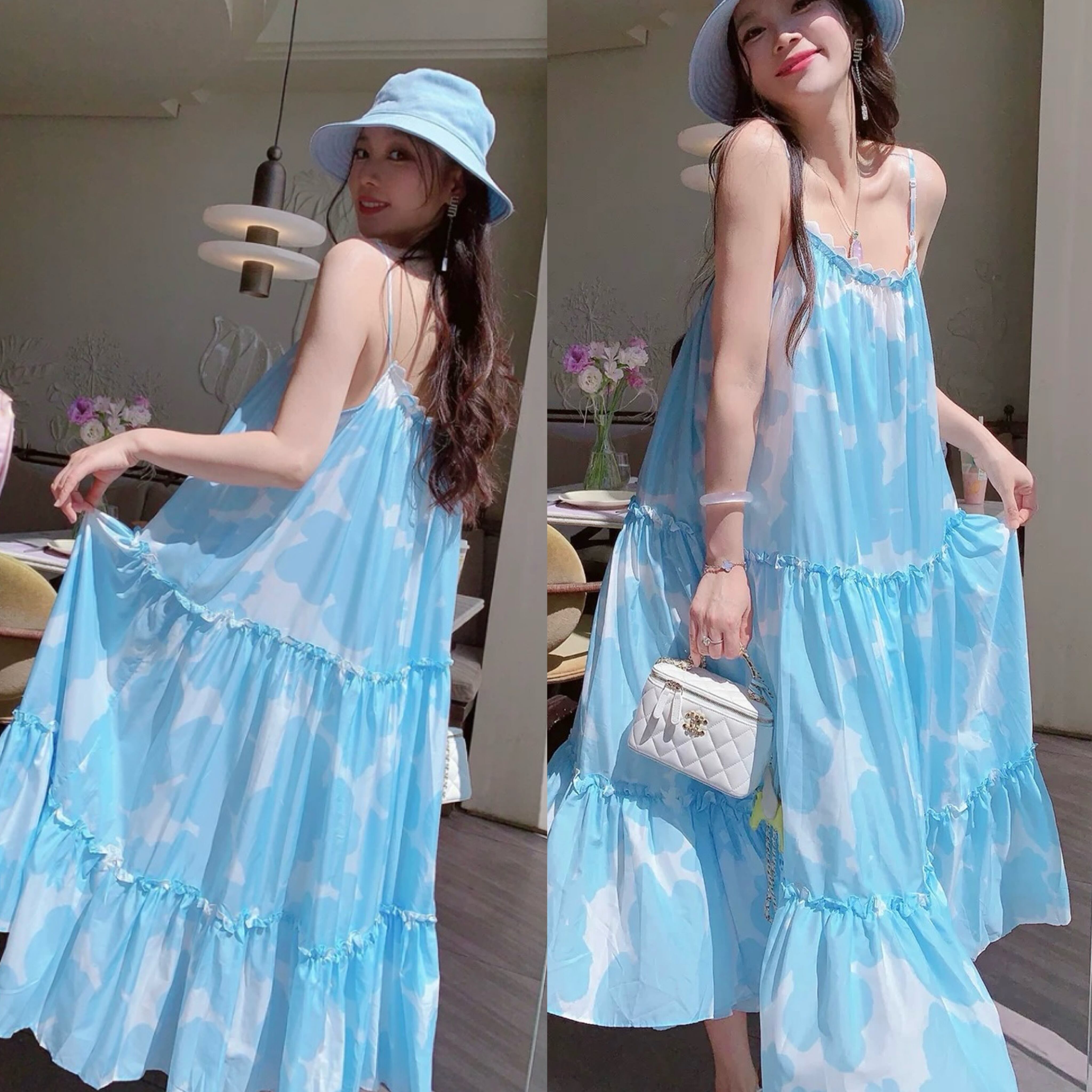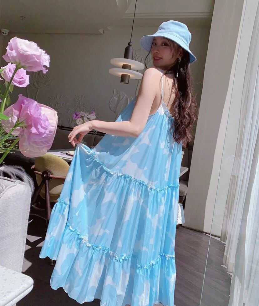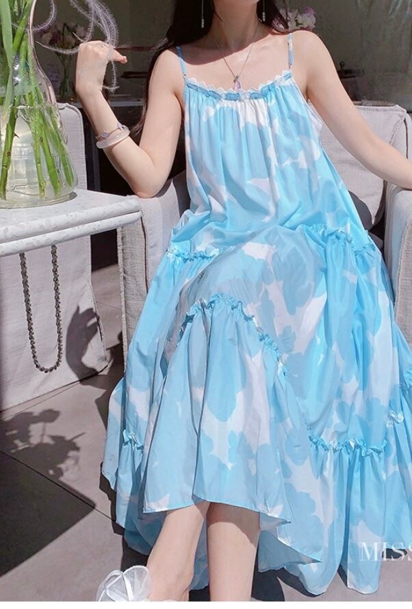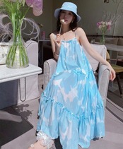 水色 キャミソール 爽やか 海 空 夏 ゆったり チュニック ワンピース