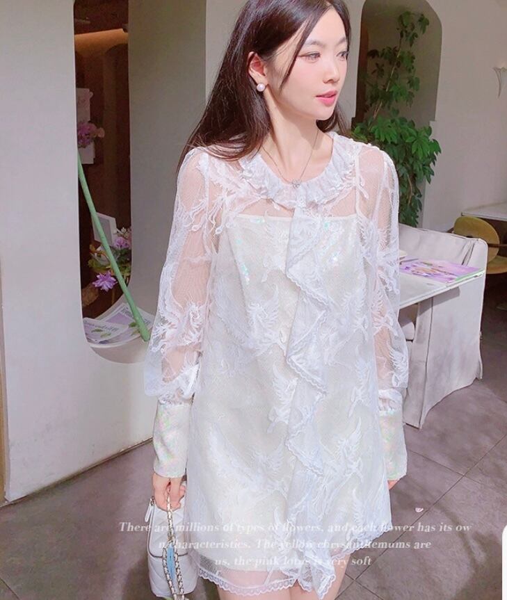 白 フラワー キャミソール ブラウス トップス ガーリー エレガント シースルー