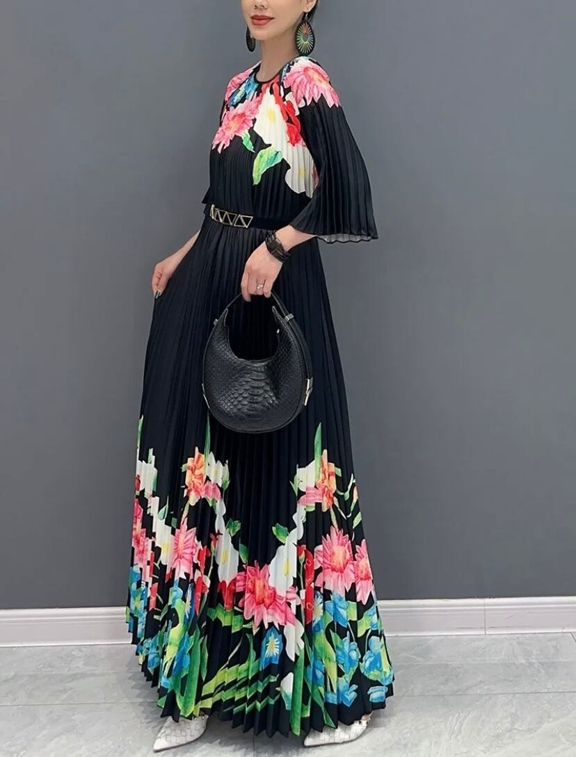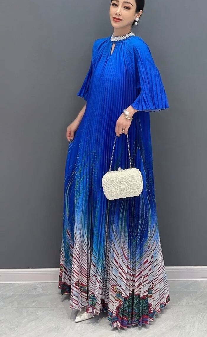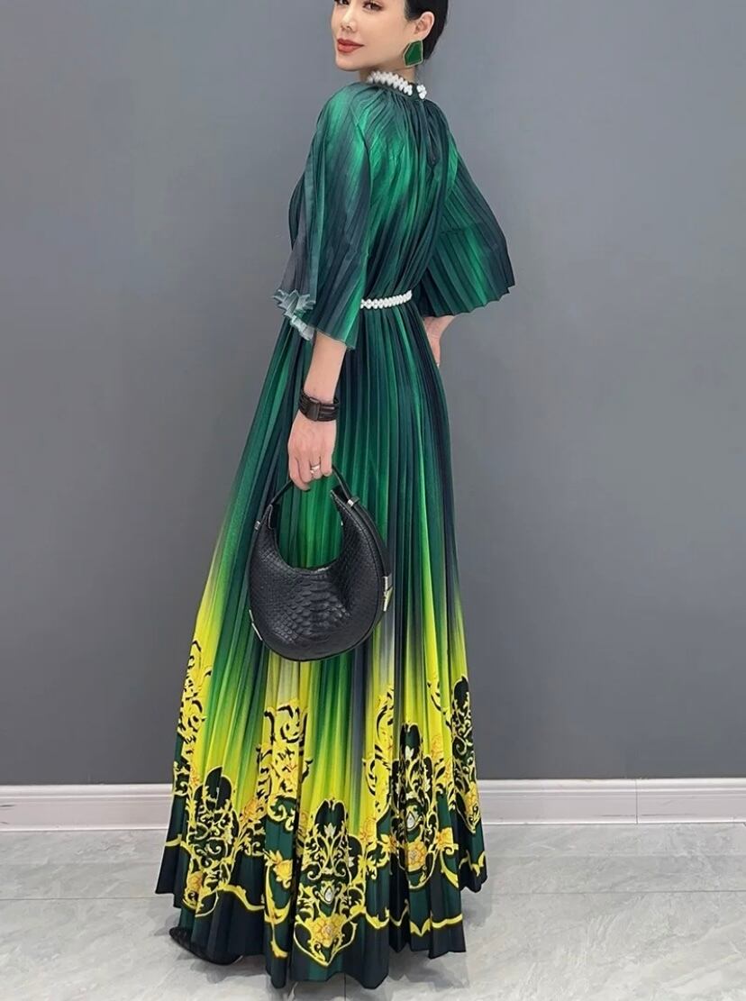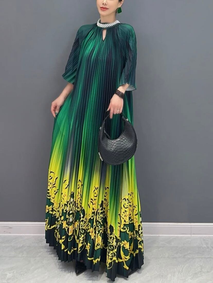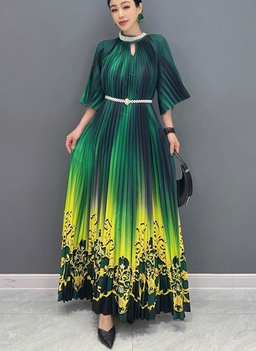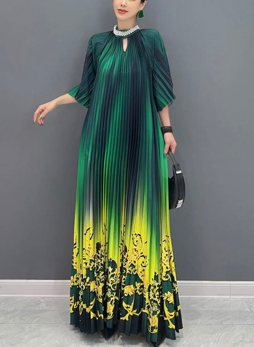 マキシ エレガント 花柄 フラワー グラデーション ブルー 緑 グリーン 黄色 黒 XL