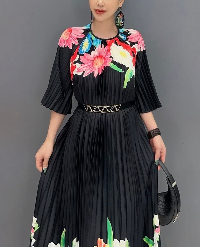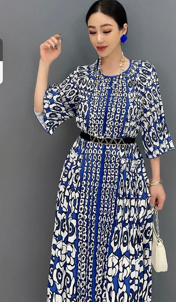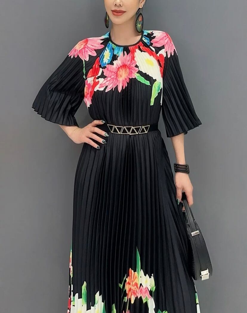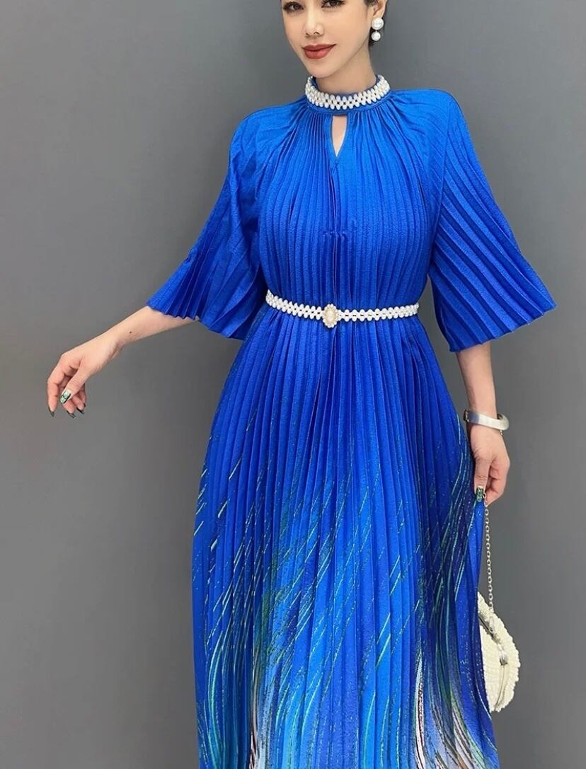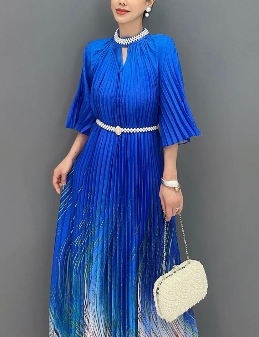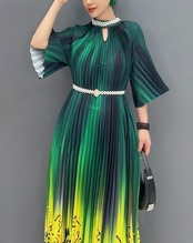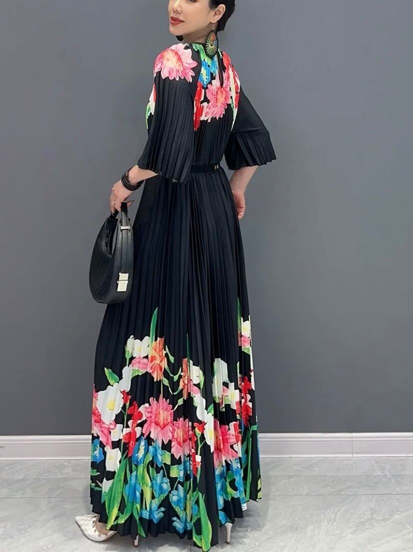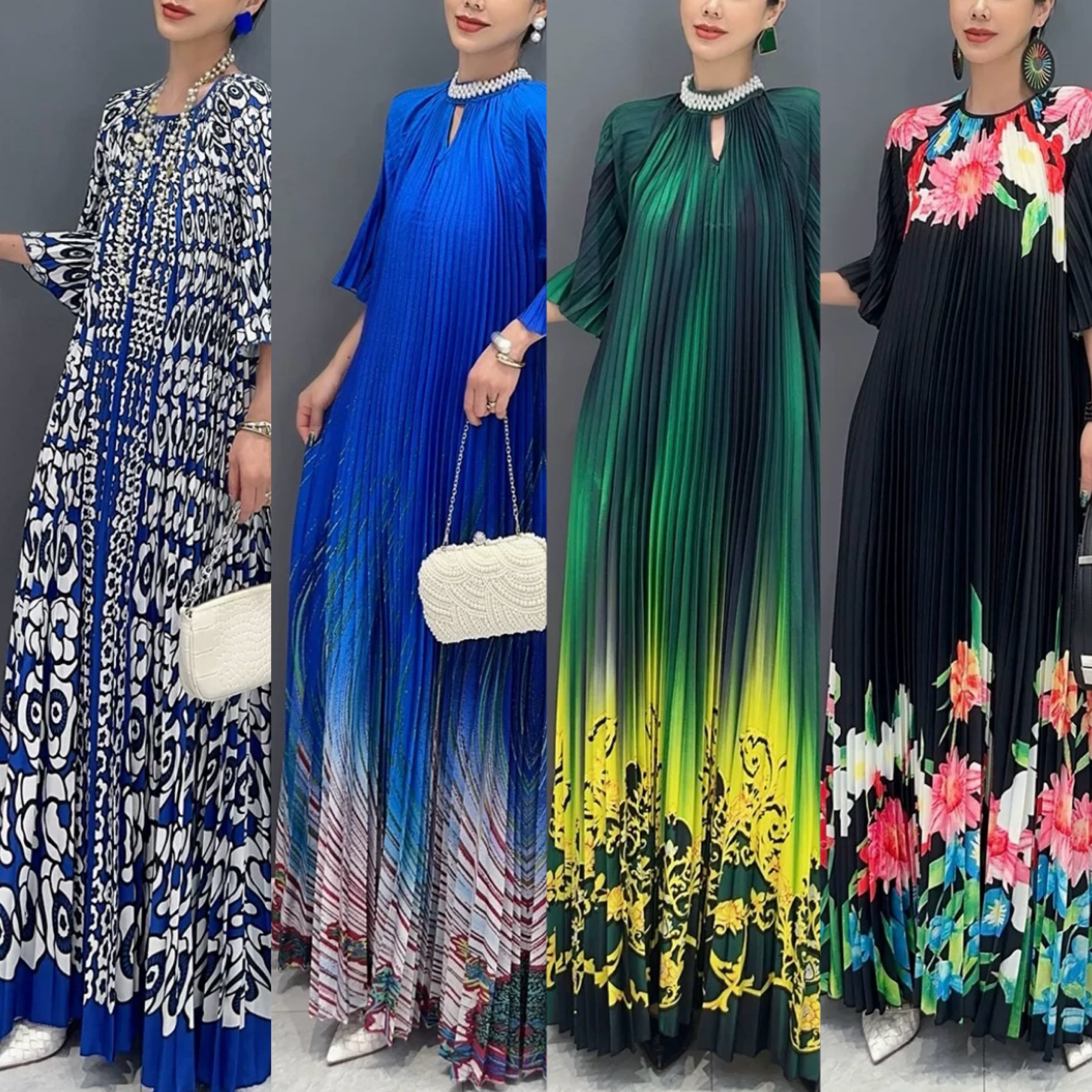 マキシ エレガント 花柄 フラワー グラデーション ブルー 緑 グリーン 黄色 黒 XL