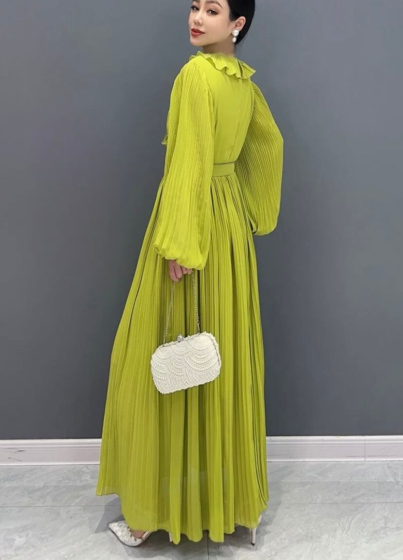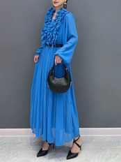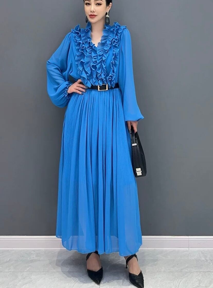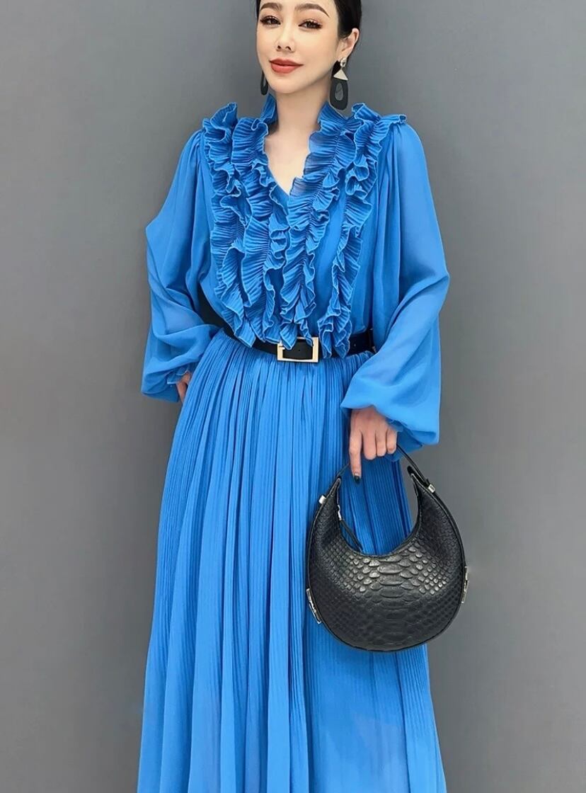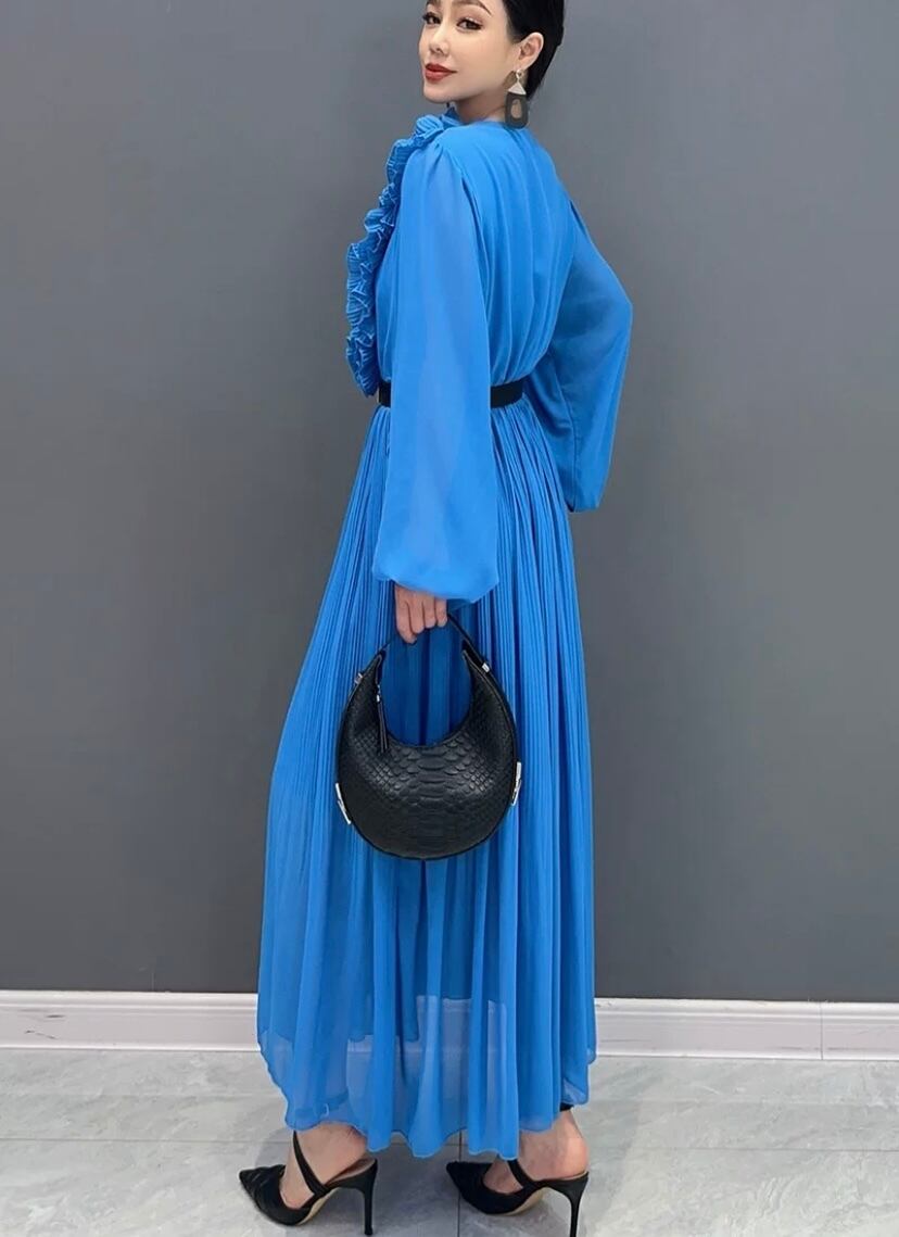 黄色 水色 ブラウス 紫 リボン マキシ ワンピース エレガント XL