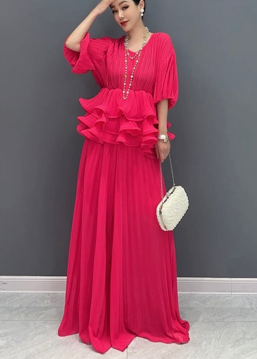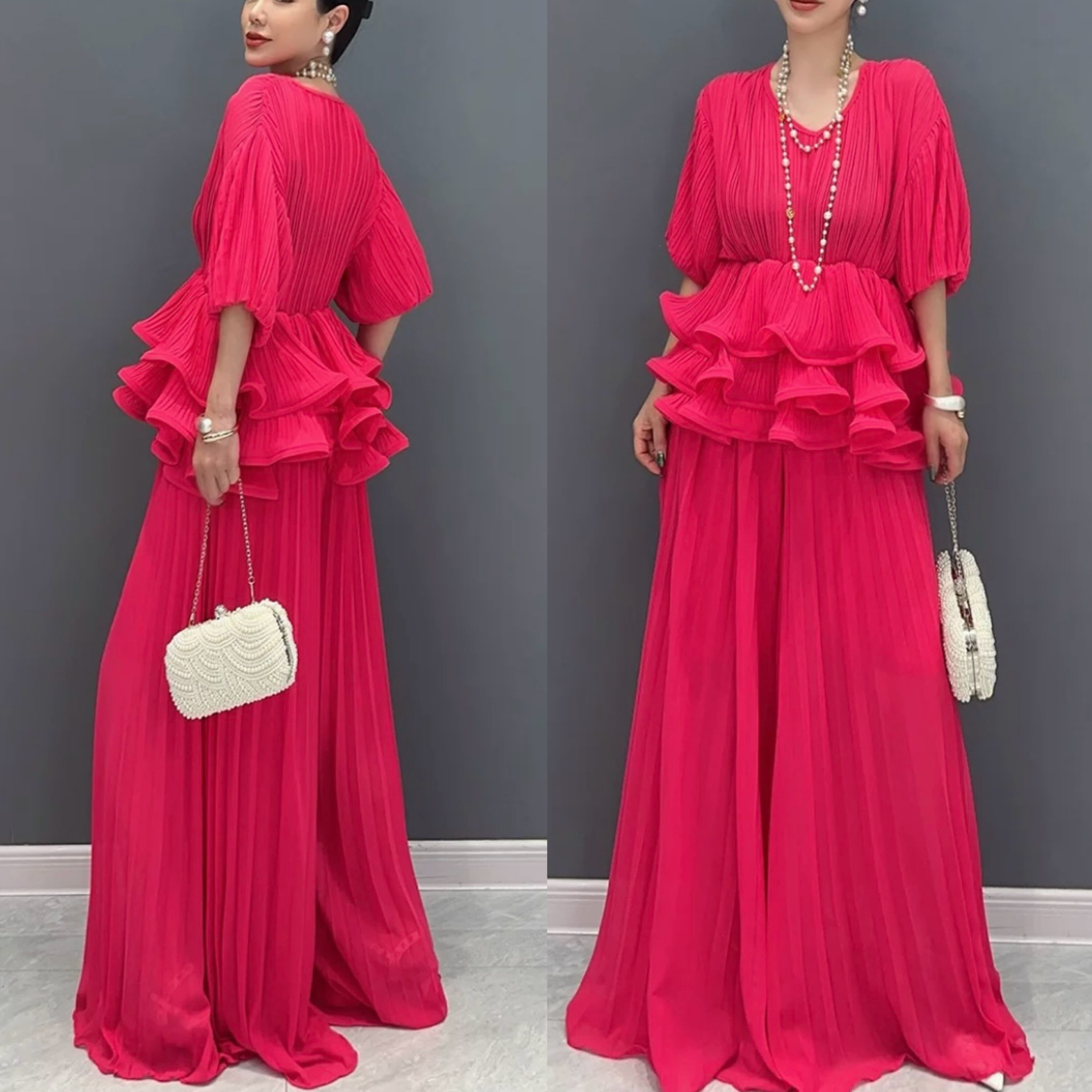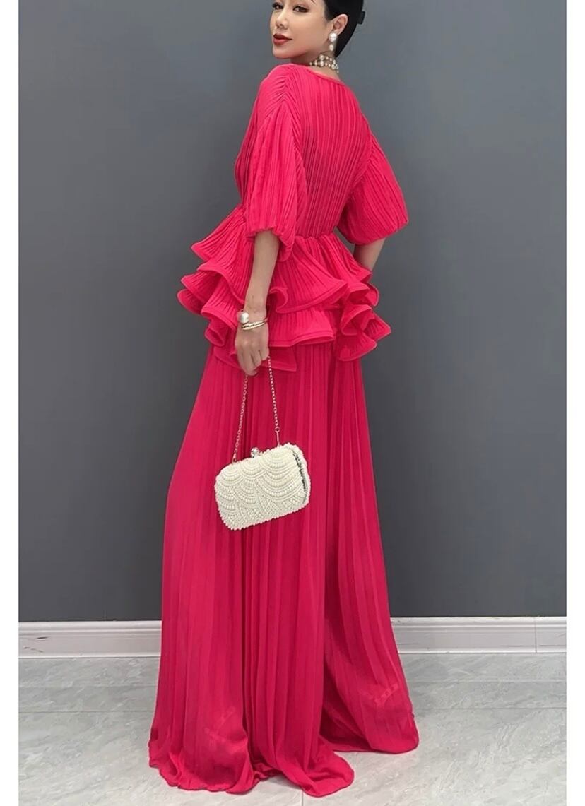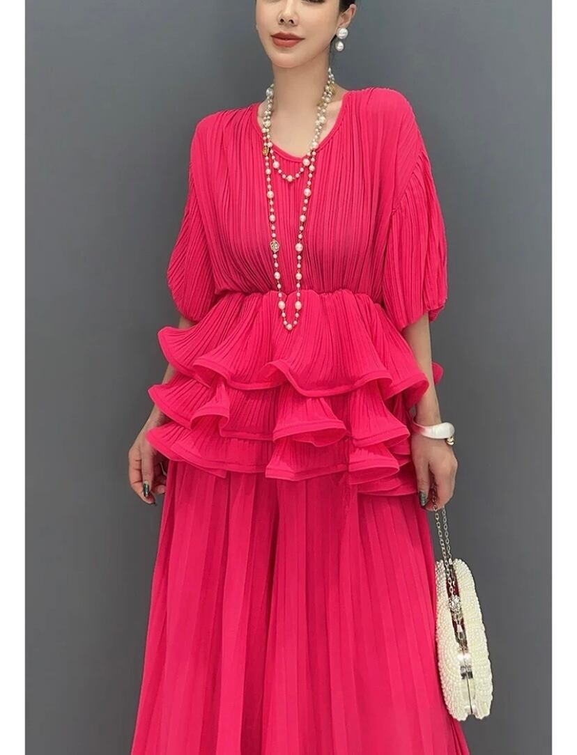 【セットアップ】ピンク ブラウス パンツ ブラウス マキシ ゆったり エレガント ピンク ワンピース XL