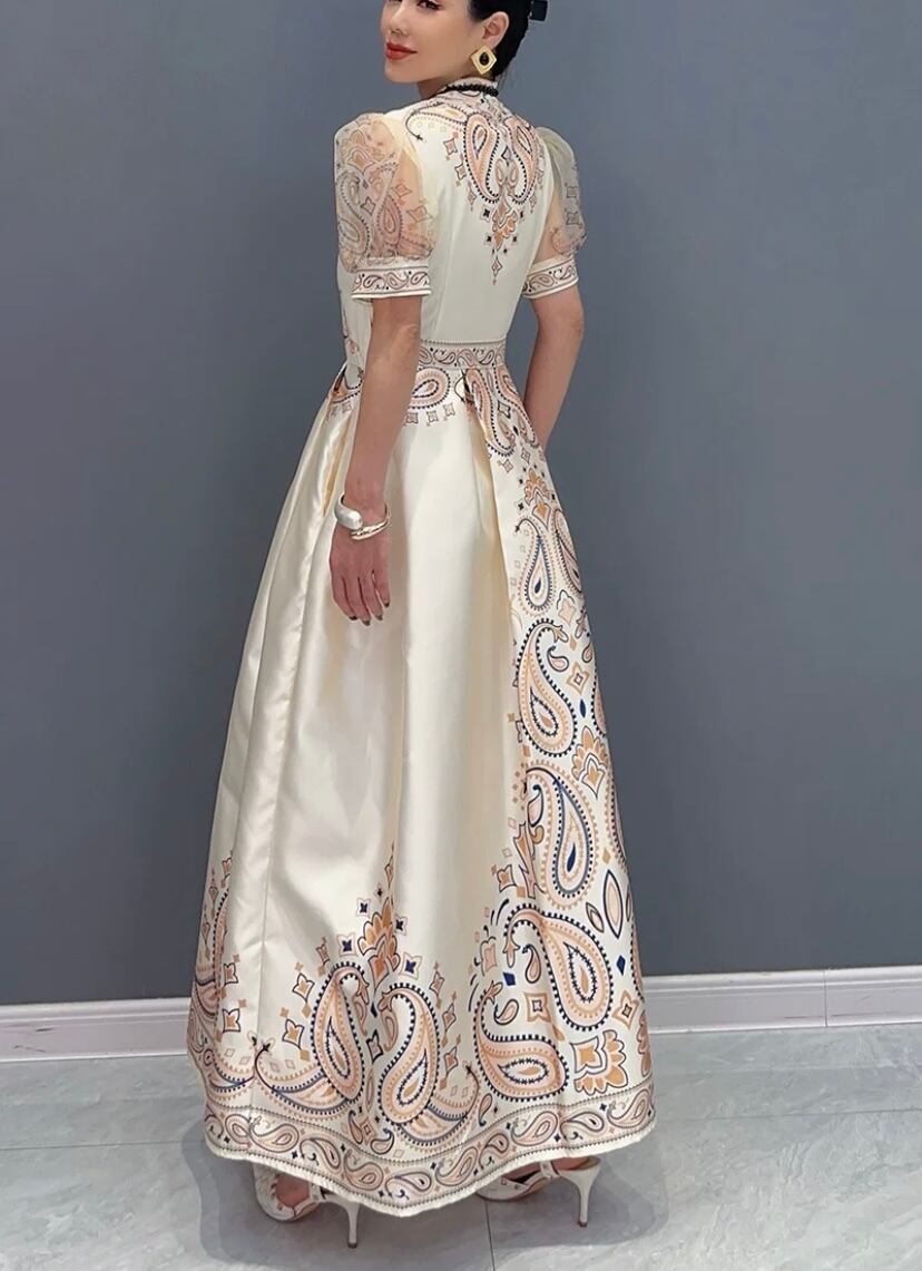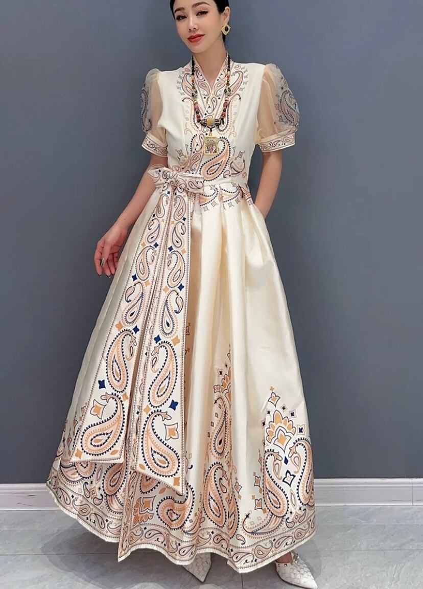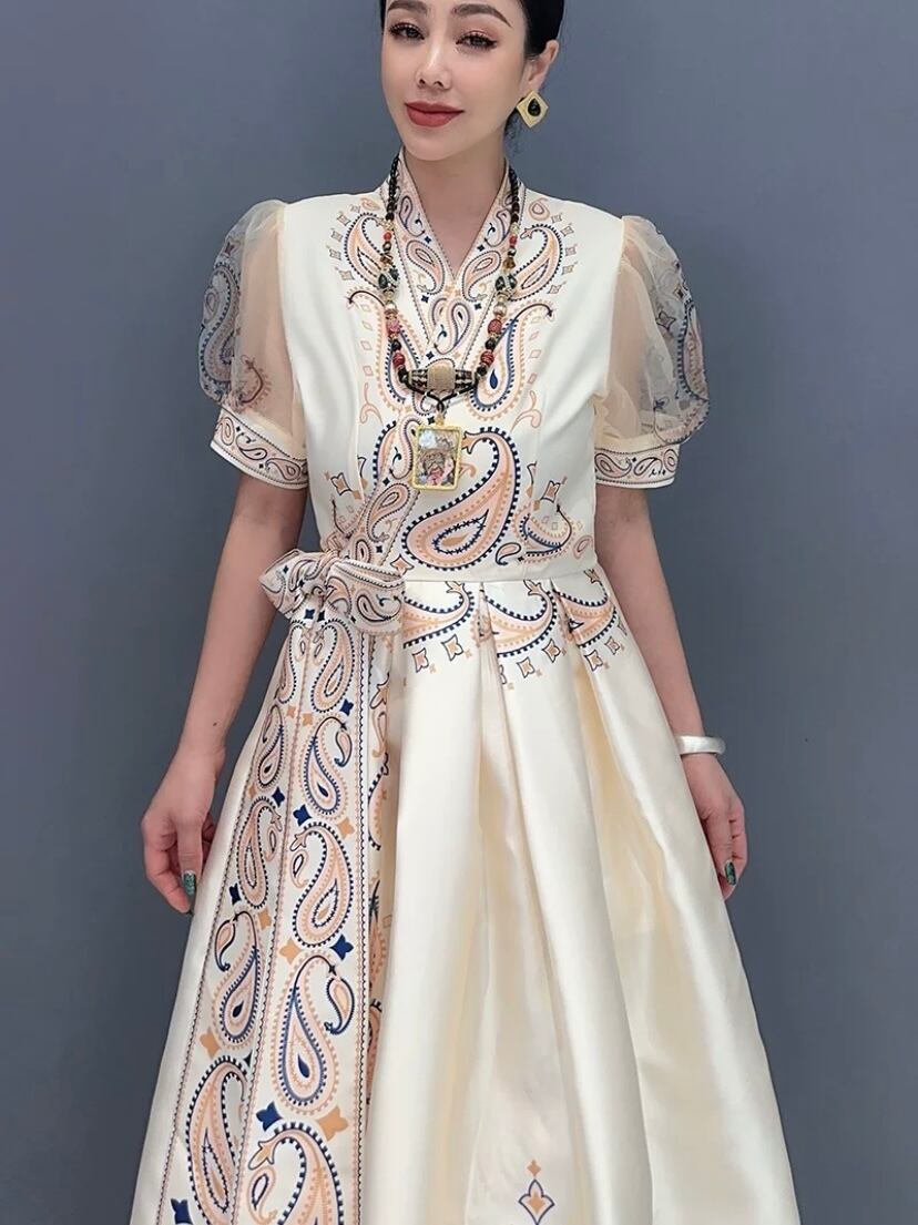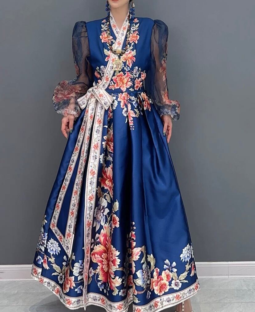 ブラウス ネイビー ベージュ 花柄 チマチョゴリ 韓国 民族衣装 フラワー ゴールド 金色 半袖 ワンピース エレガント XL