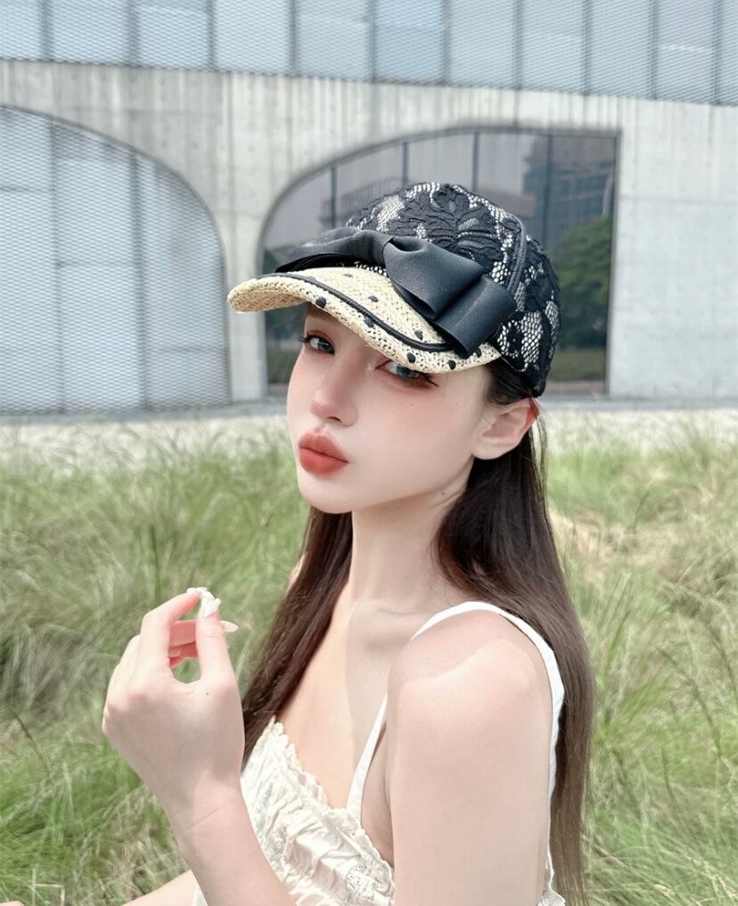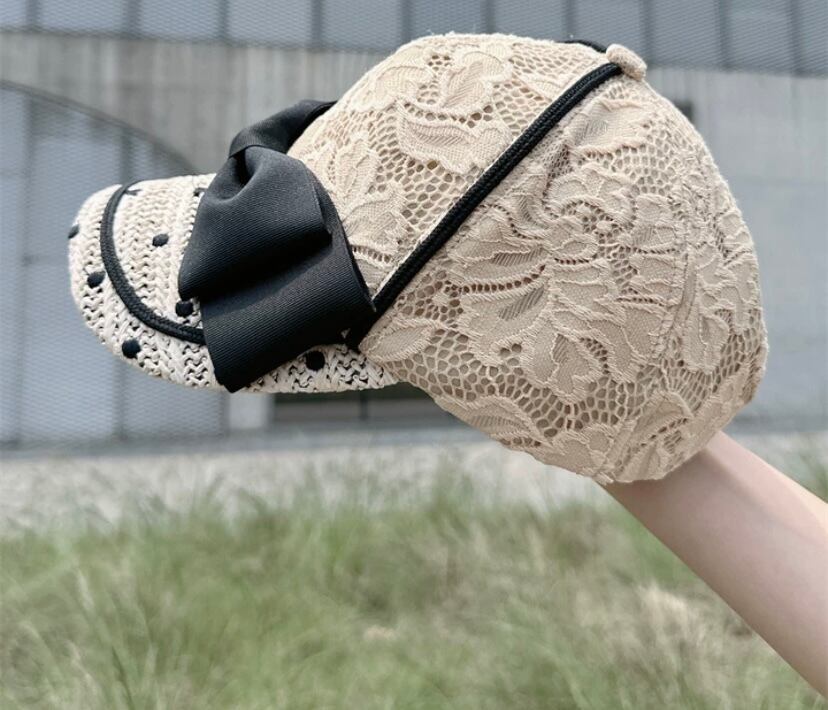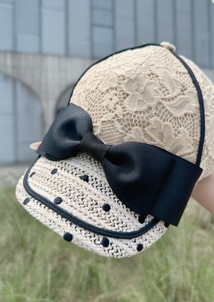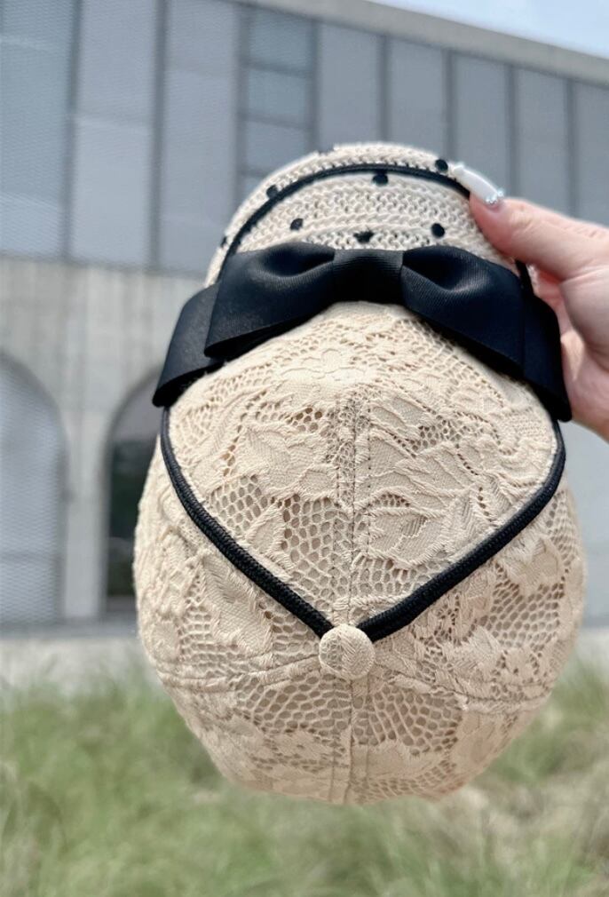 キャップ ベージュ 黒 カメリア リボン 帽子 リボン
