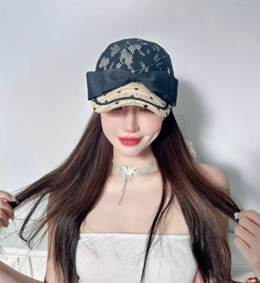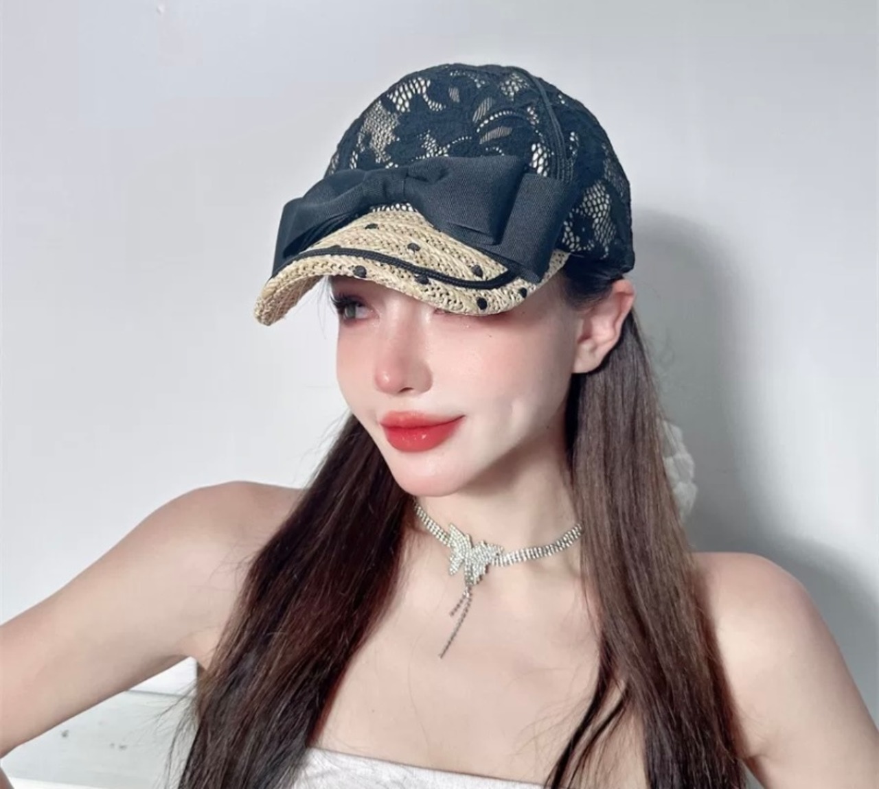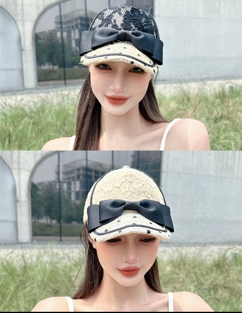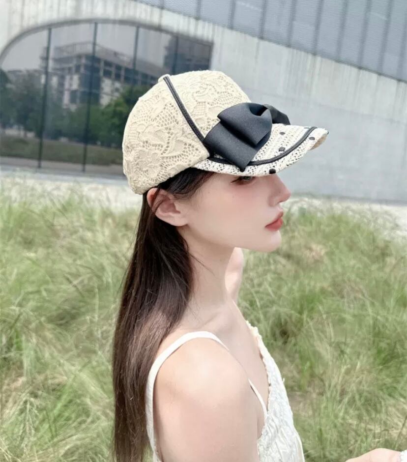 キャップ ベージュ 黒 カメリア リボン 帽子 リボン