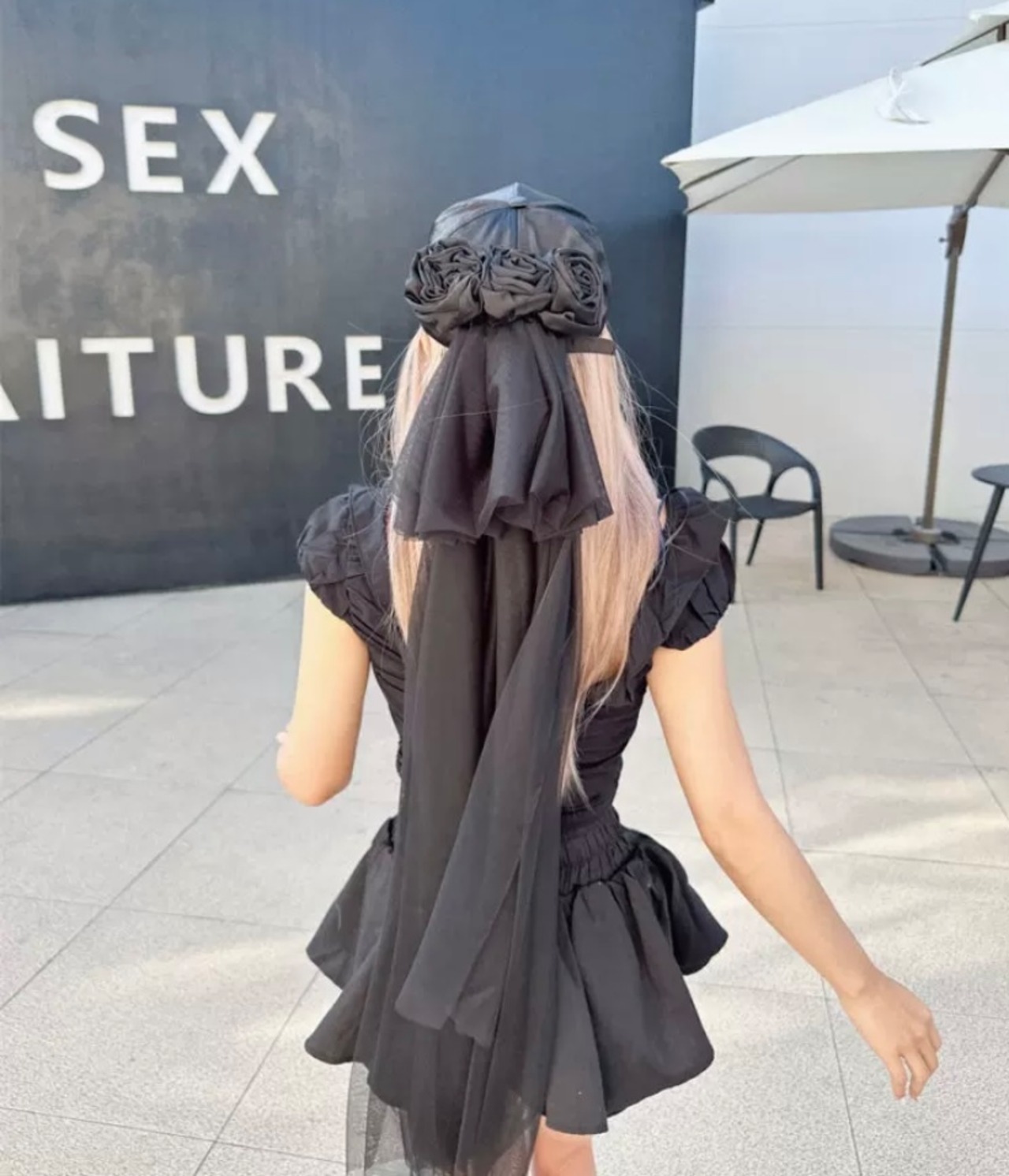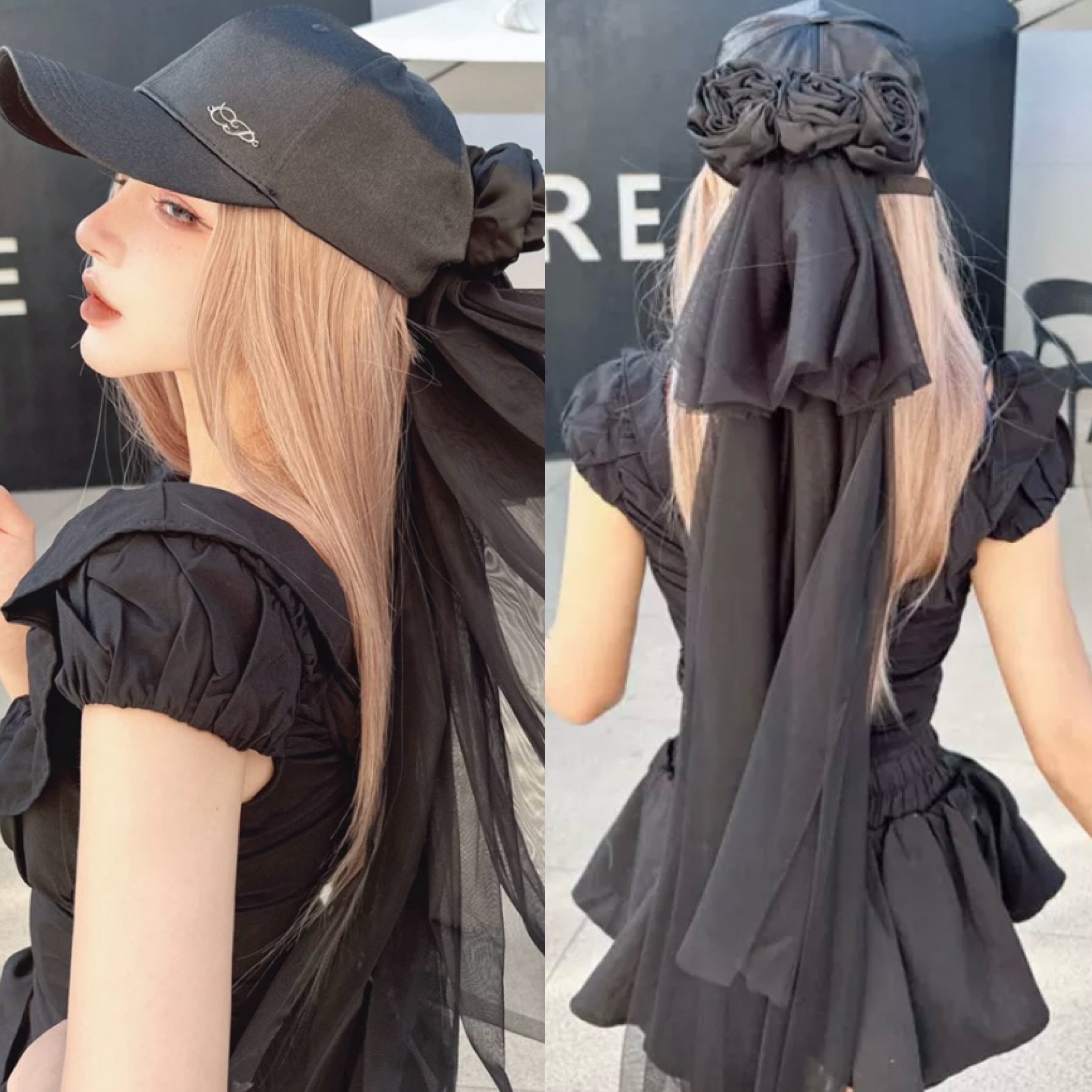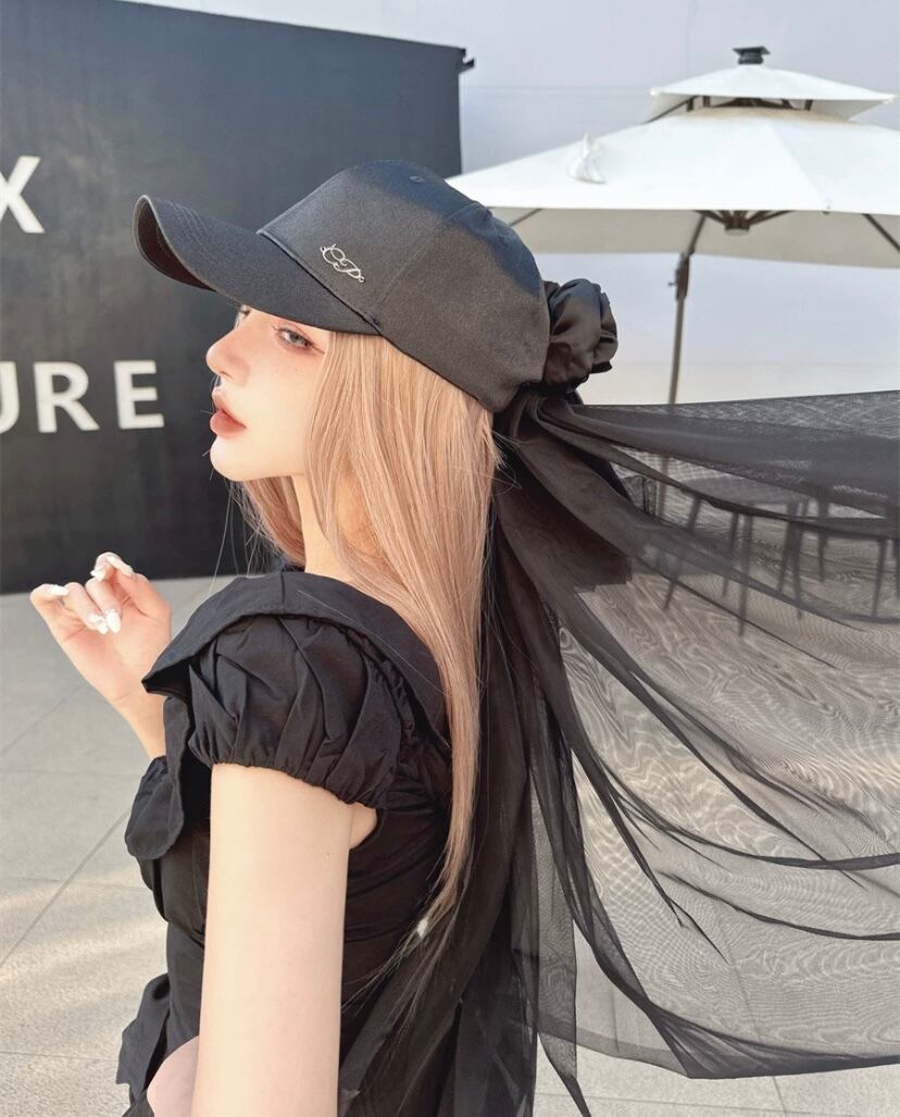 キャップ 黒 リボン ガーリー ブラック 帽子