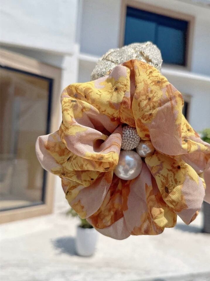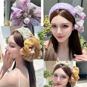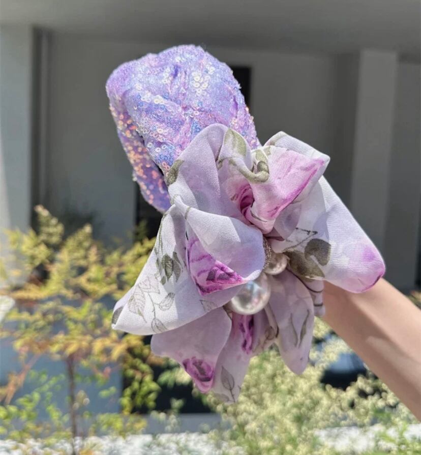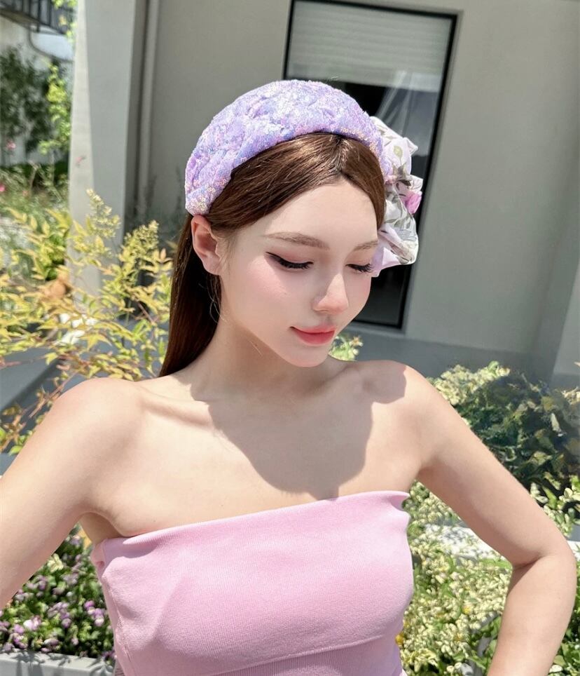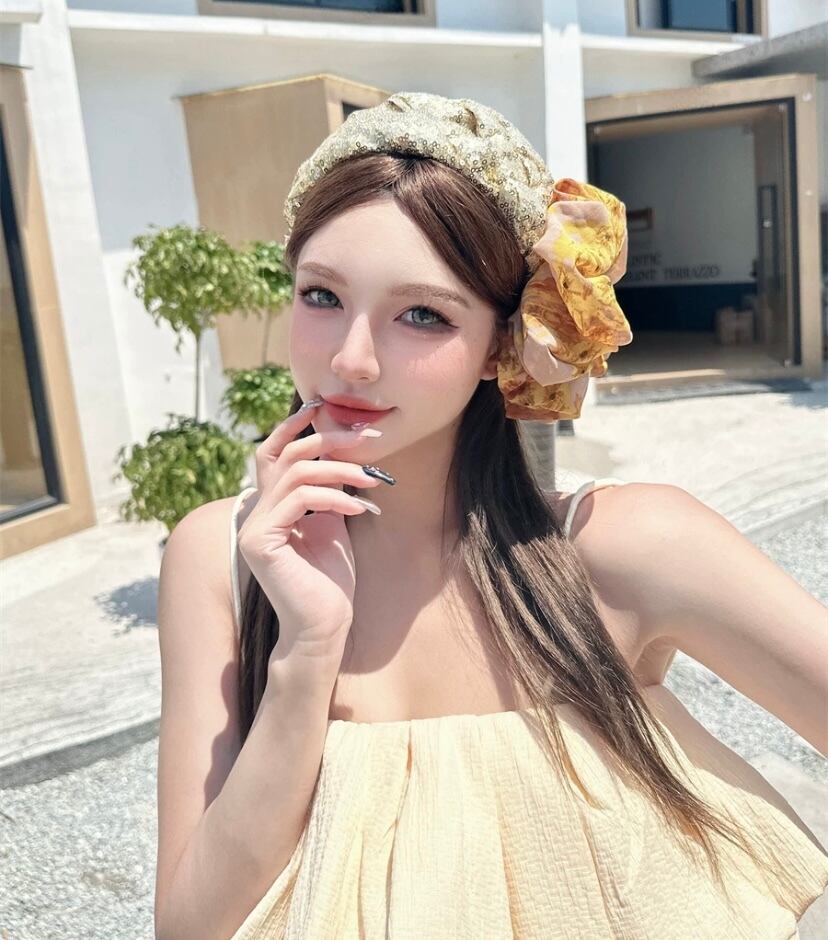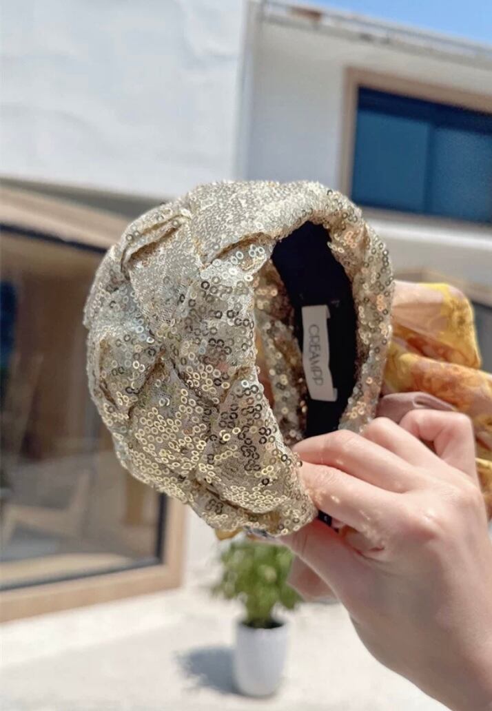ヘアバンド カチューシャ キラキラ スパンコール 金色 花柄 カメリア フラワー ヘアバンド