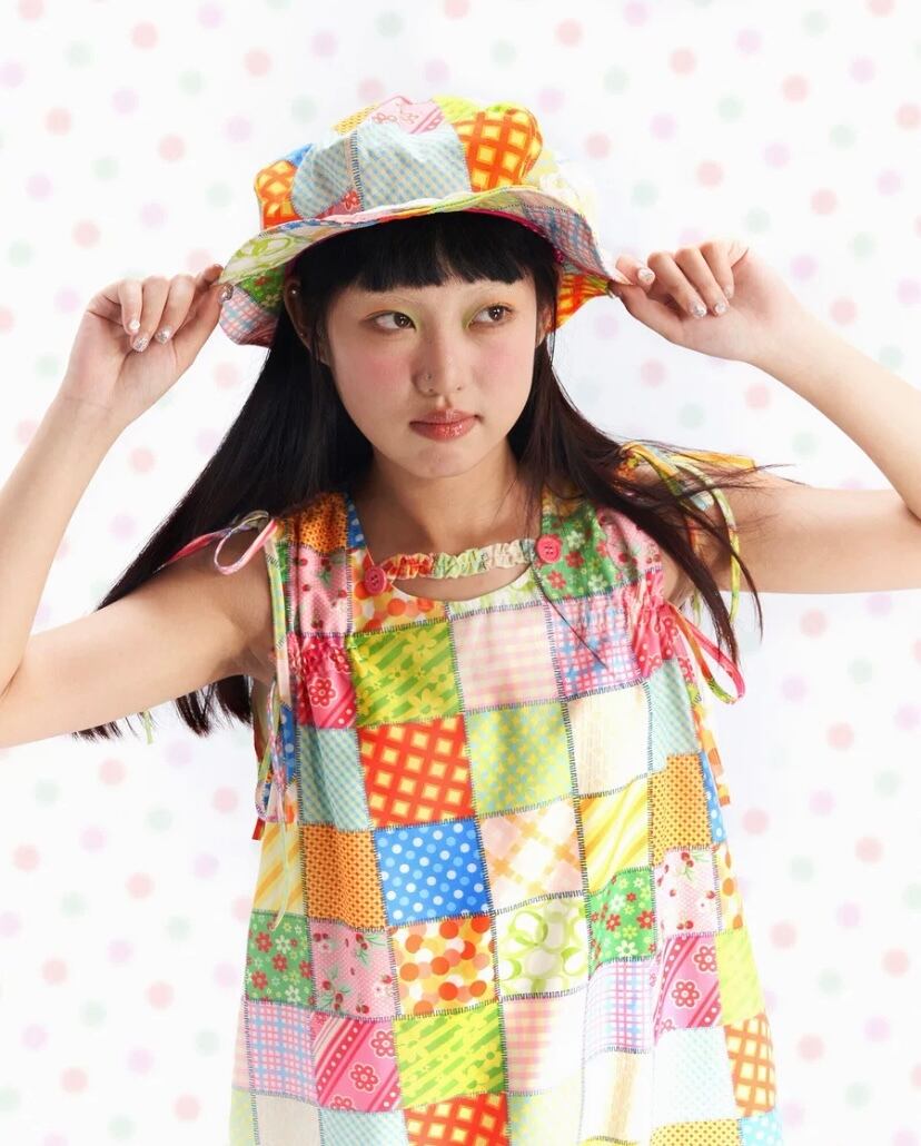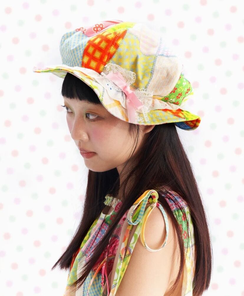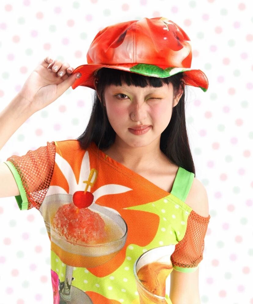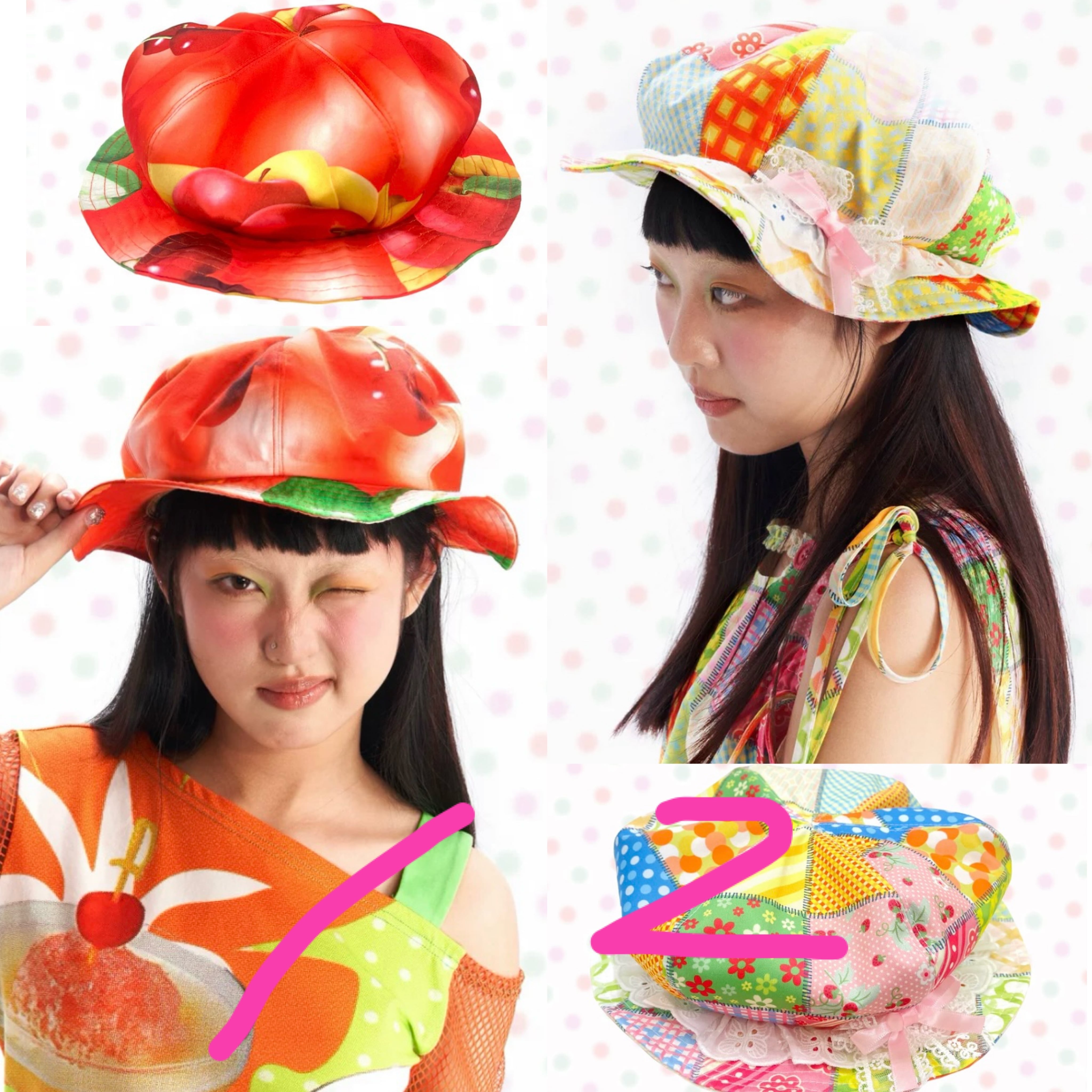 カラフル 赤 トマト りんご パッチワーク リボン 原宿 帽子