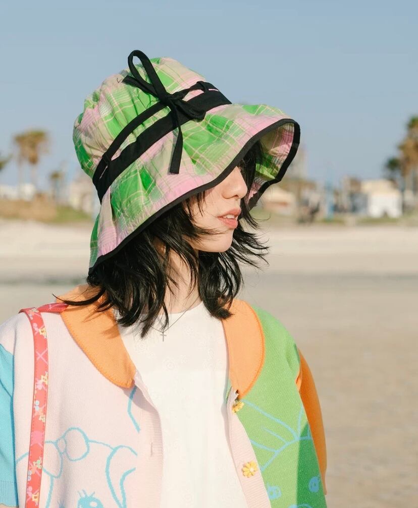 緑 チューリップハット 帽子 可愛い 原宿 チェック