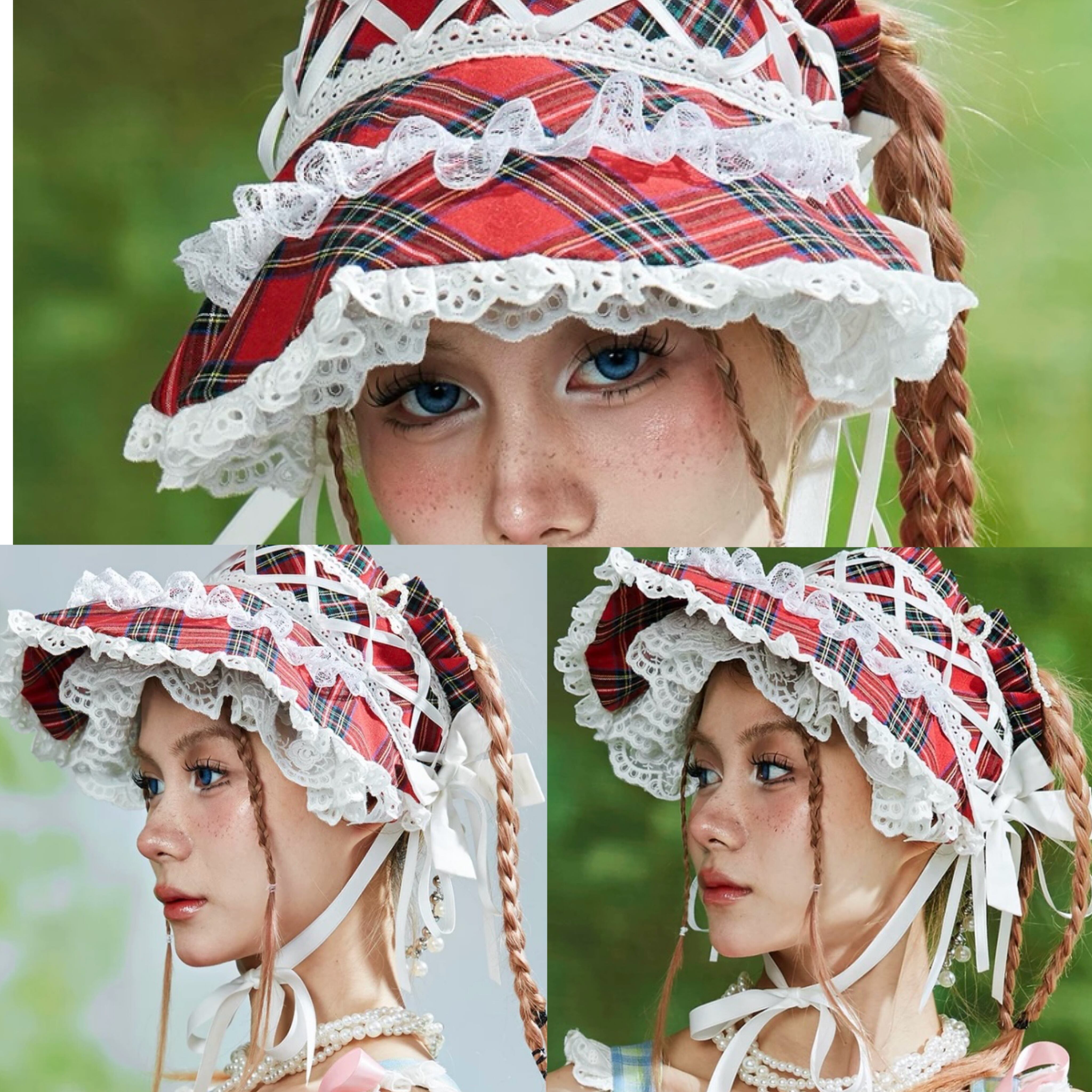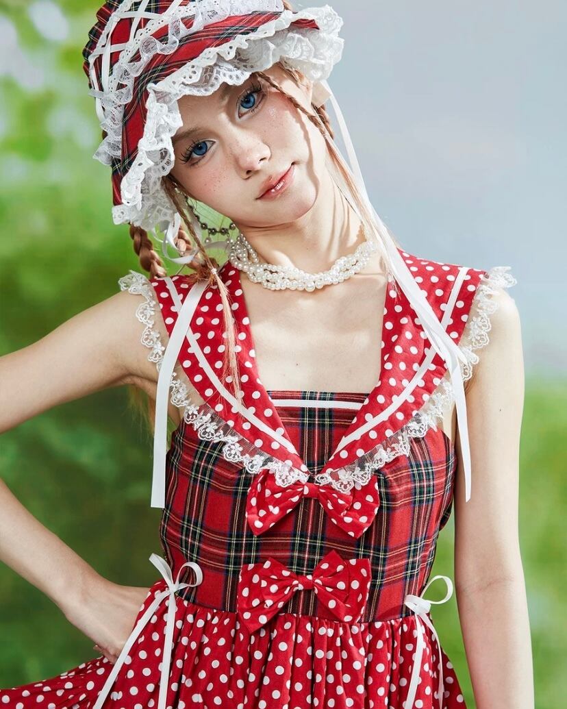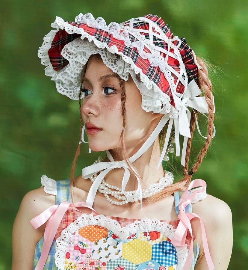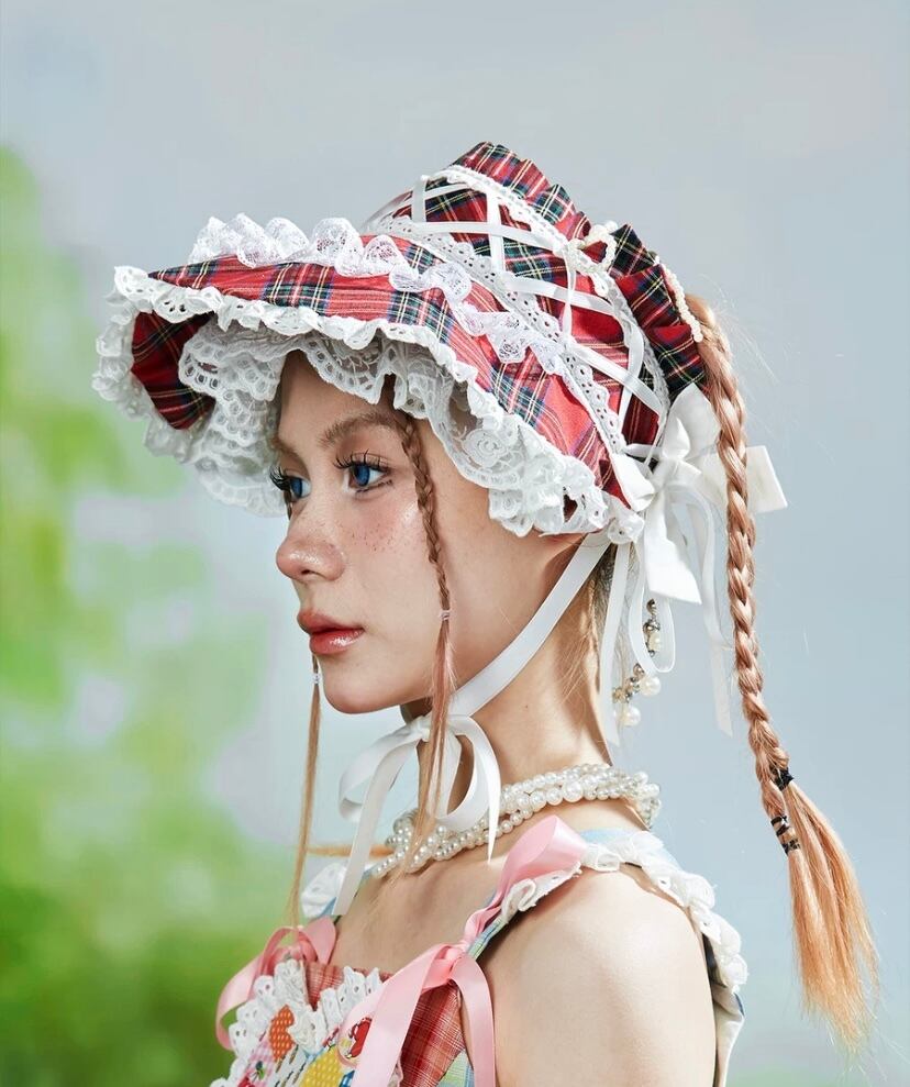 サンバイザー ロリータ 姫 赤 チェック 可愛い 帽子