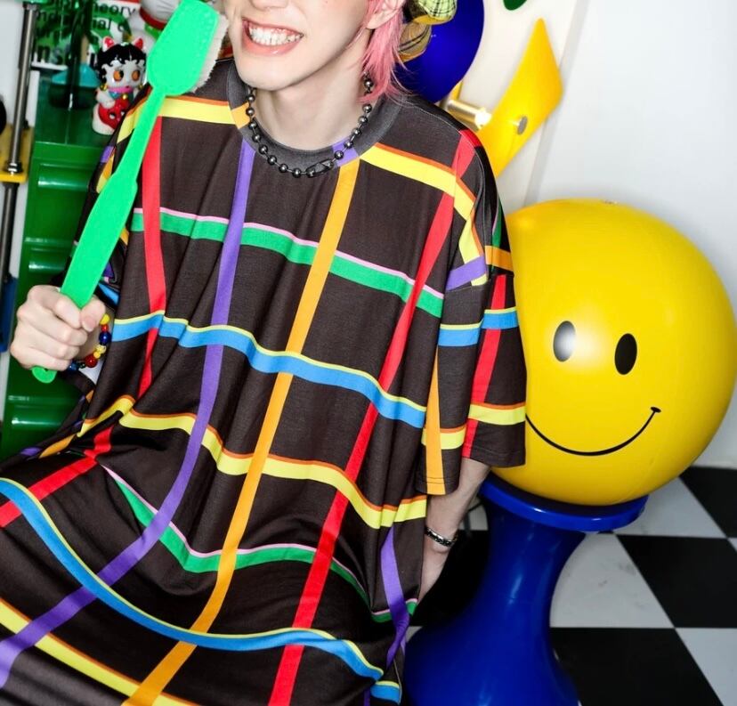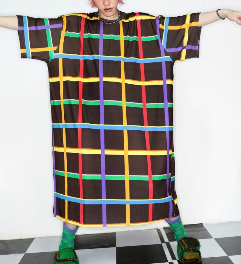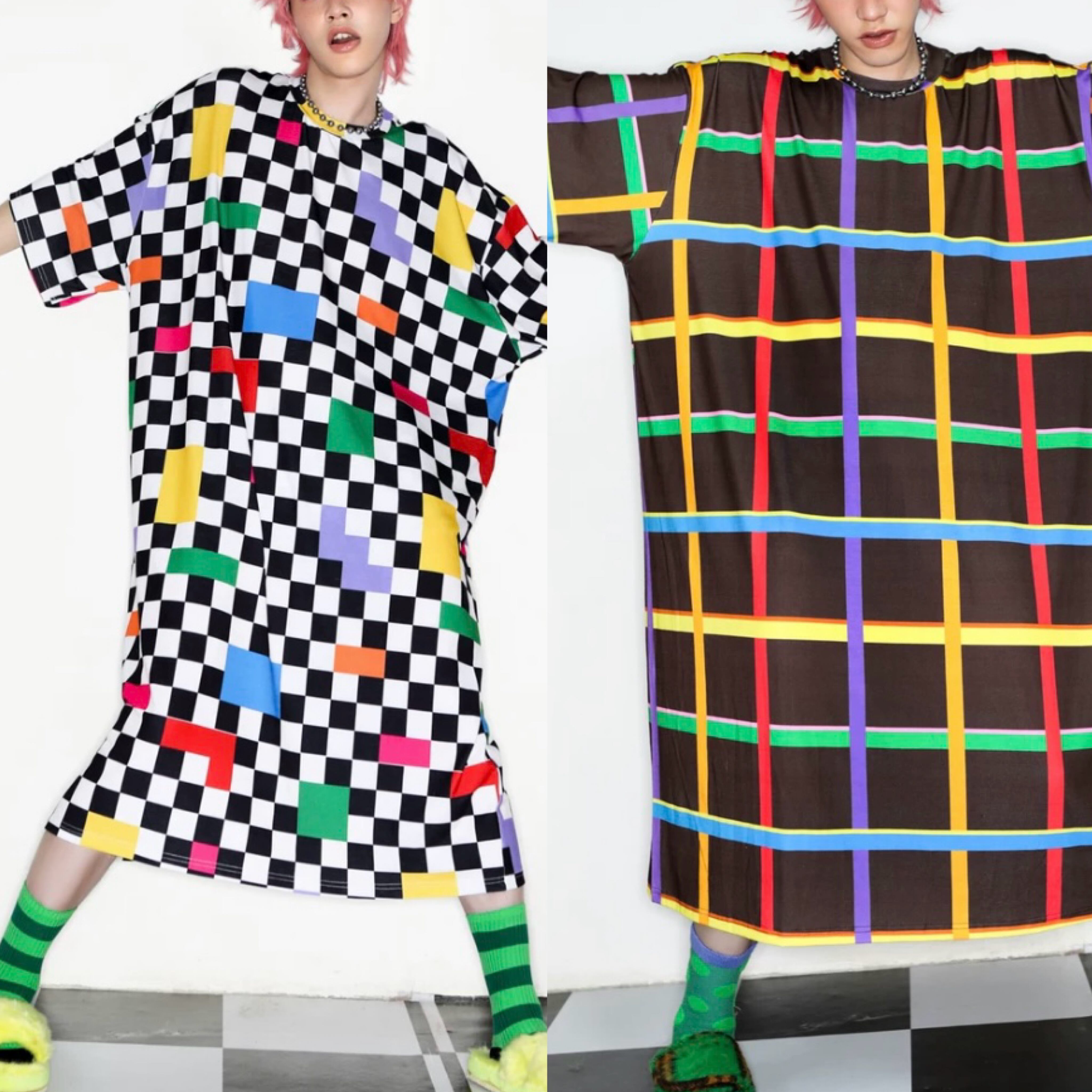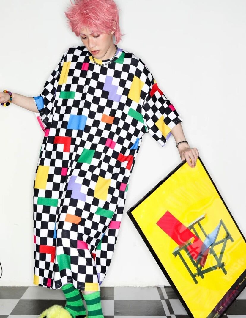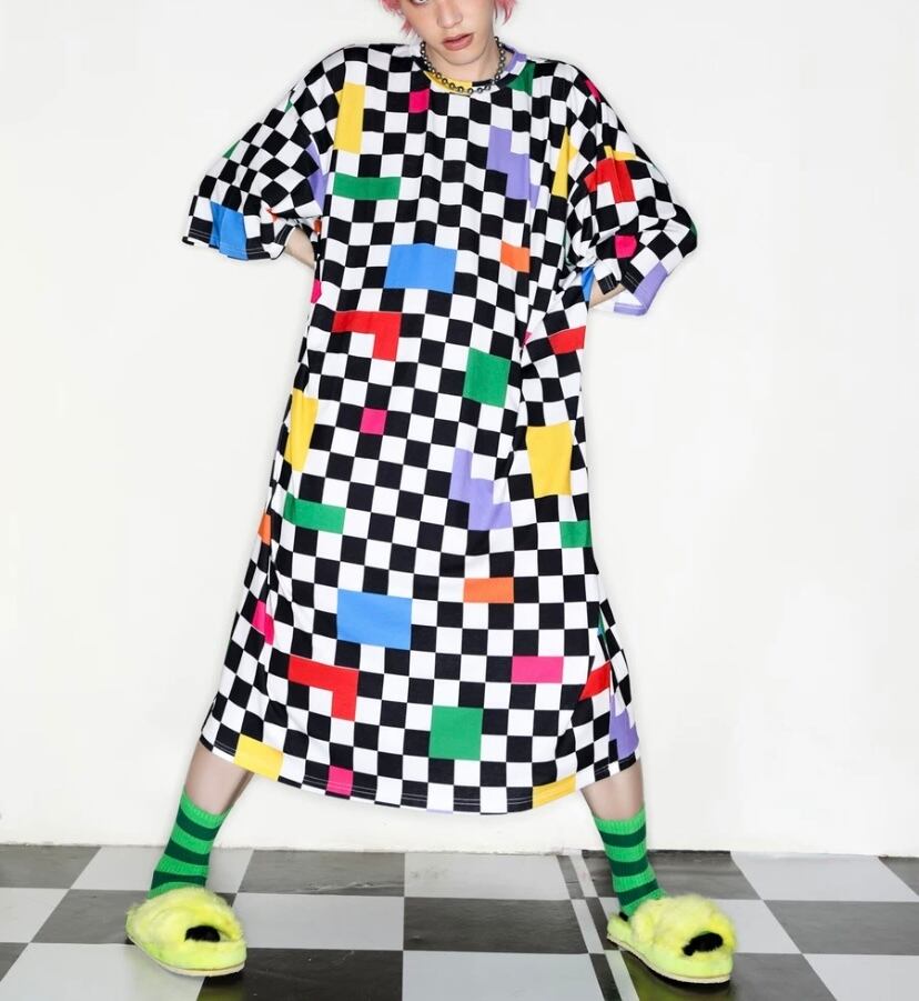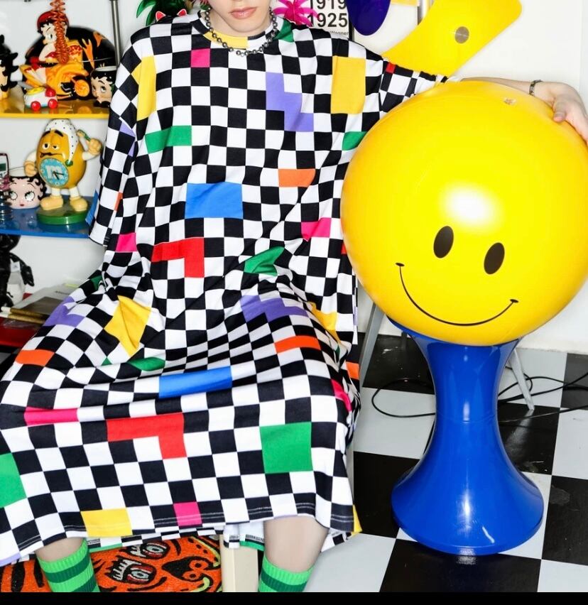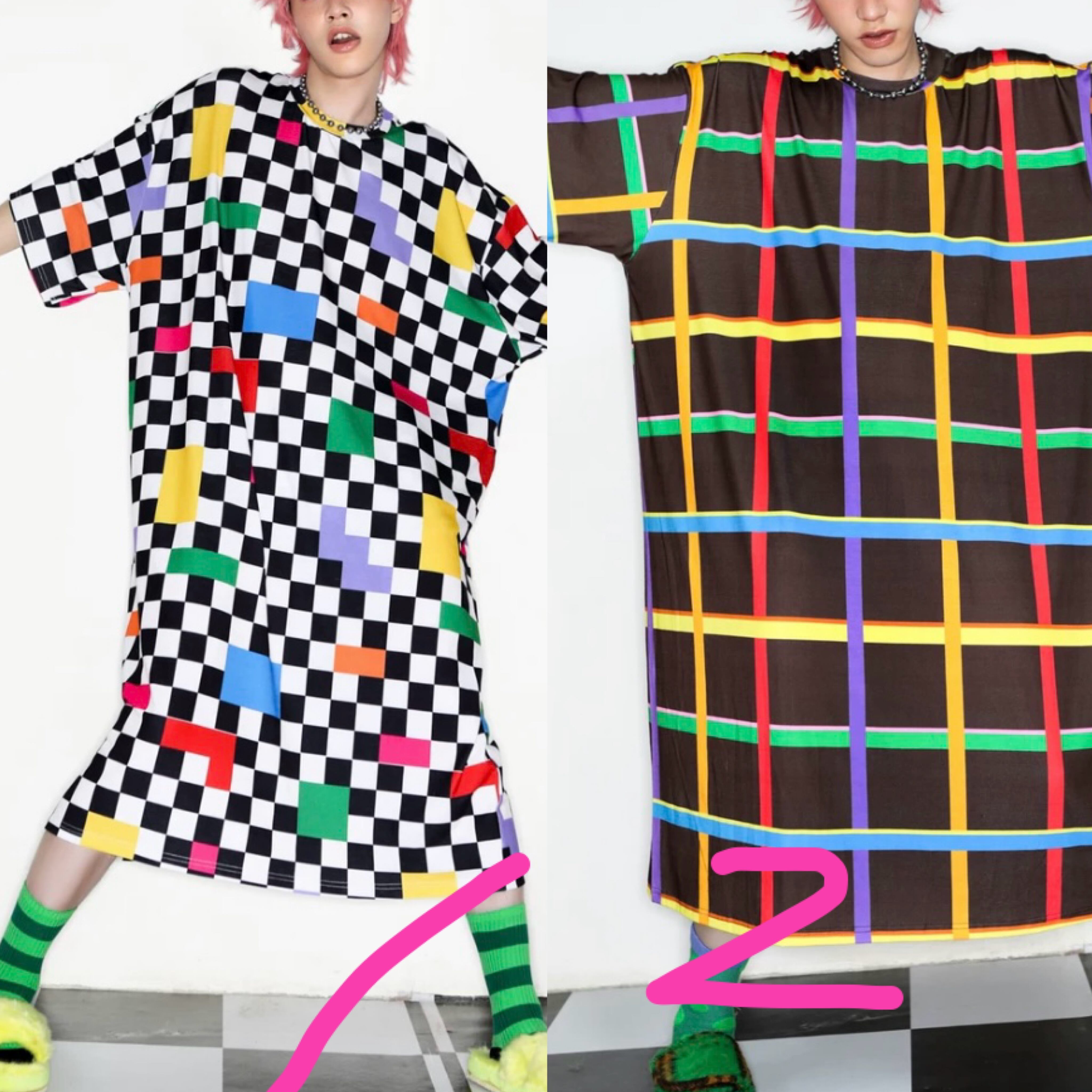 チェック 黒 白 カラフル ゆったり XL Tシャツ 可愛い わ