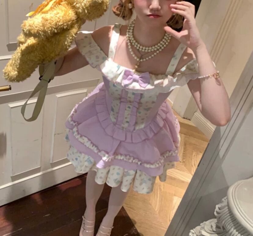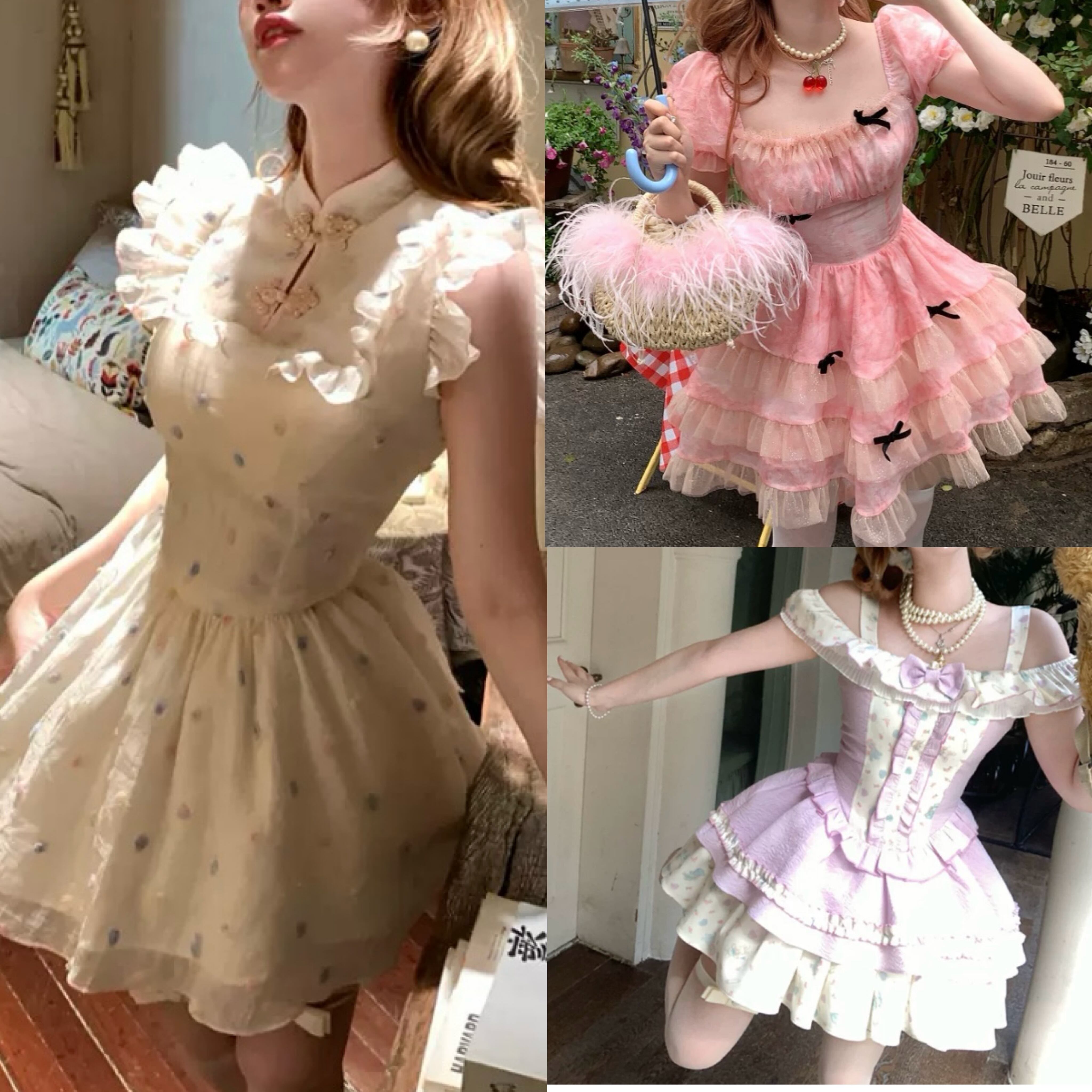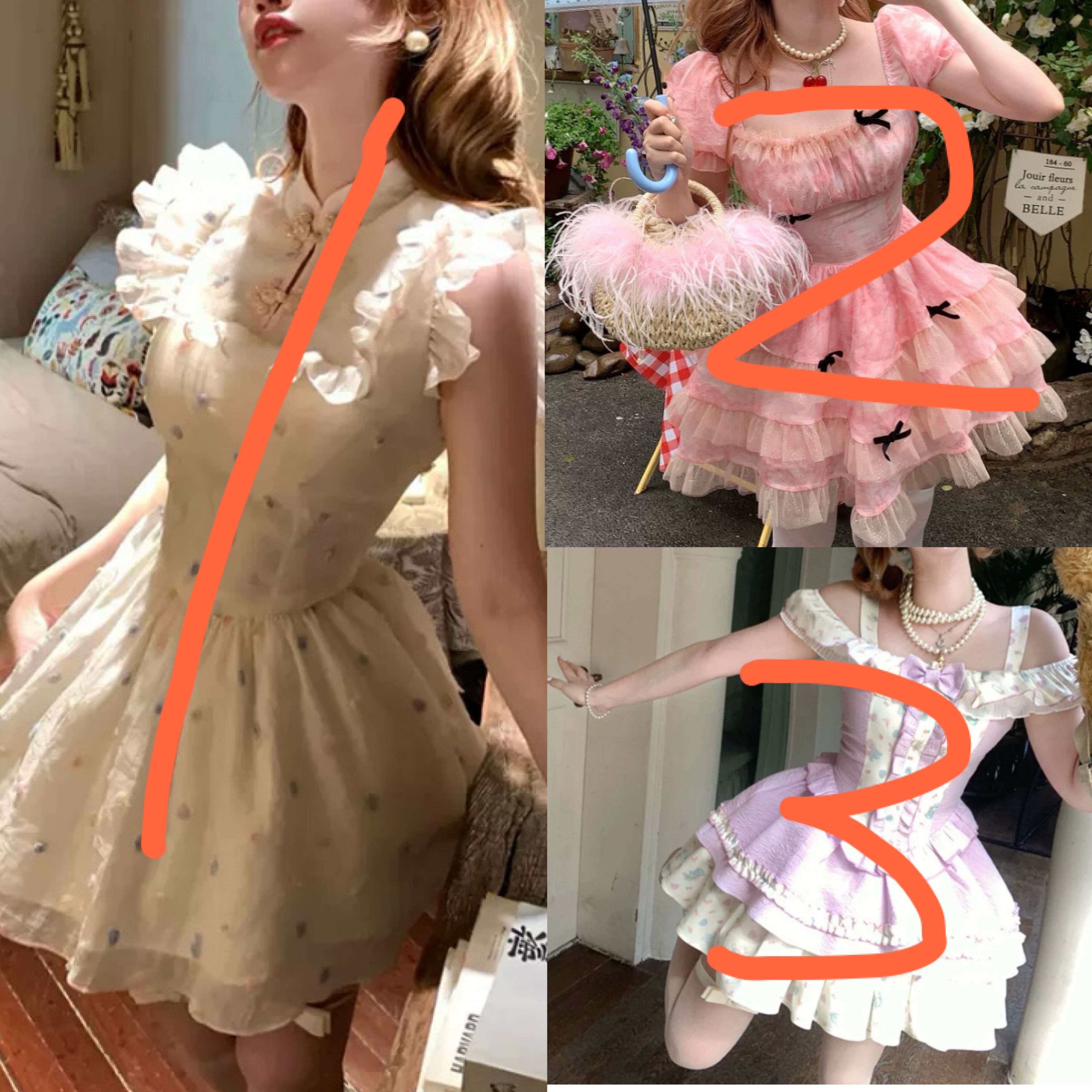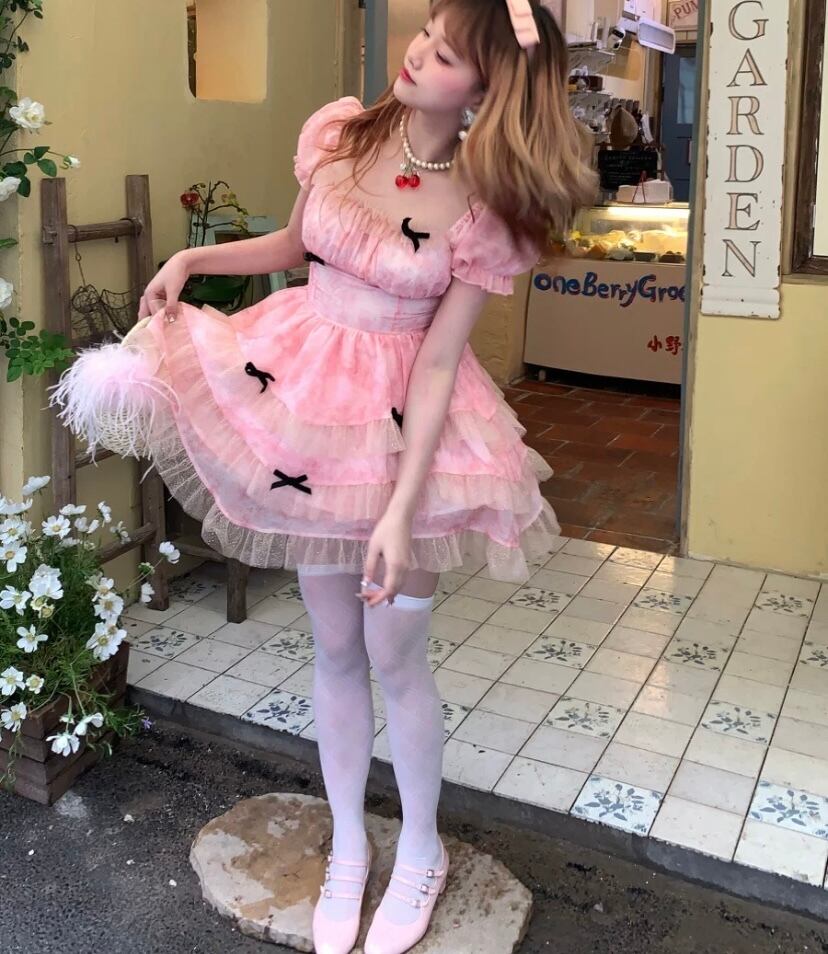 ベージュ チャイナ リボン ワンピース ガーリー ピンク ドレス 姫 可愛い ブラウス