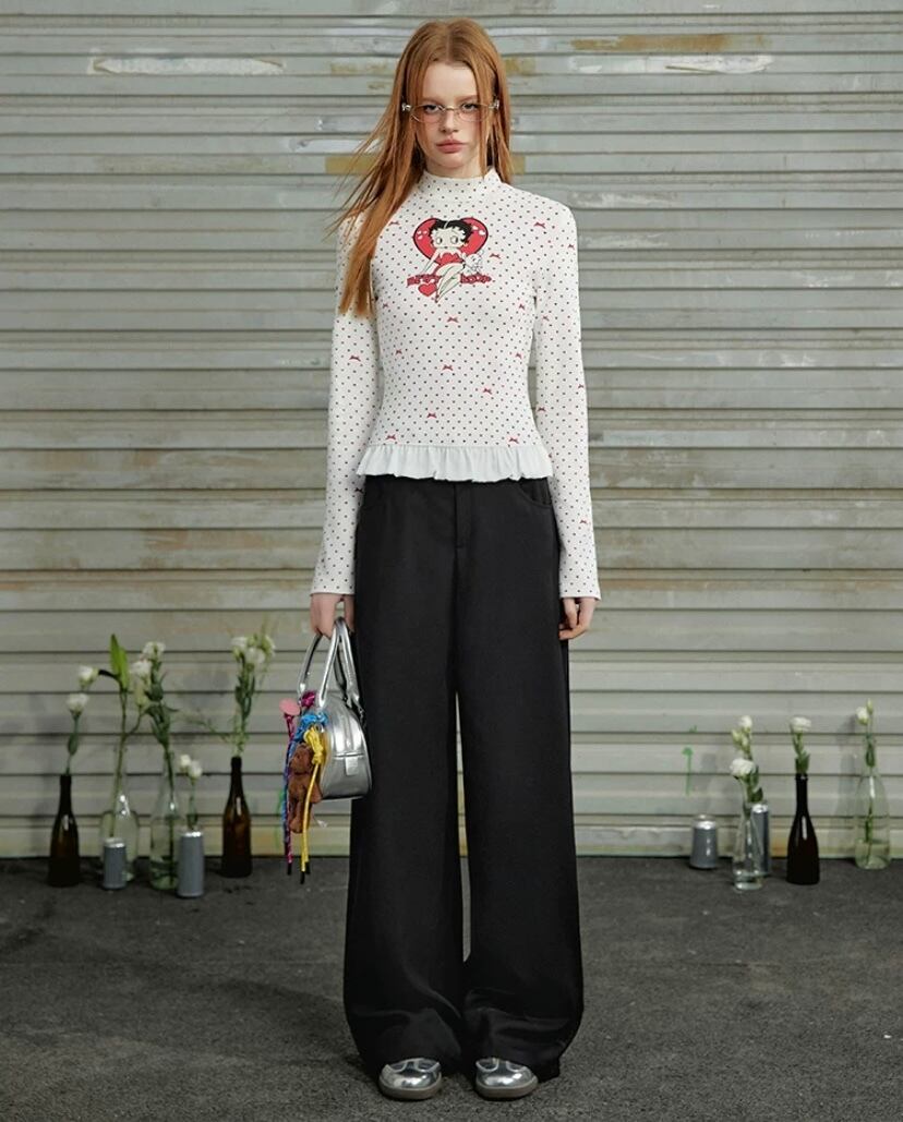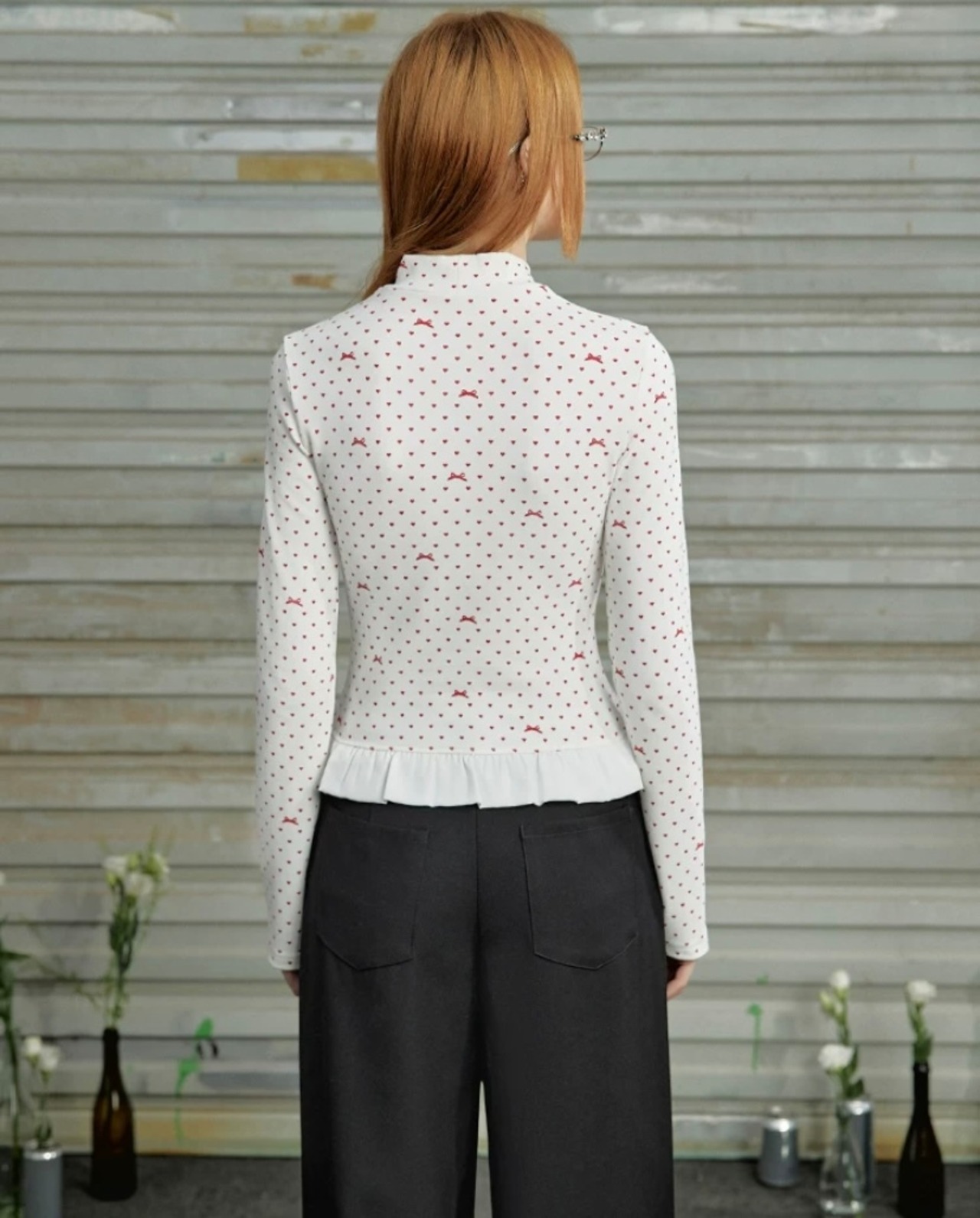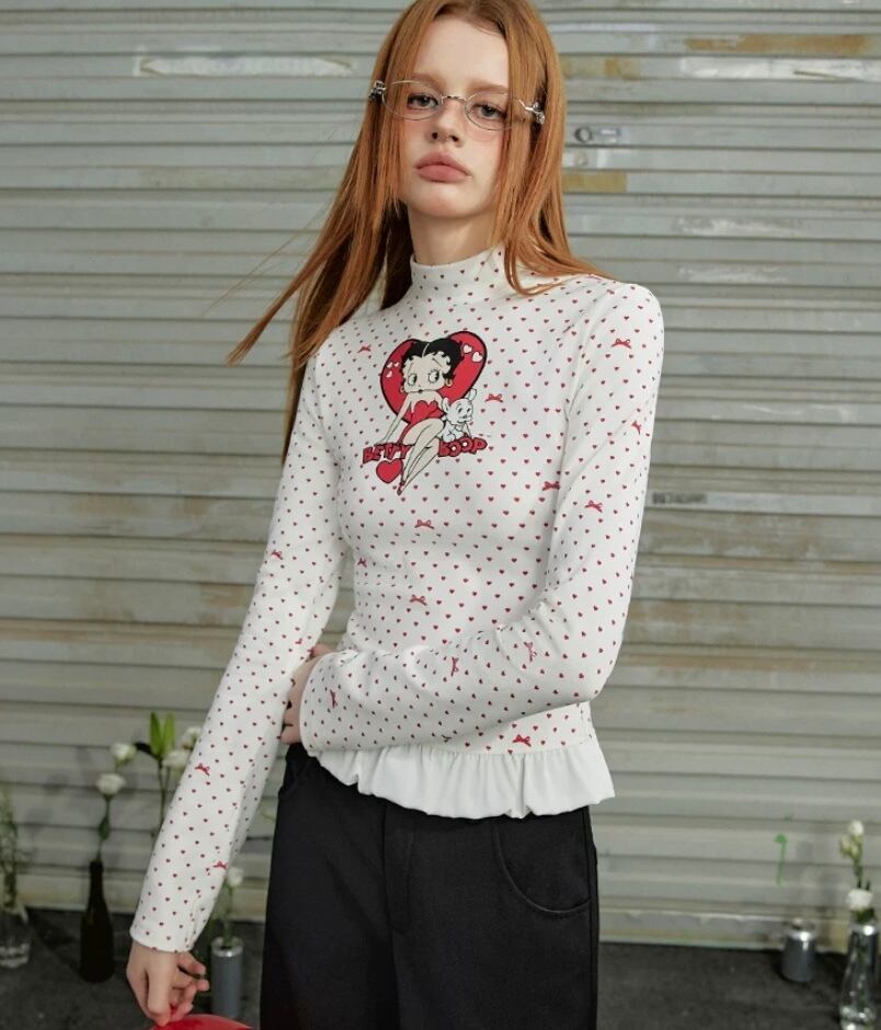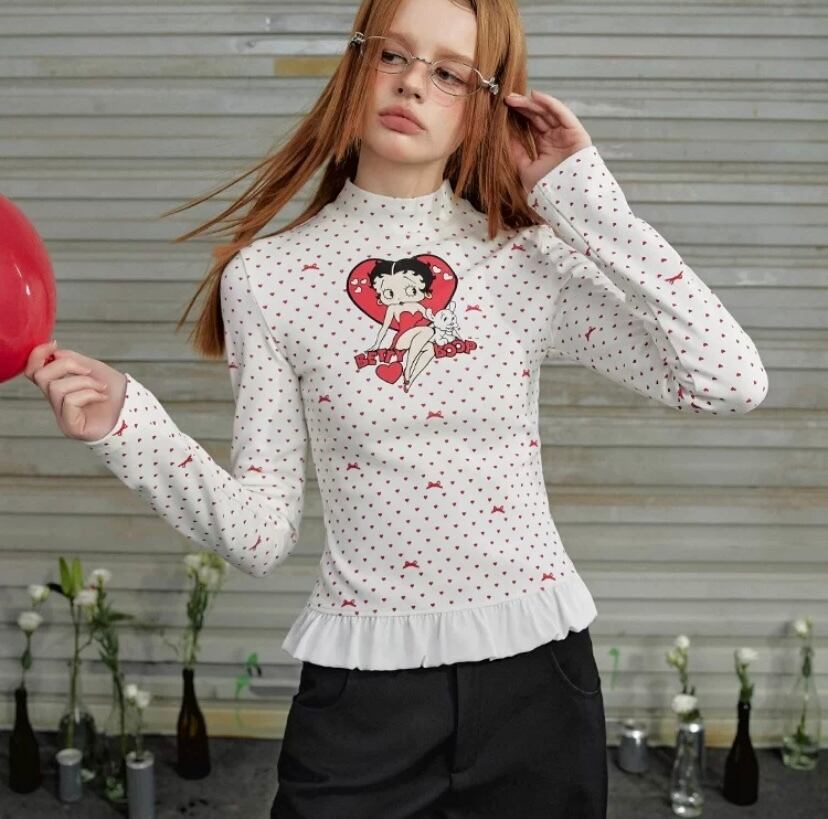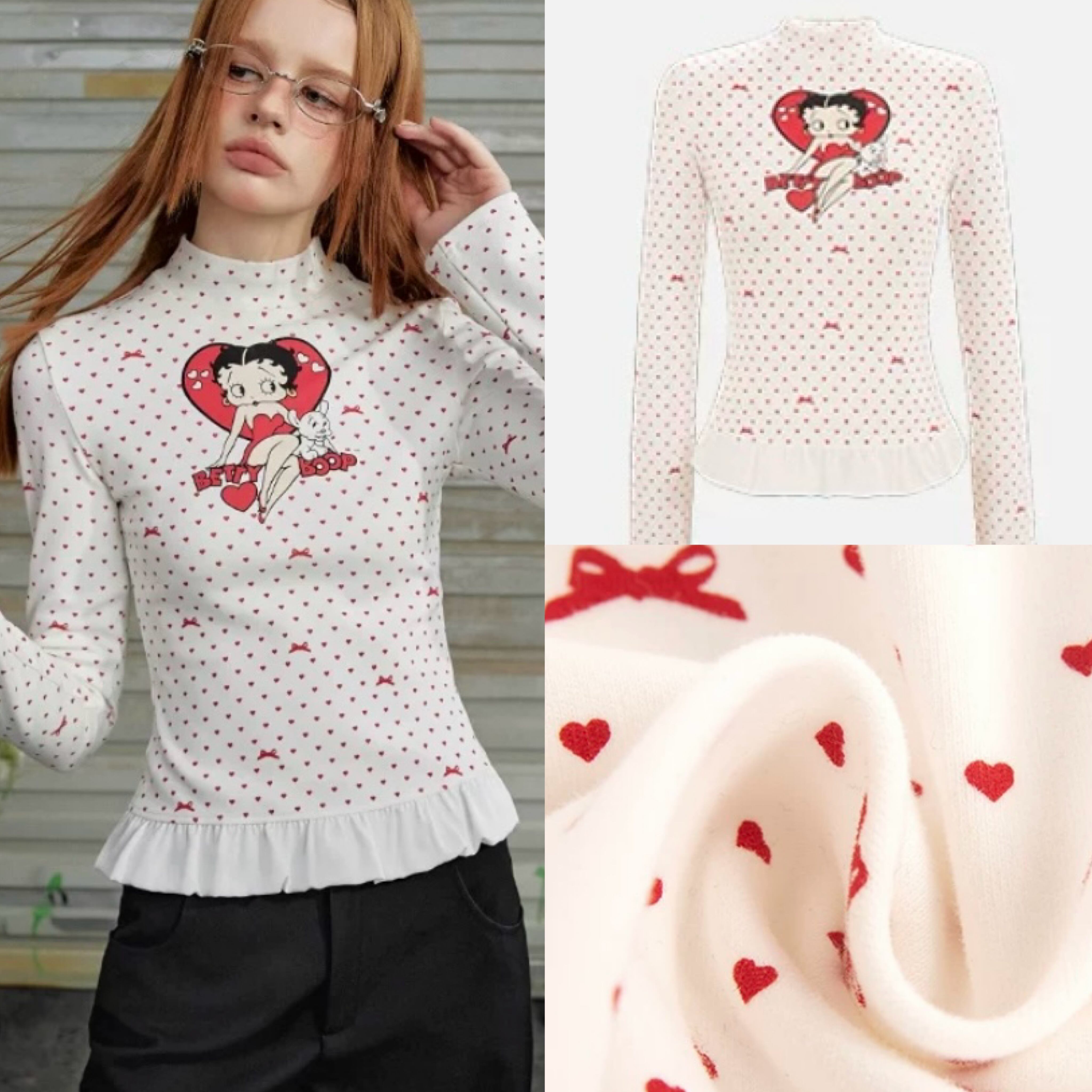 白 赤 ハート リボン Tシャツ 可愛い ブラウス 可愛い