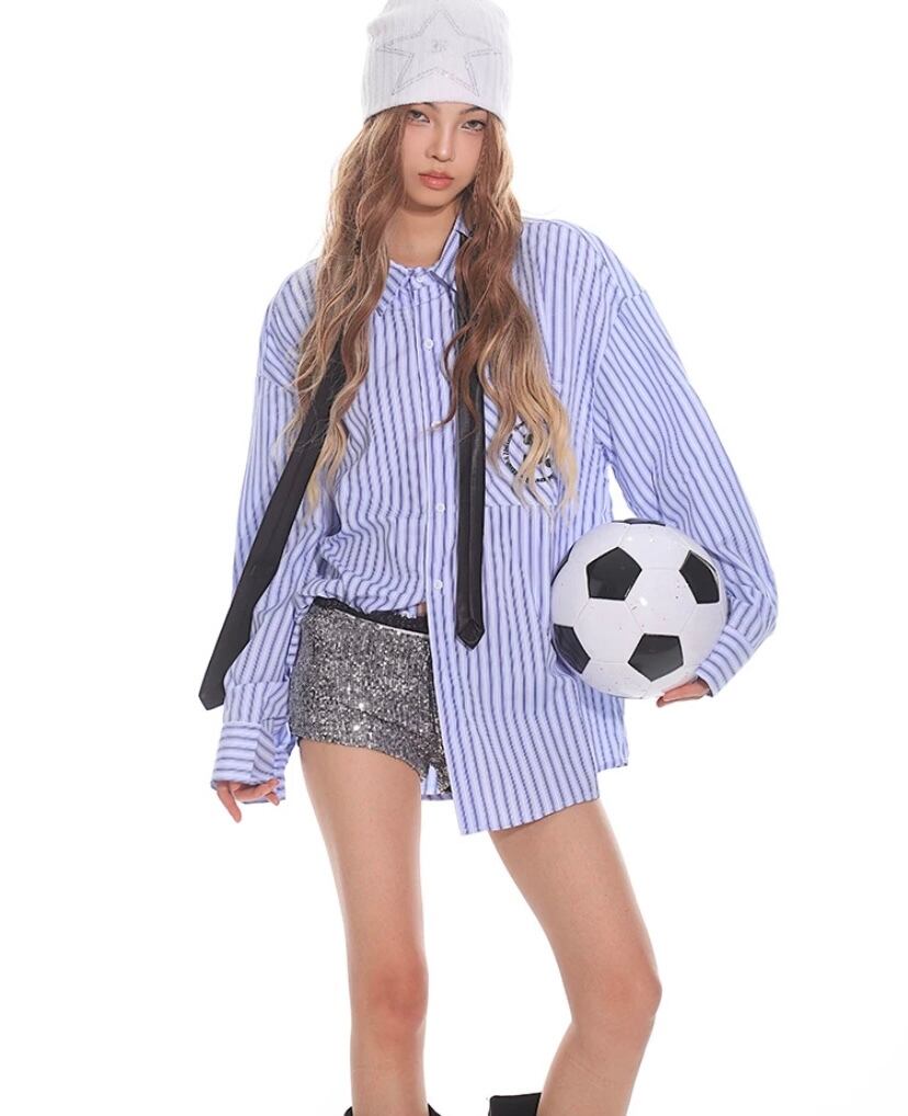 ピンク 水色 ネクタイ ガーリー スクール シャツ ブラウス ボーダー チェック