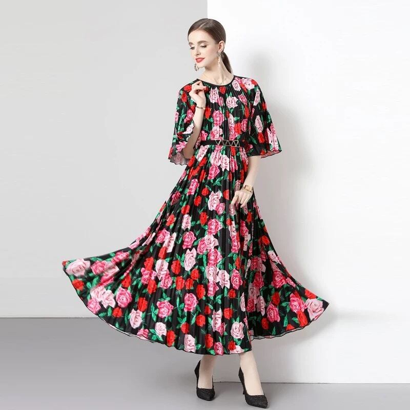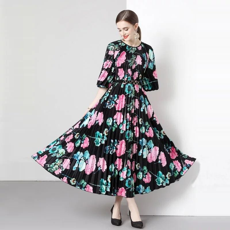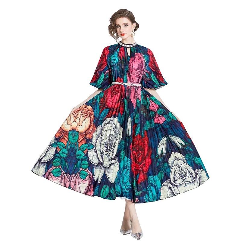 カラフル ピンク 花柄 フラワー ゆったり ワンピース