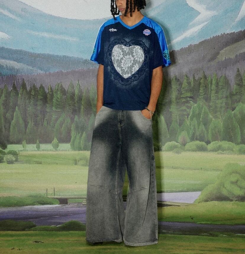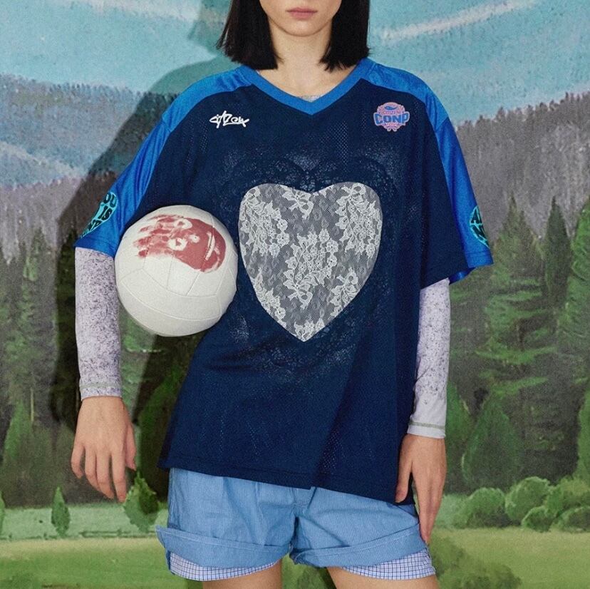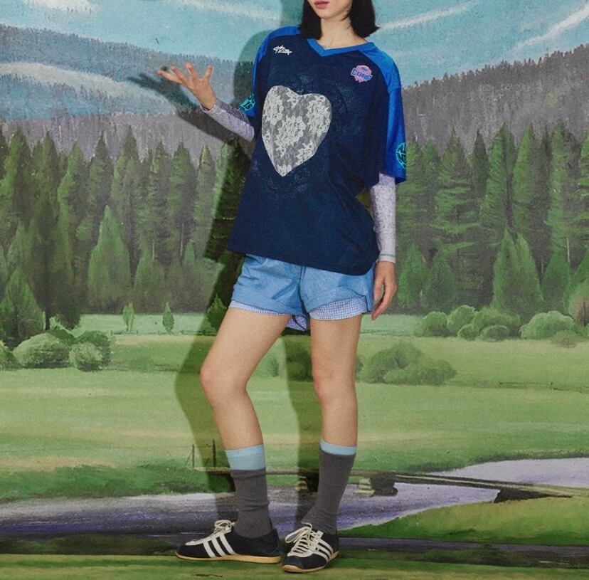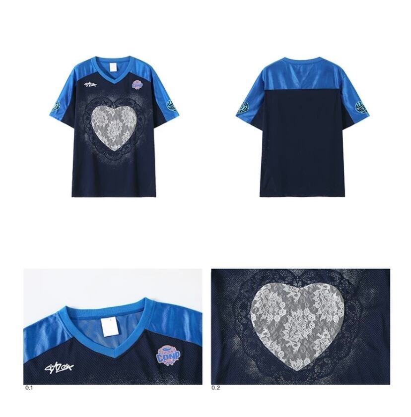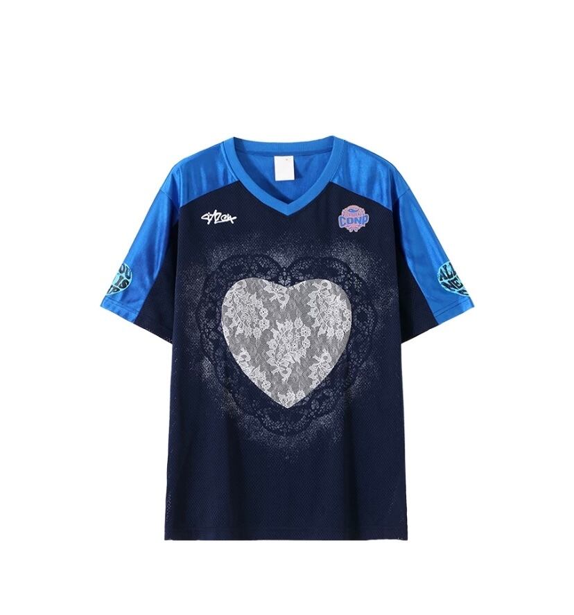 ハート カジュアル Tシャツ 青 ブルー ブラウス スポーツ