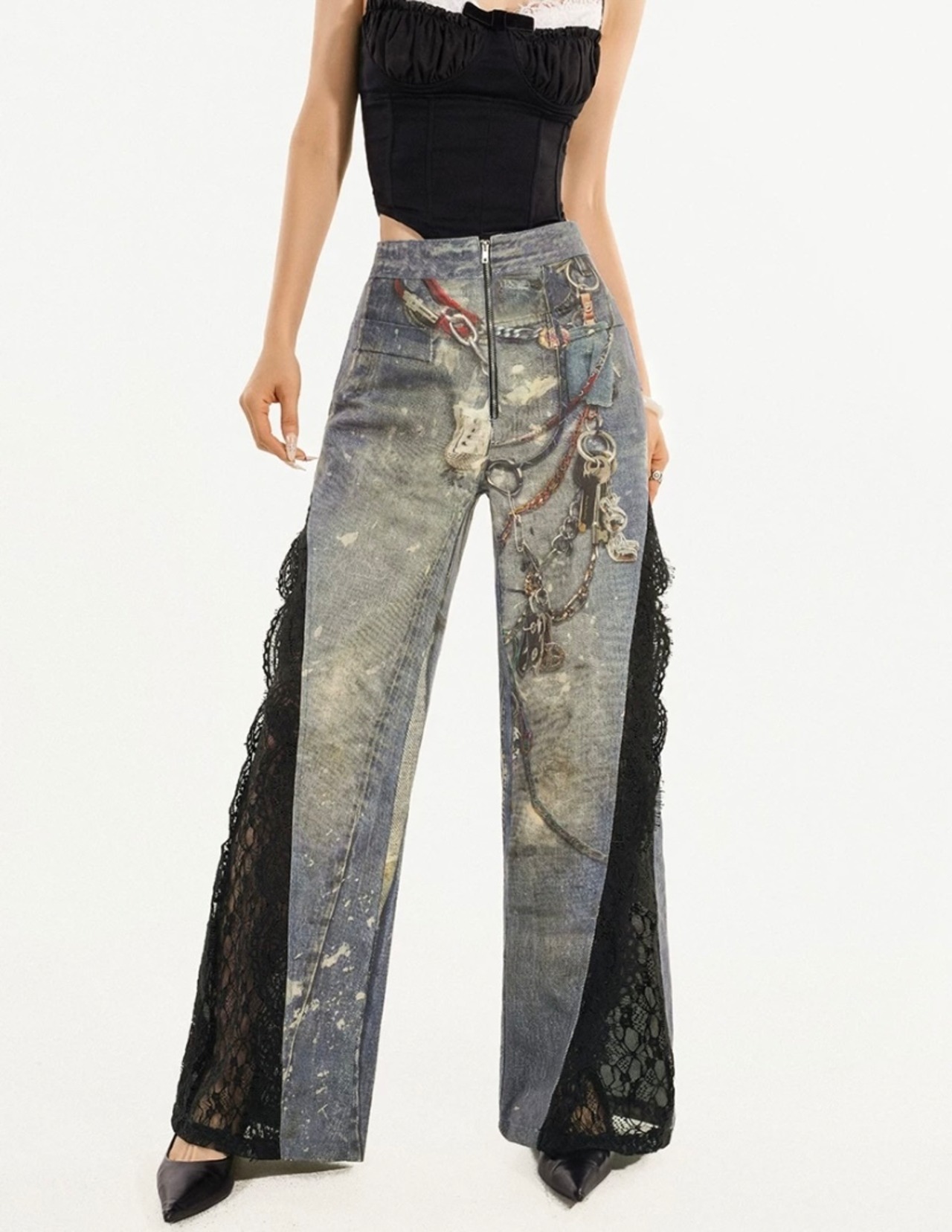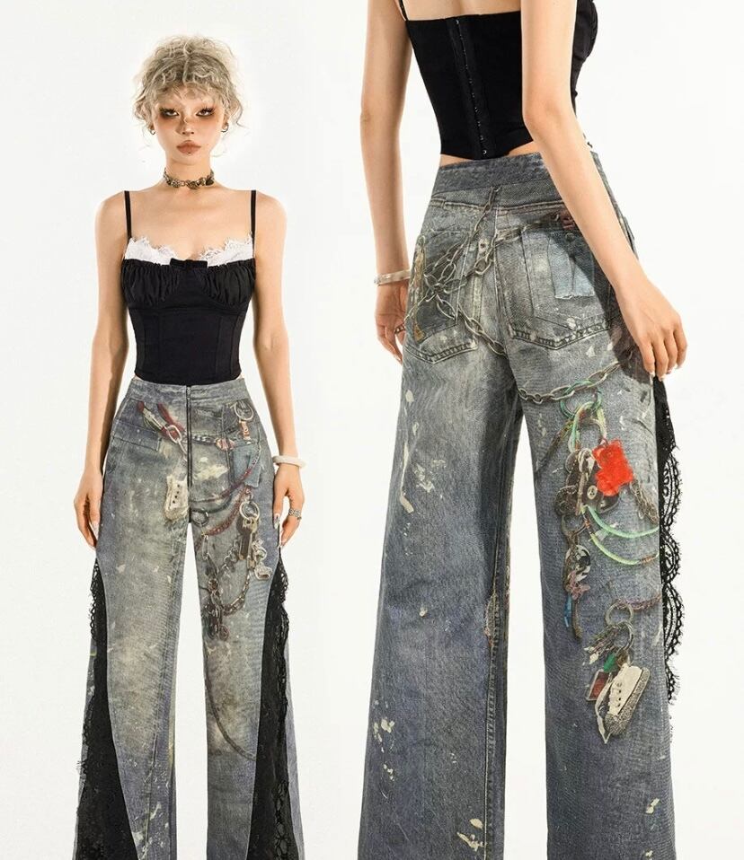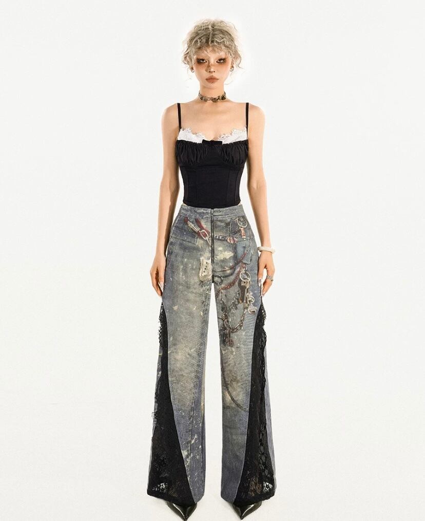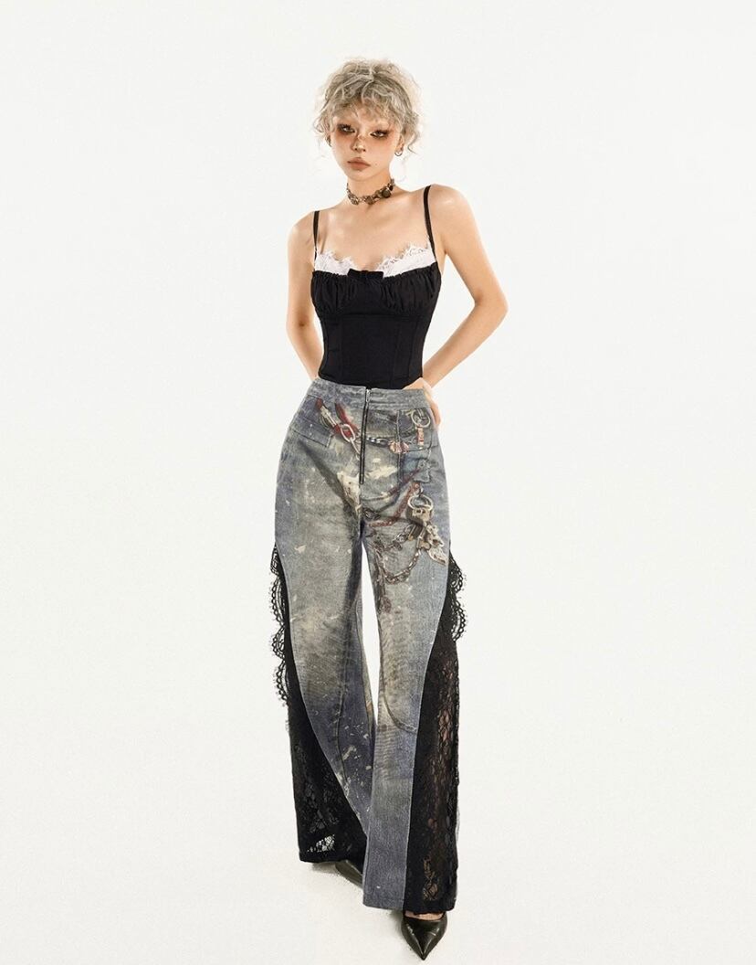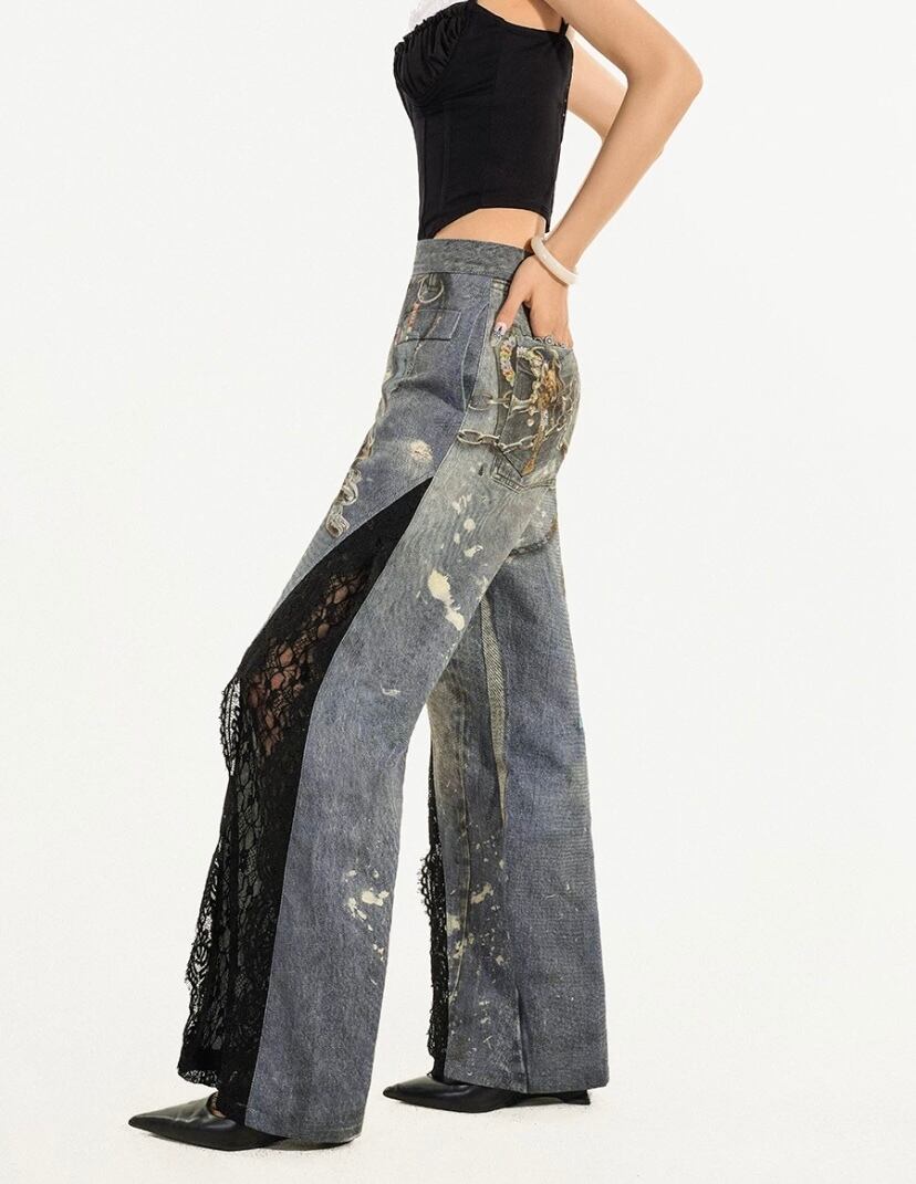 デニム パンツ レース フリル ボトムス 騙し絵