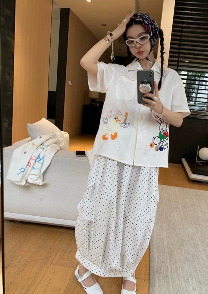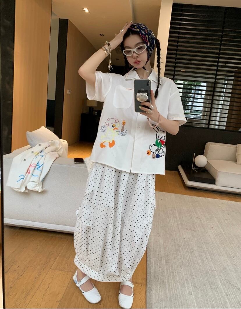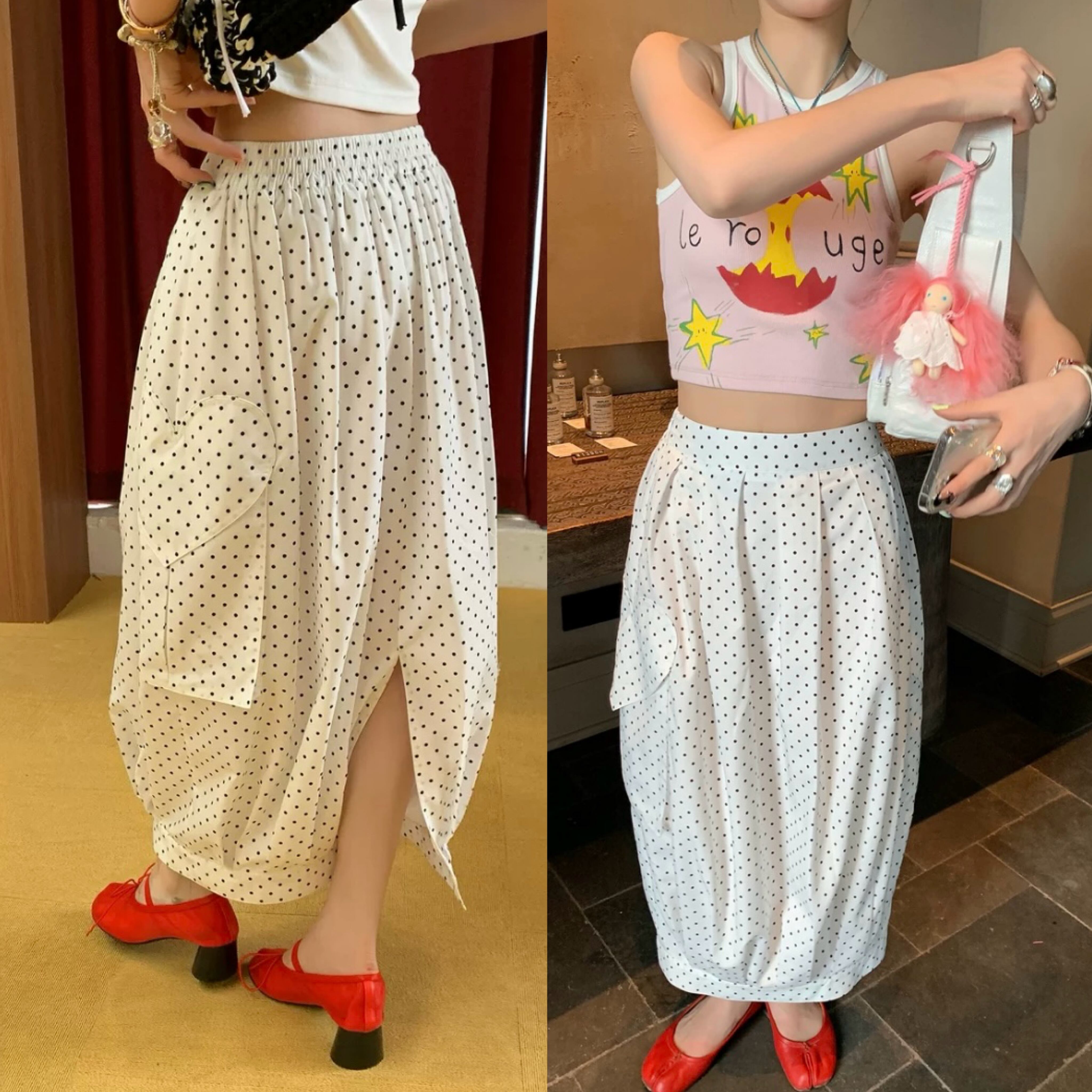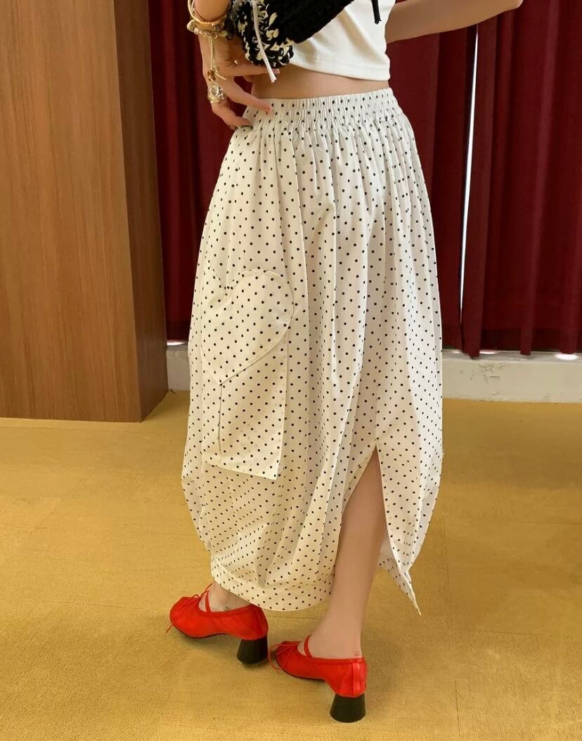 シンプル カジュアル スカート 白 ハート 水玉 ドット
