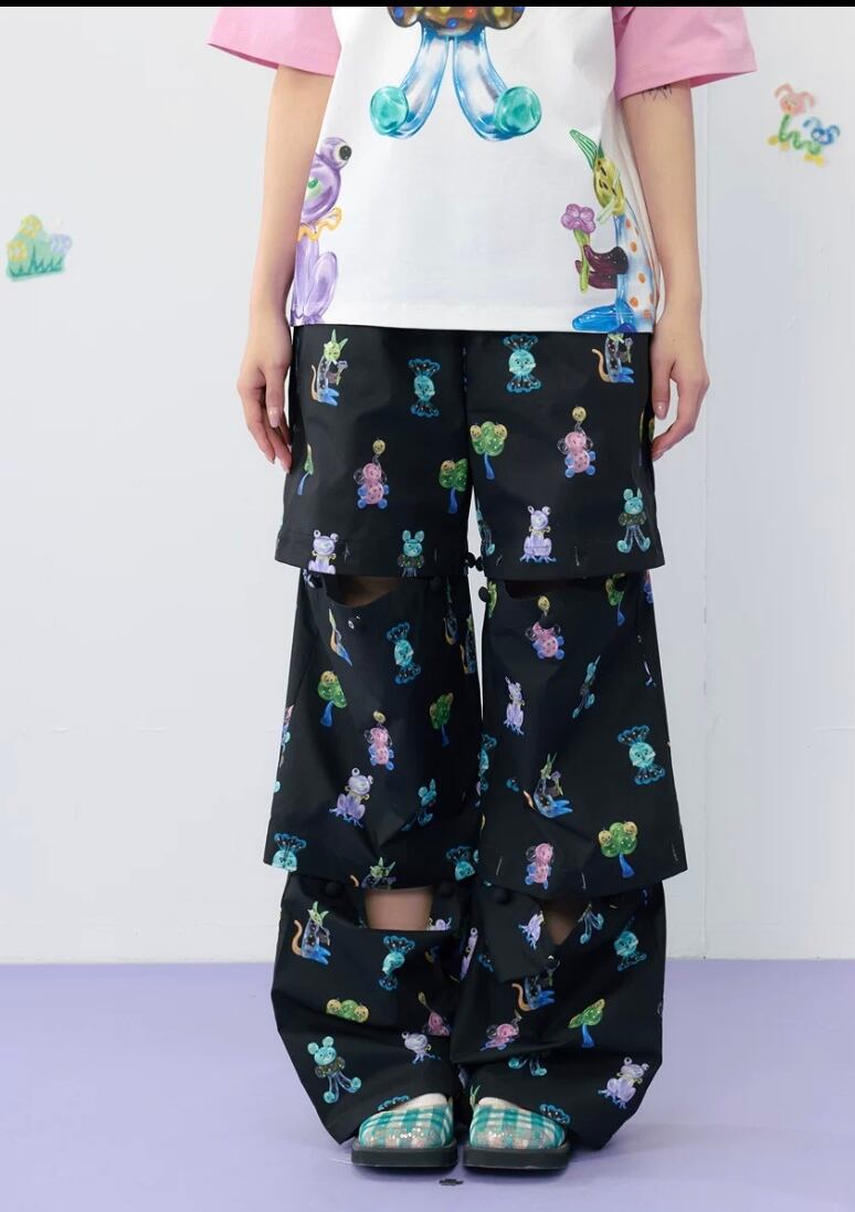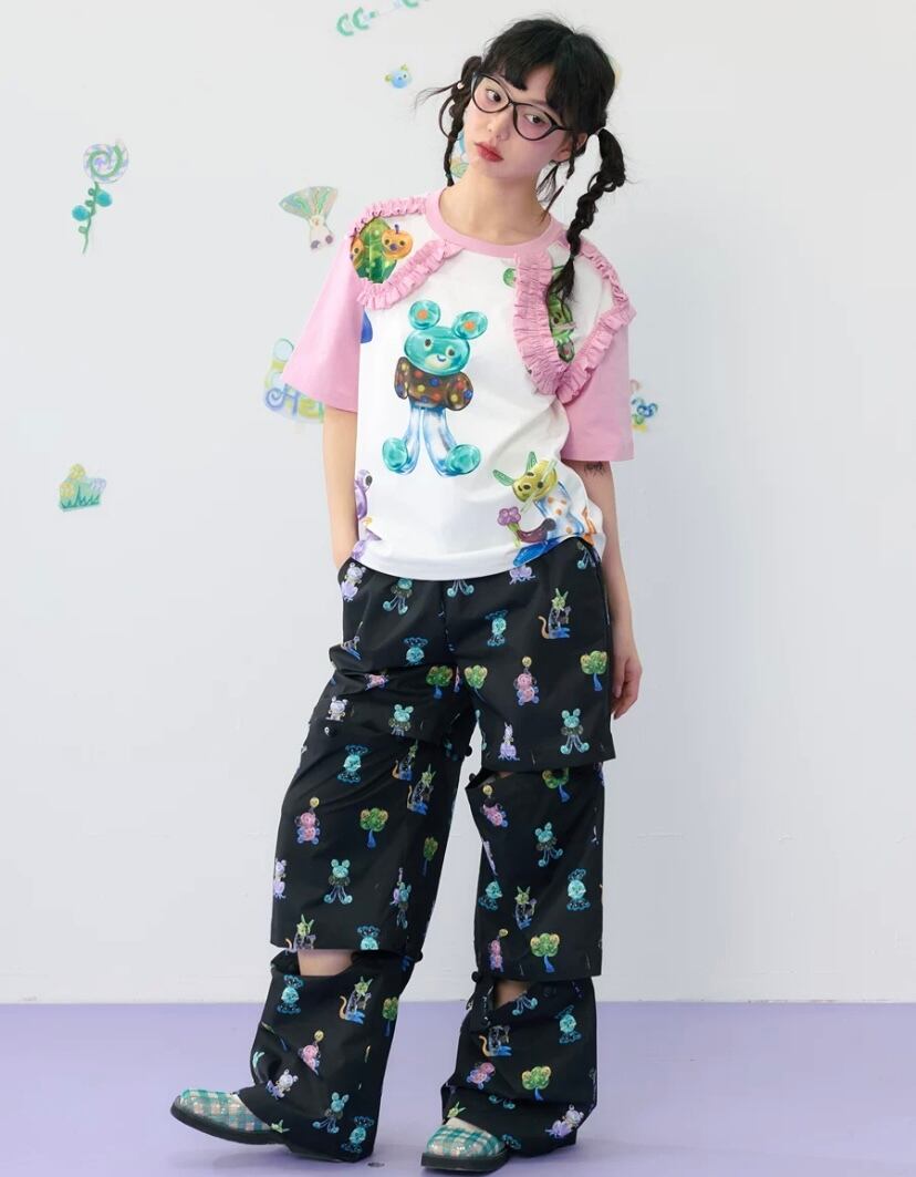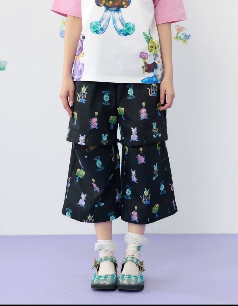 【2way】黒 ガーリー ハーフパンツ くま 原宿 パンツ ボトムス