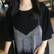 ピンク ラインストーン キラキラ キャミソール 黒 Tシャツ ワンピース ルームウェア ボーダー マリン