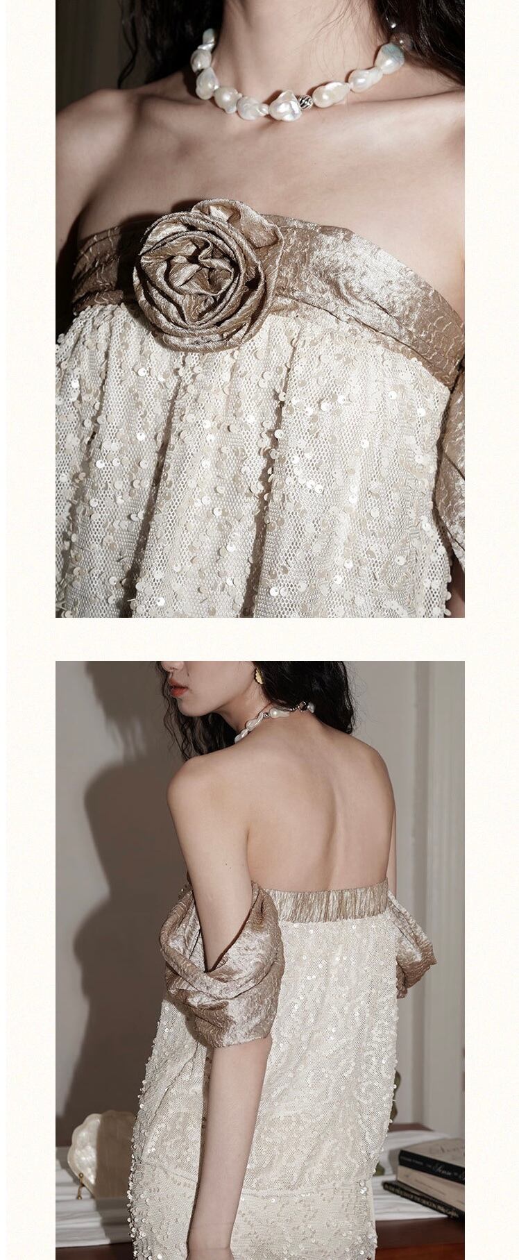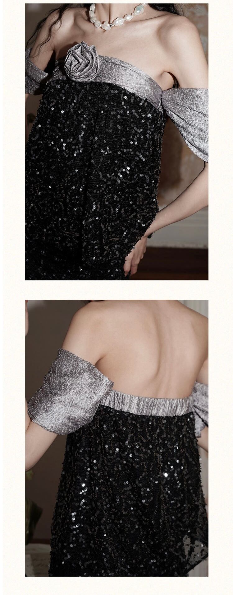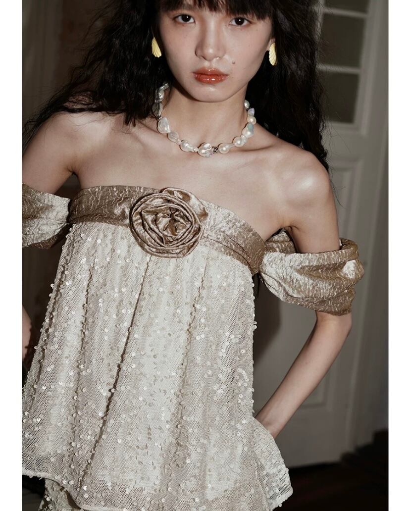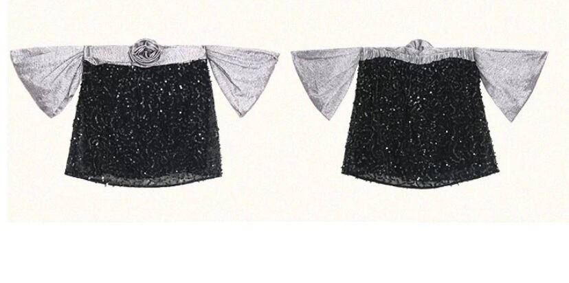 オフショルダー 黒 ベージュ 金色 キラキラ トップス ブラウス