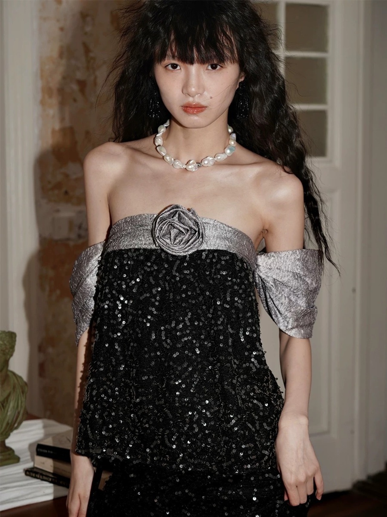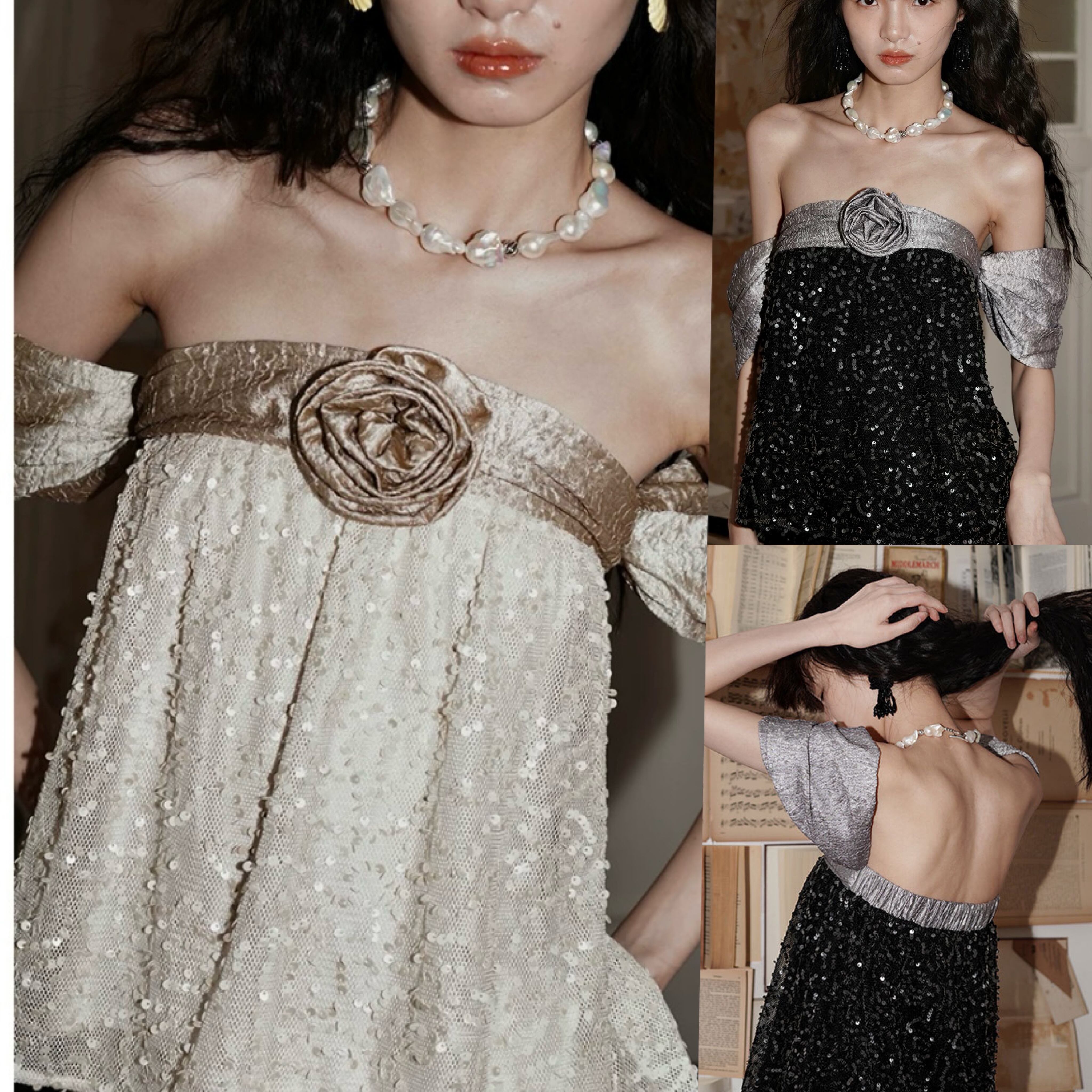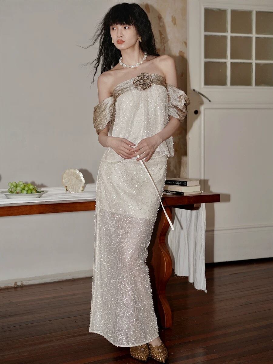 オフショルダー 黒 ベージュ 金色 キラキラ トップス ブラウス