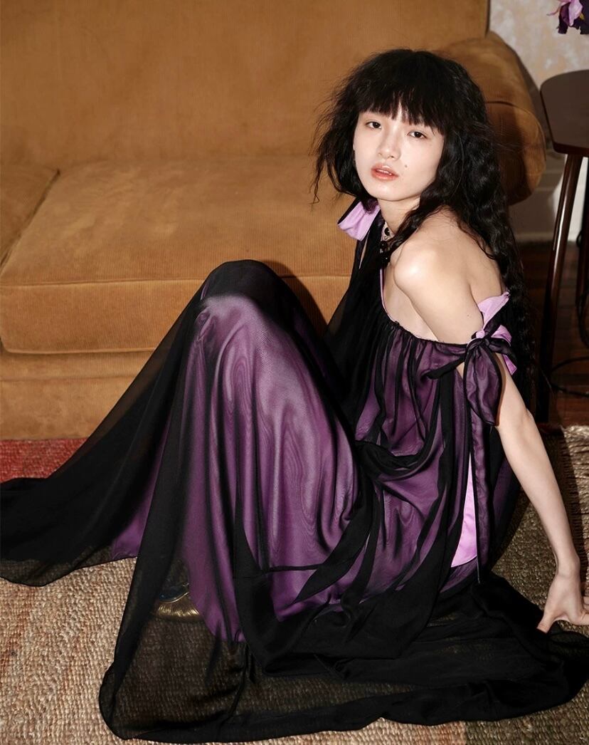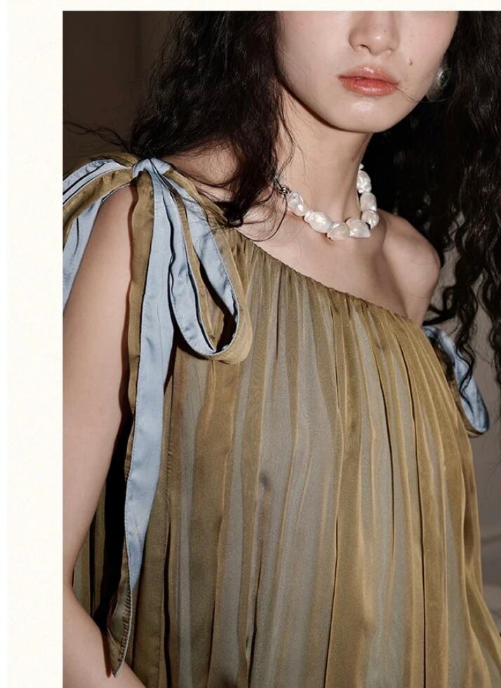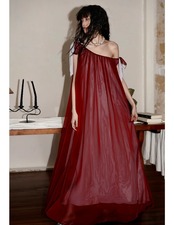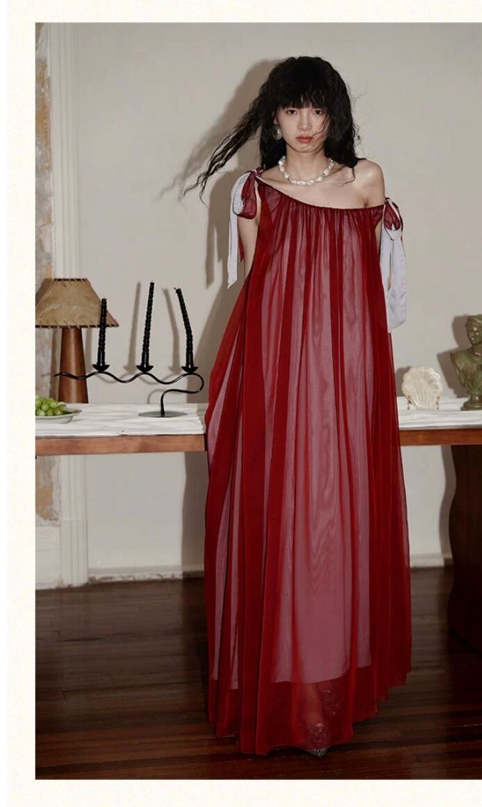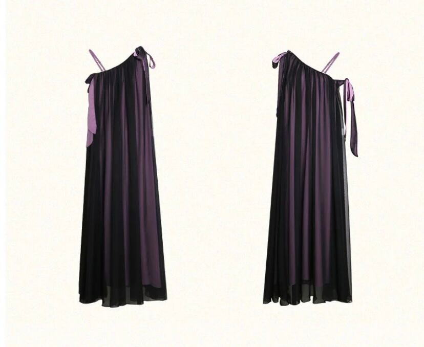オフショルダー ドレス ワンピース リボン 茶色 ベージュ 紫 赤 ロングドレス