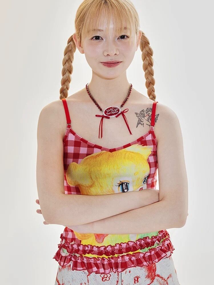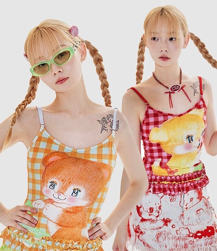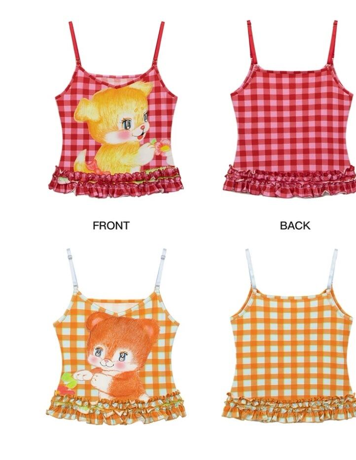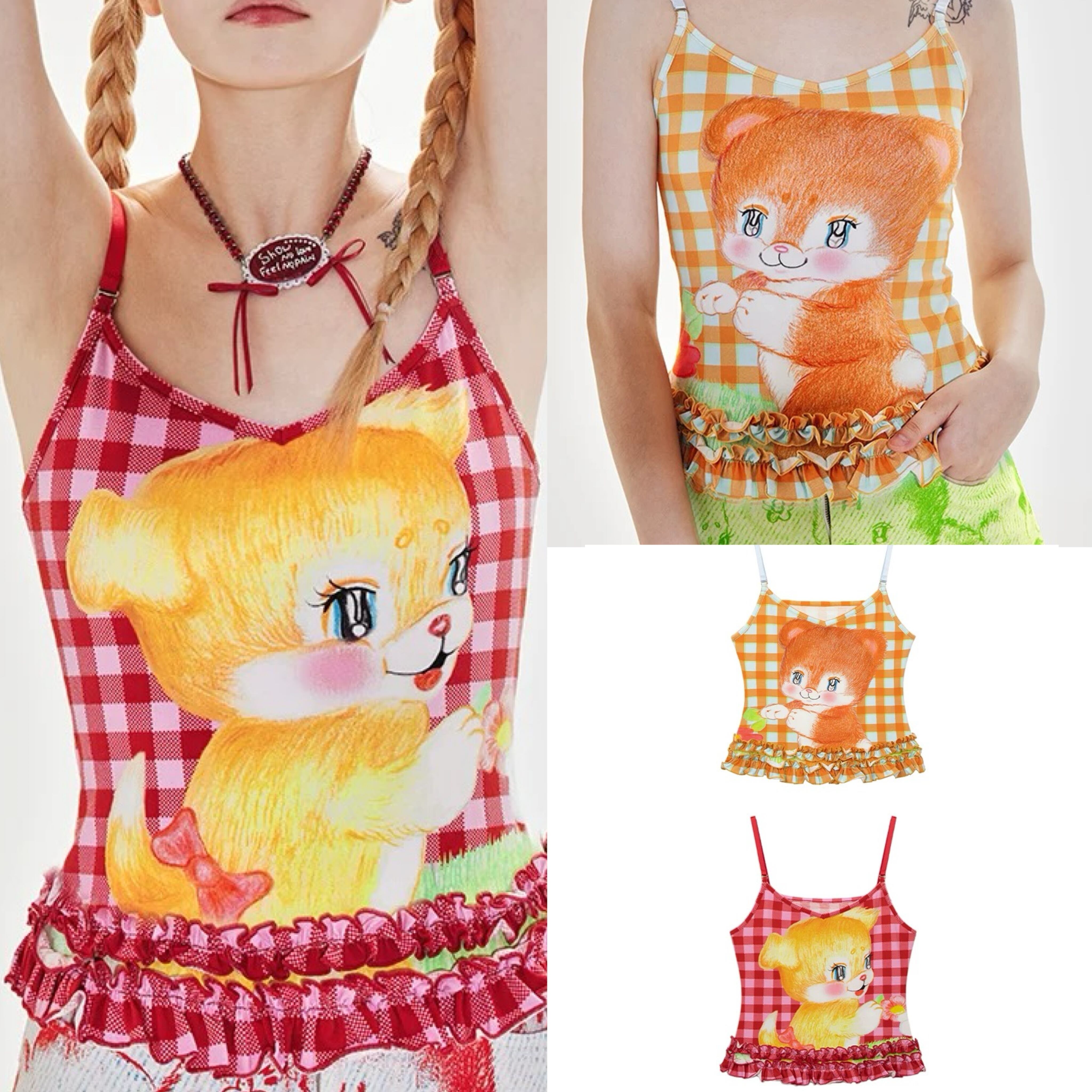 赤 くま りす オレンジ キャミソール ガーリー トップス タンクトップ 原宿