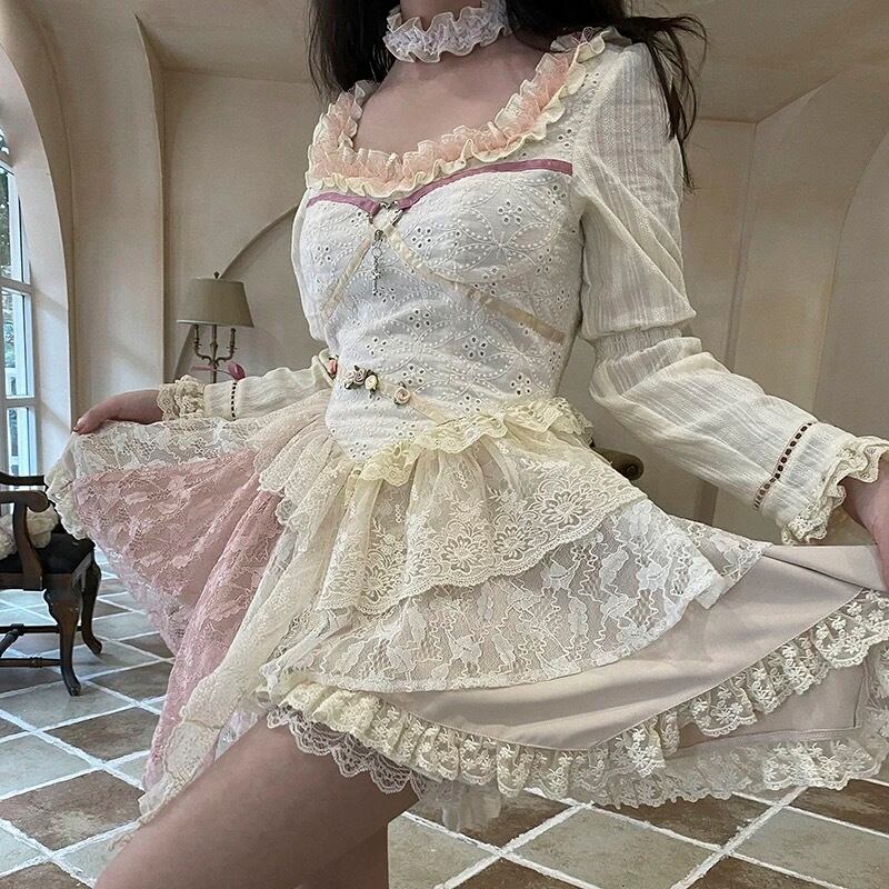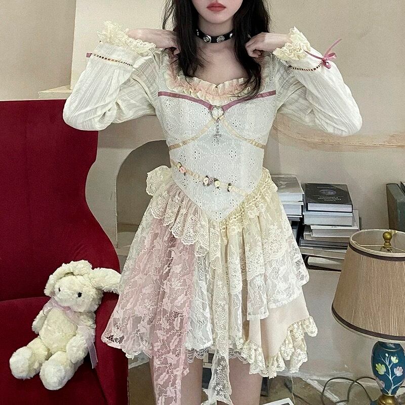 白 ホワイト レース ブラウス ガーリー 姫 可愛い 原宿