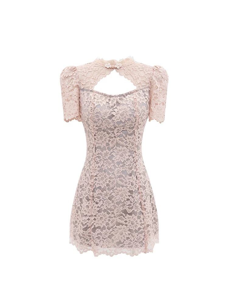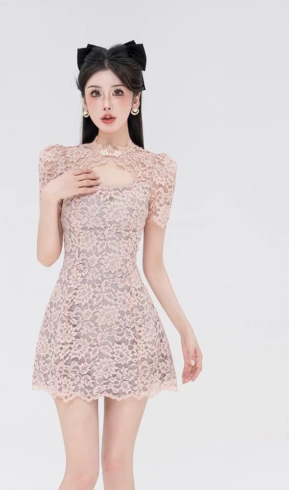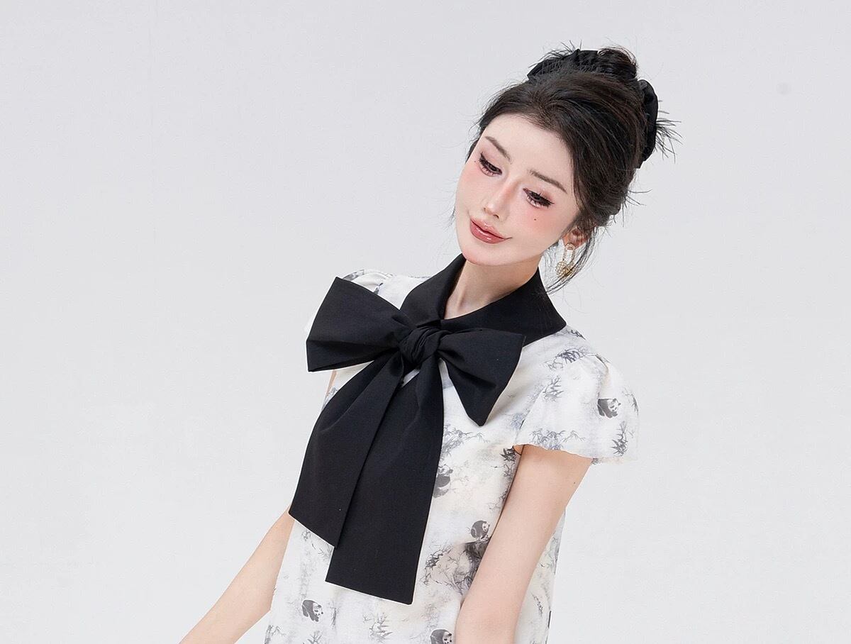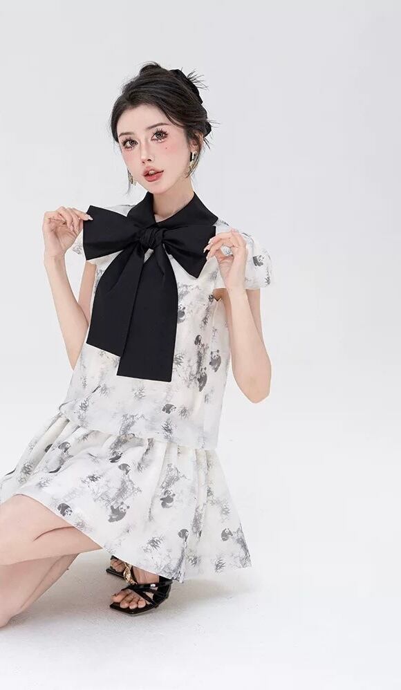 リボン 黒 ベージュ 白 ガーリー ブラウス レース ワンピース