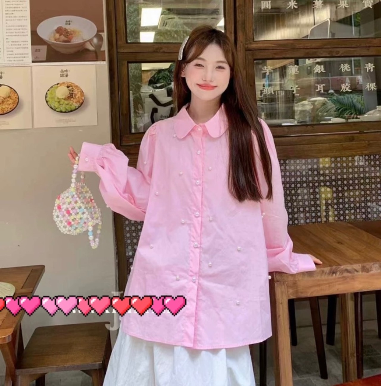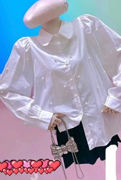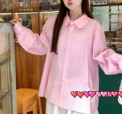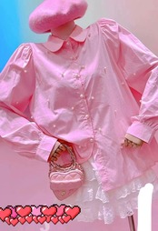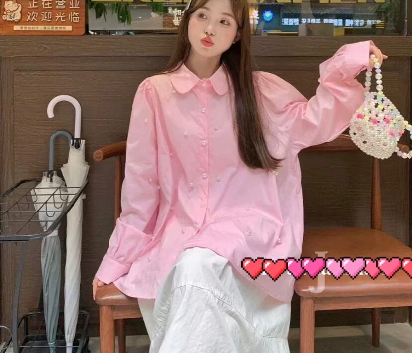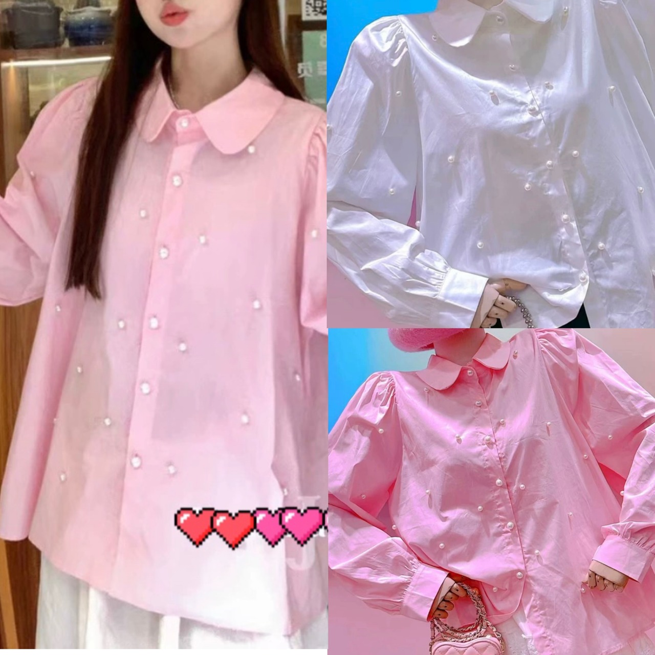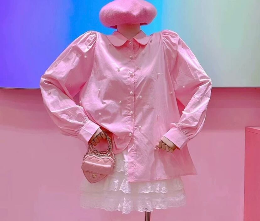パール 白 ピンク ガーリー 丸襟 可愛い 原宿 シャツ トップス ブラウス