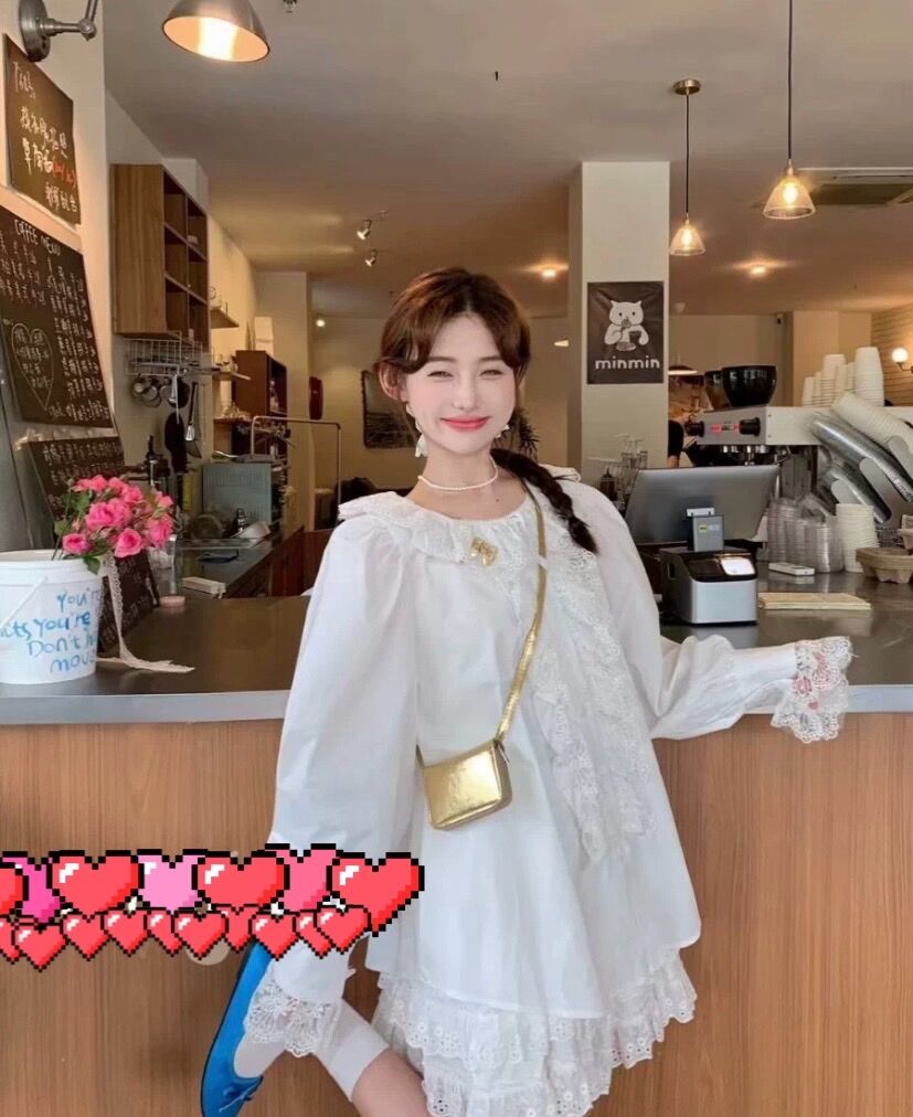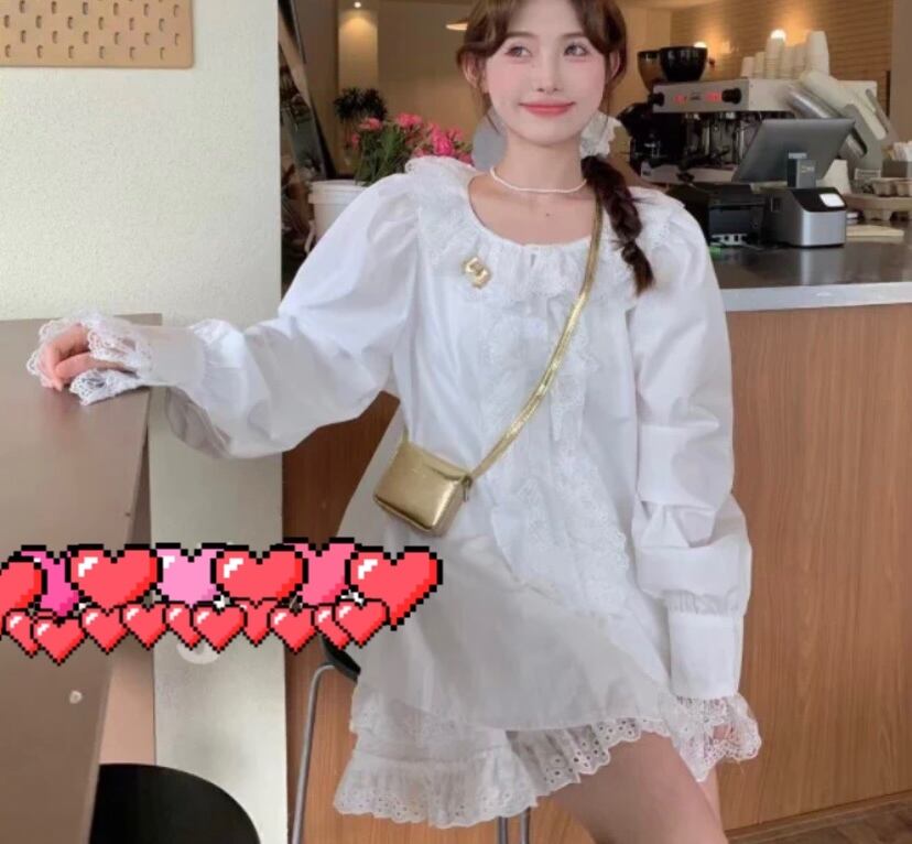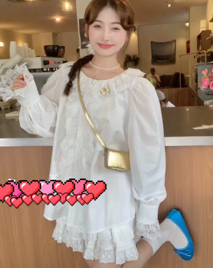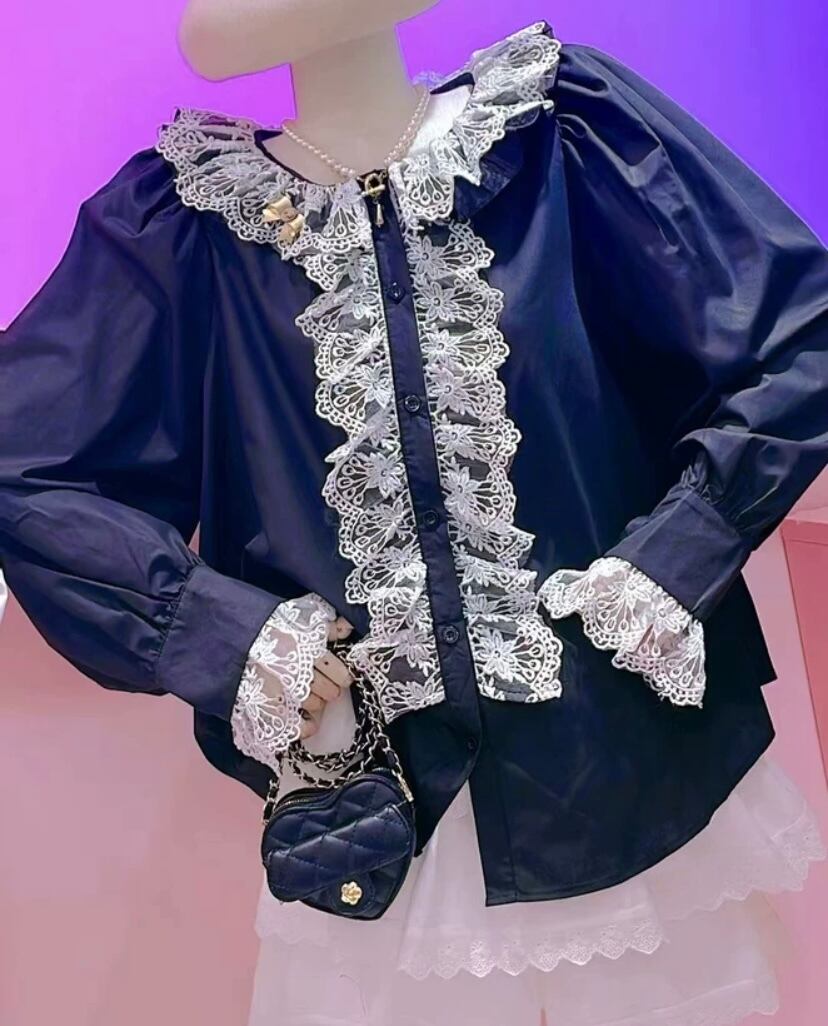黒 白 フリル シャツ ブラウス ガーリー トップス 可愛い シンプル 原宿