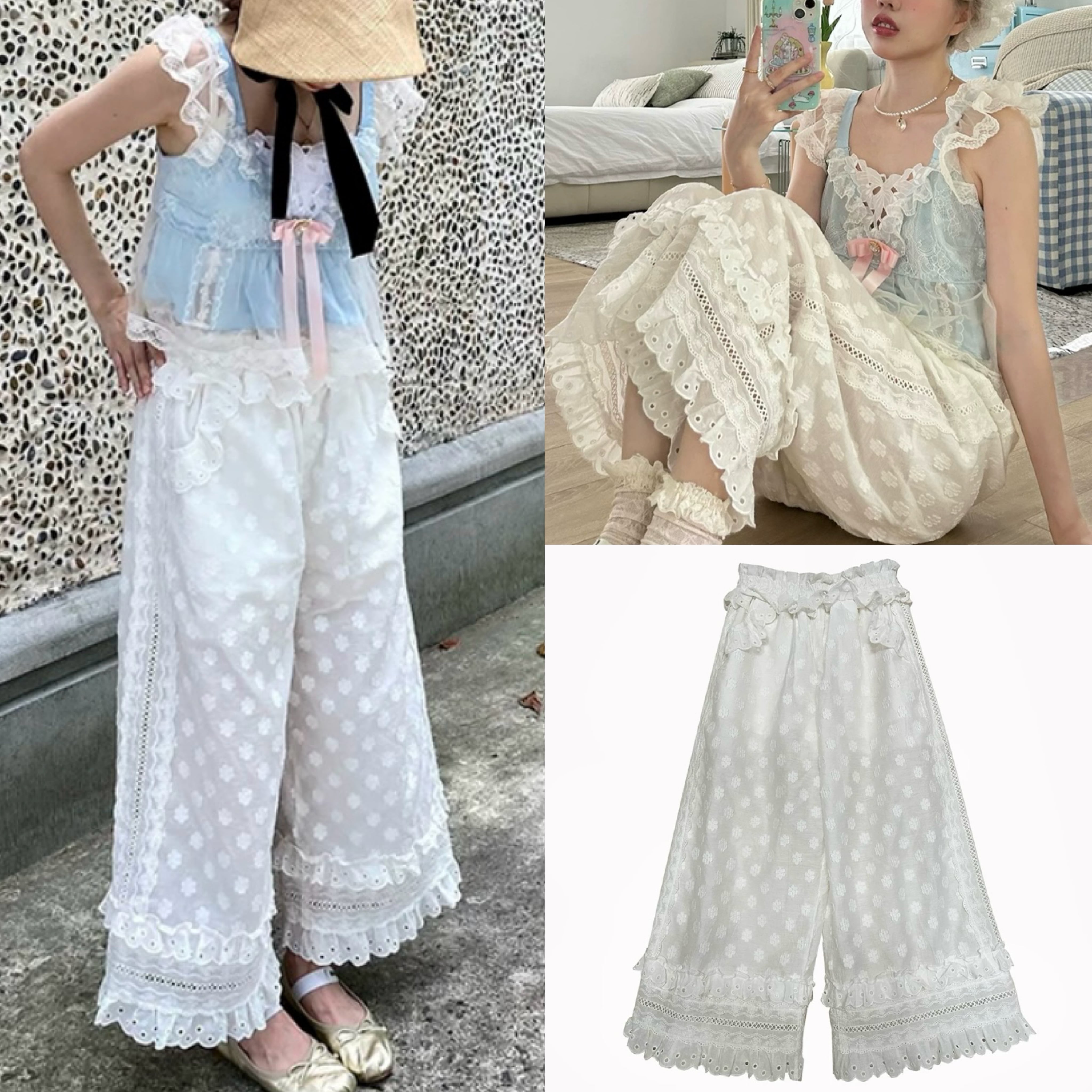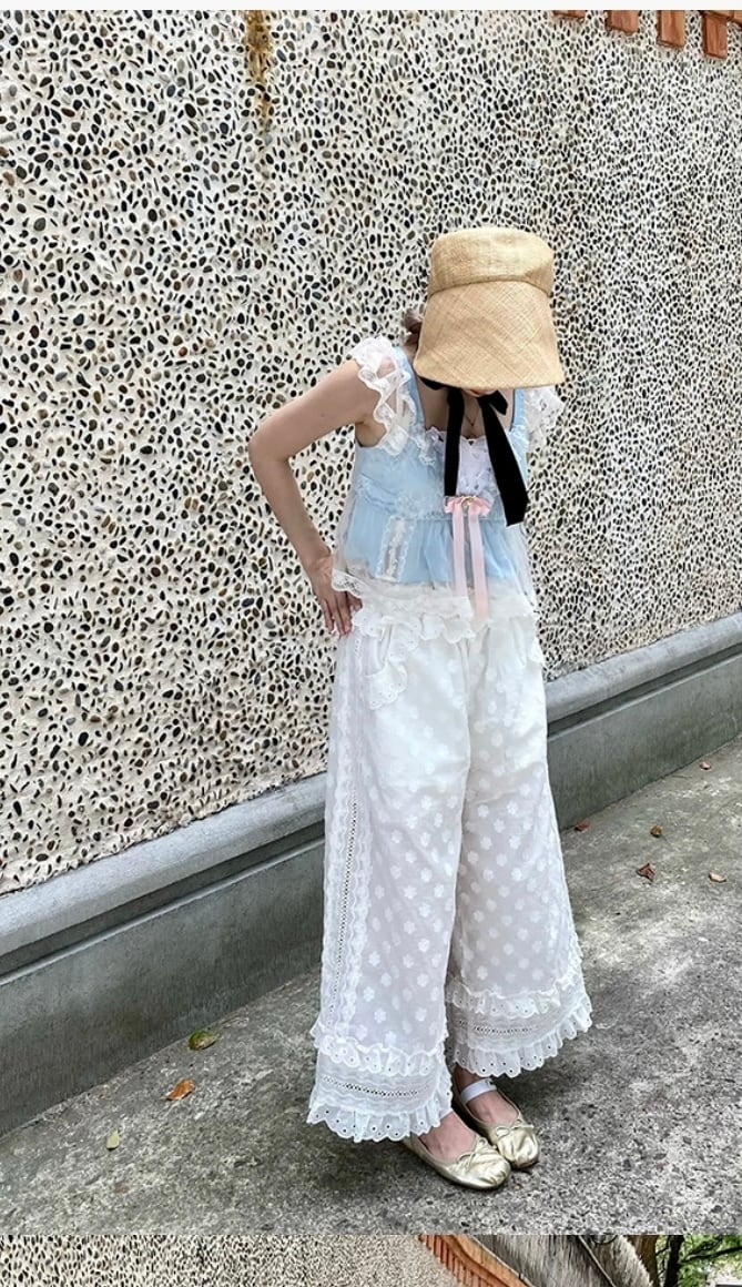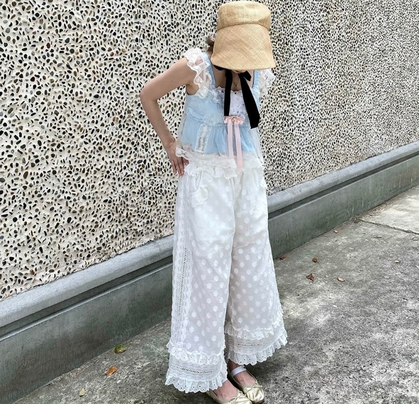 【パンツ】白 ホワイト ガーリー パンツ ズボン 原宿 ボトムス かわいい