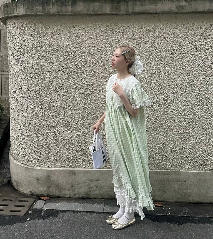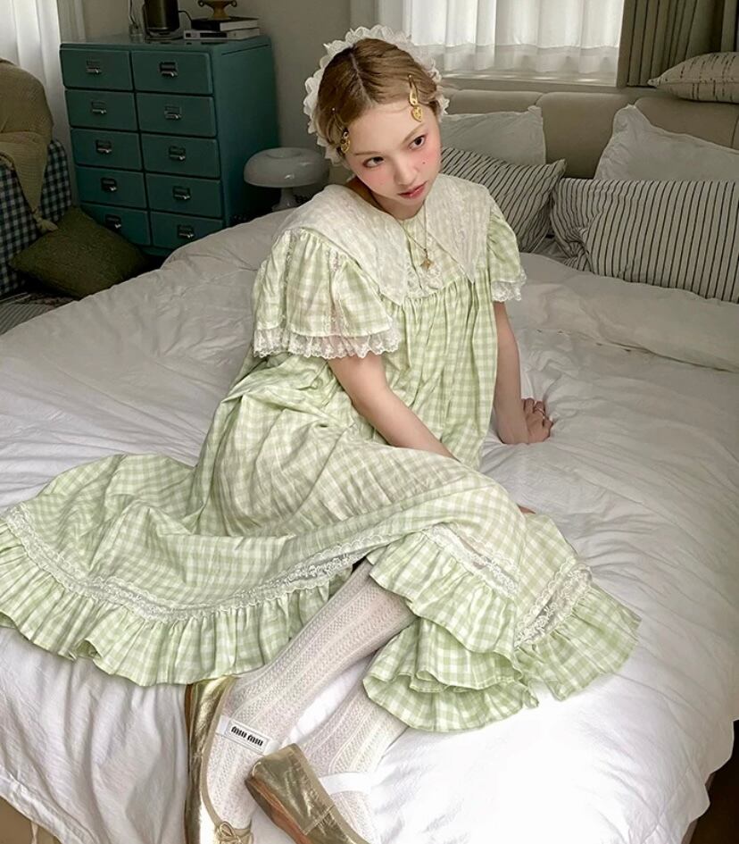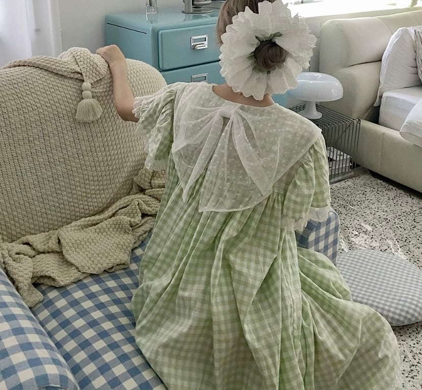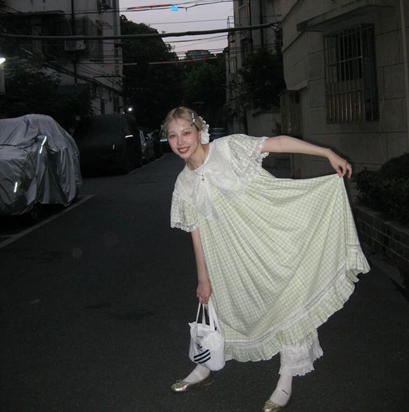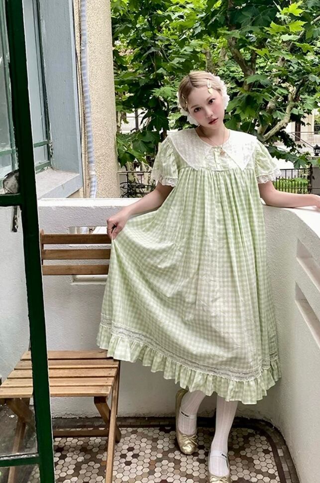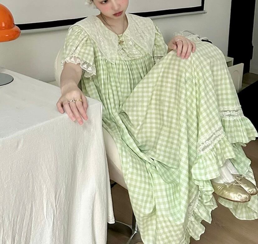 緑 ブラウス チェック 丸襟 ガーリー ゆったり 原宿 可愛い ブラウス XL