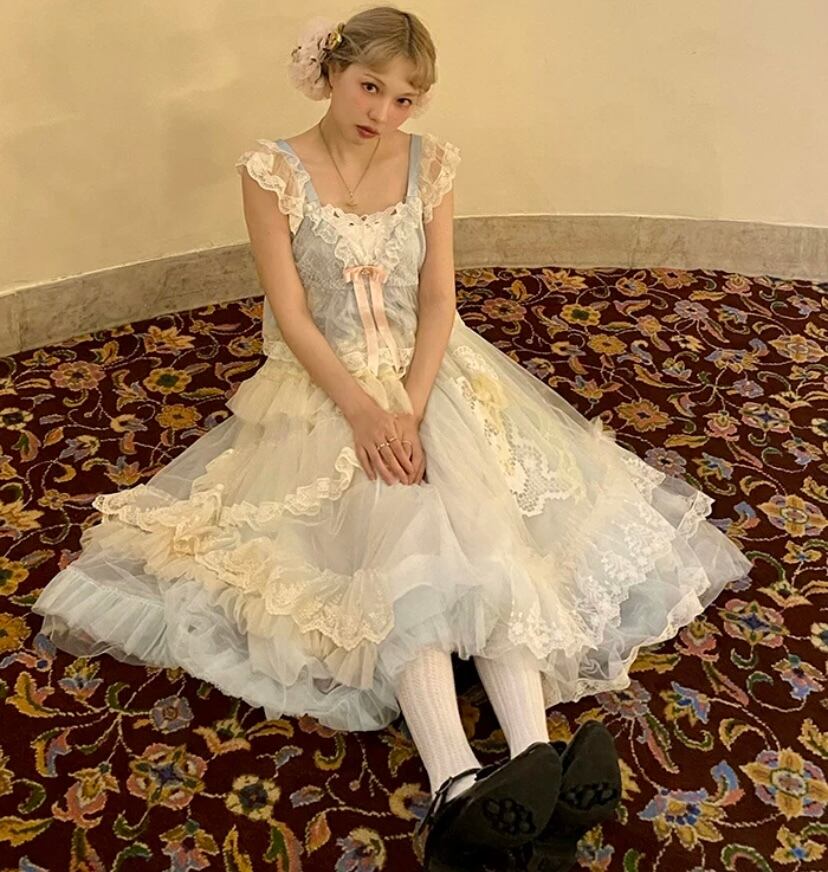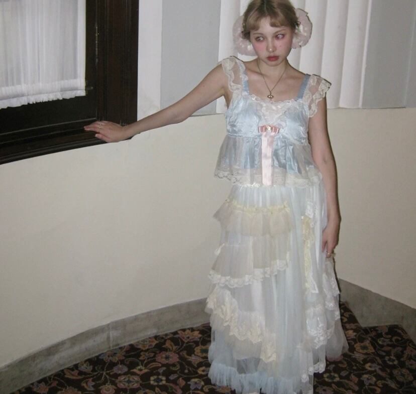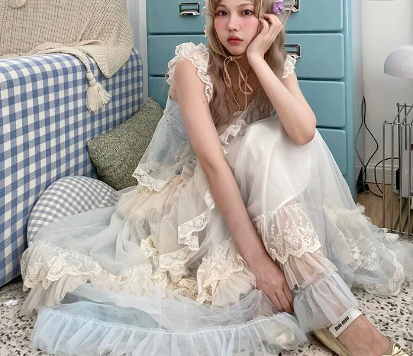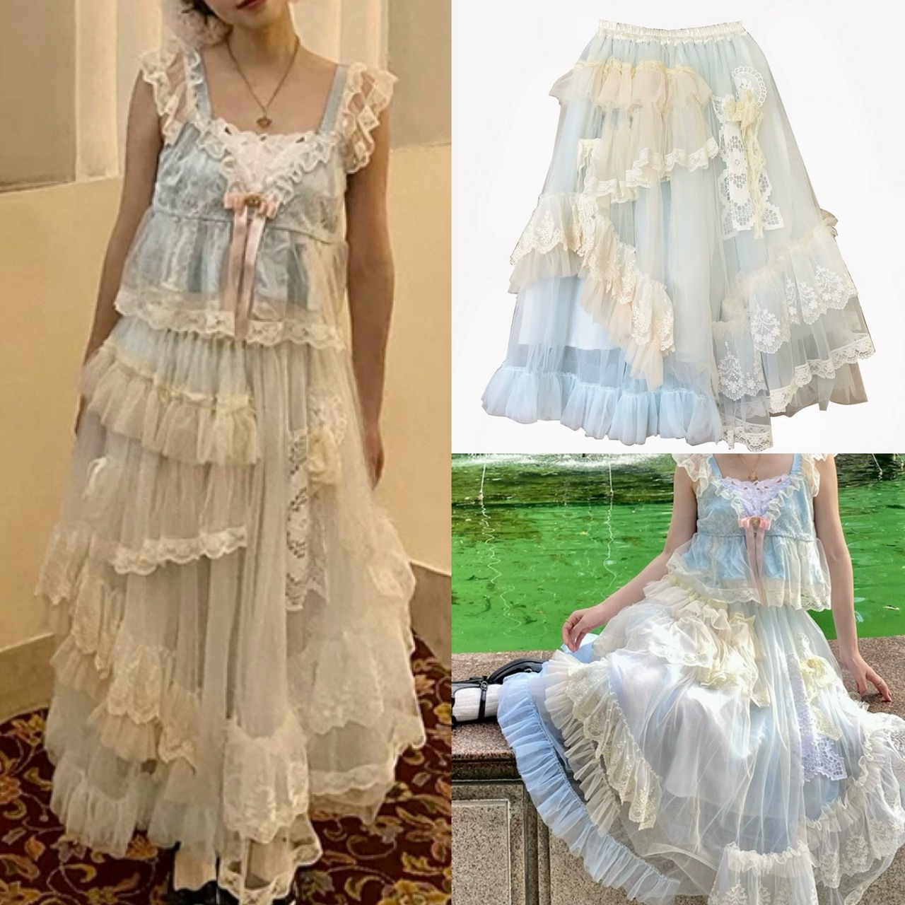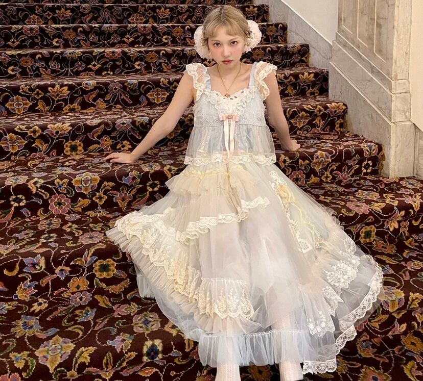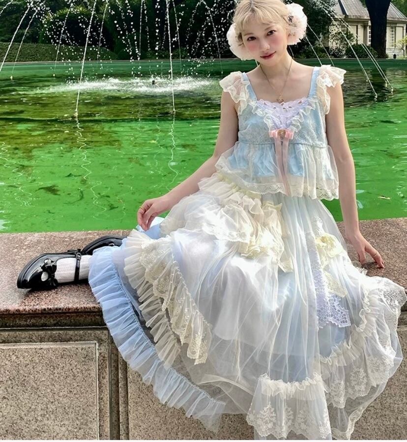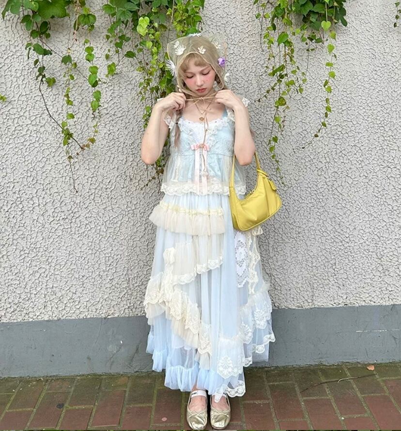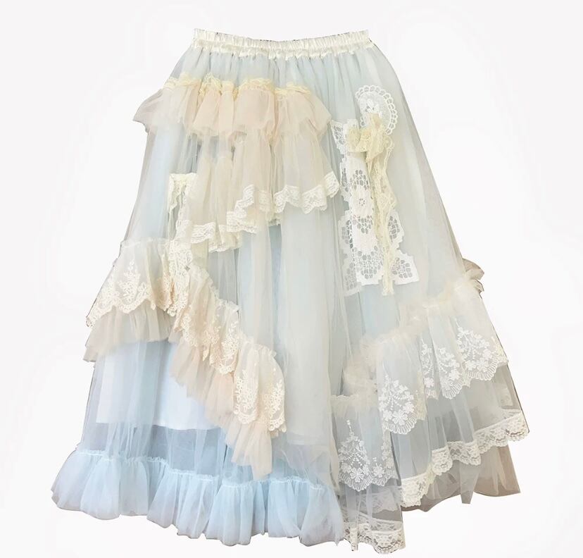【スカート】白 ホワイト ガーリー 可愛い 姫 原宿 マキシ レース 可愛い ドレス