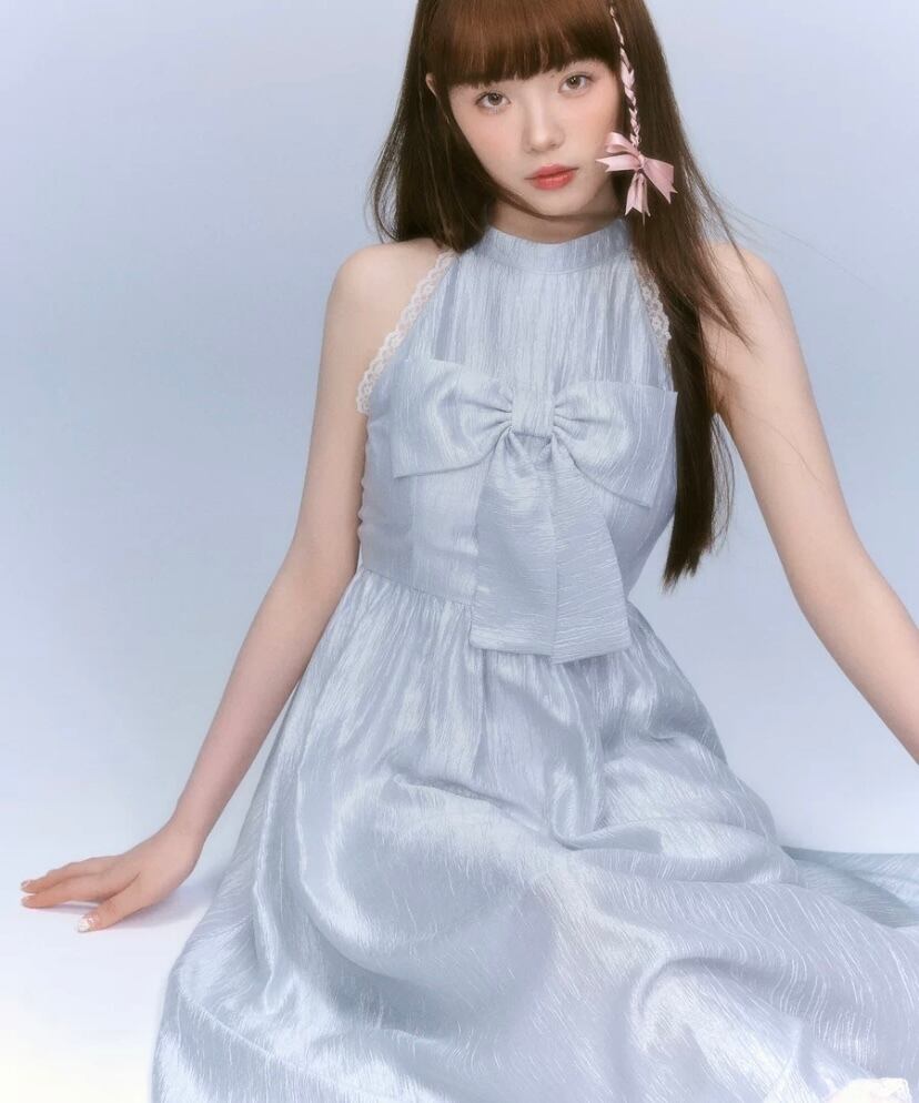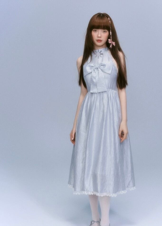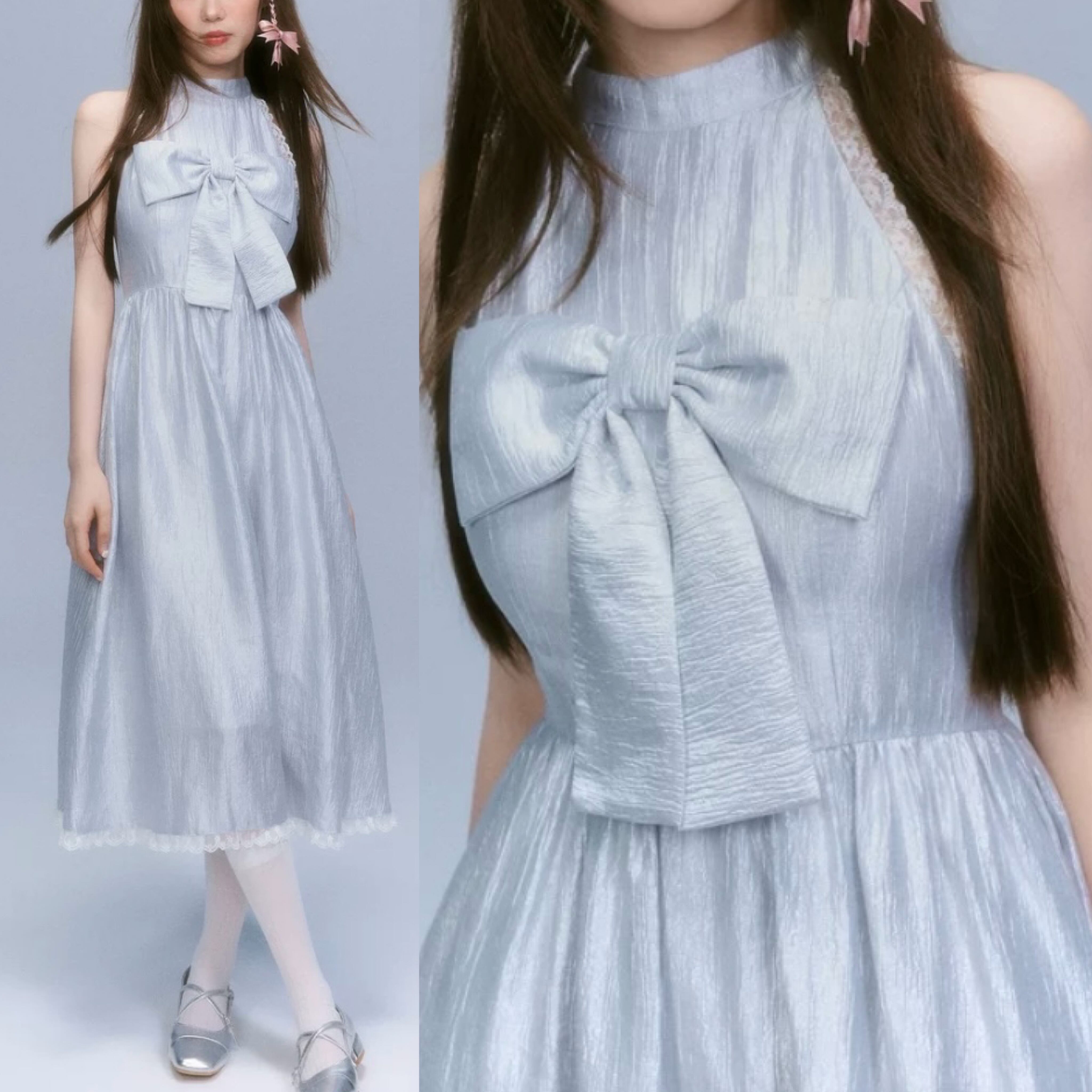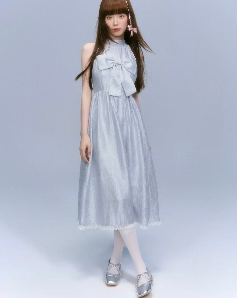 水色 可愛い ガーリー ワンピース リボン ブラウス 原宿