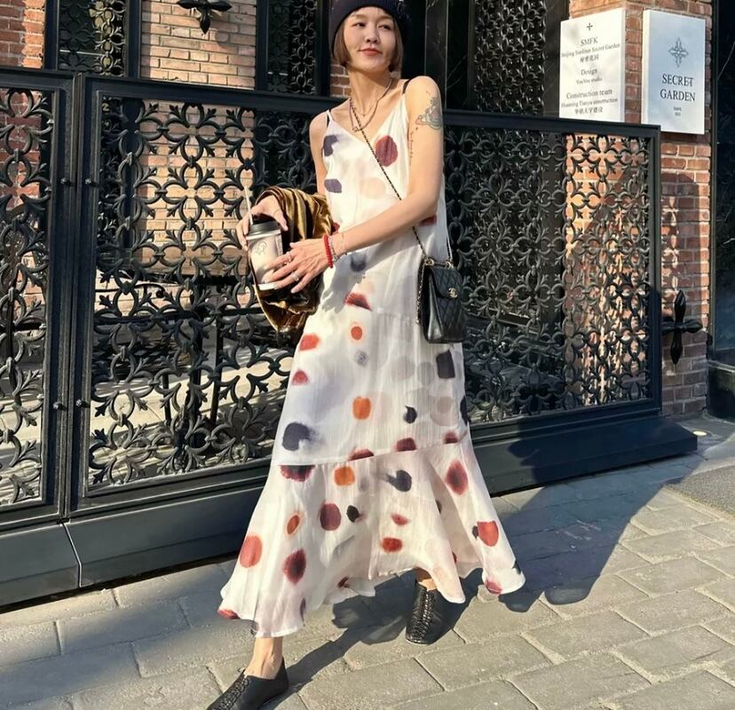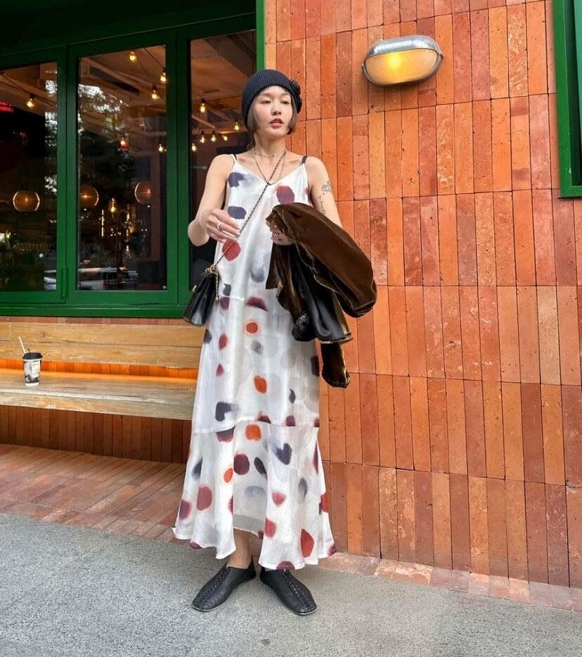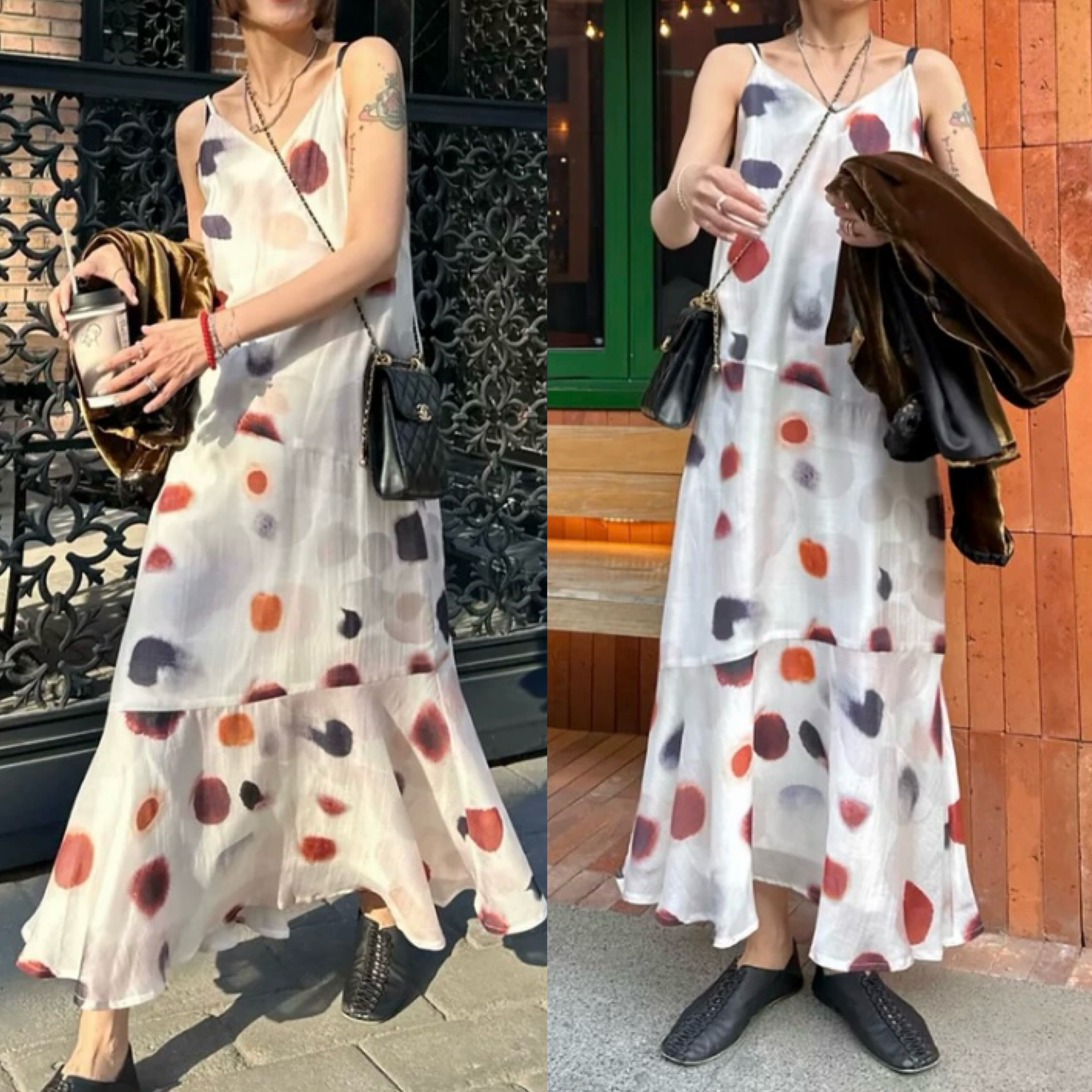 茶色 黄色 キャミソール ワンピース 白 水玉 ドット