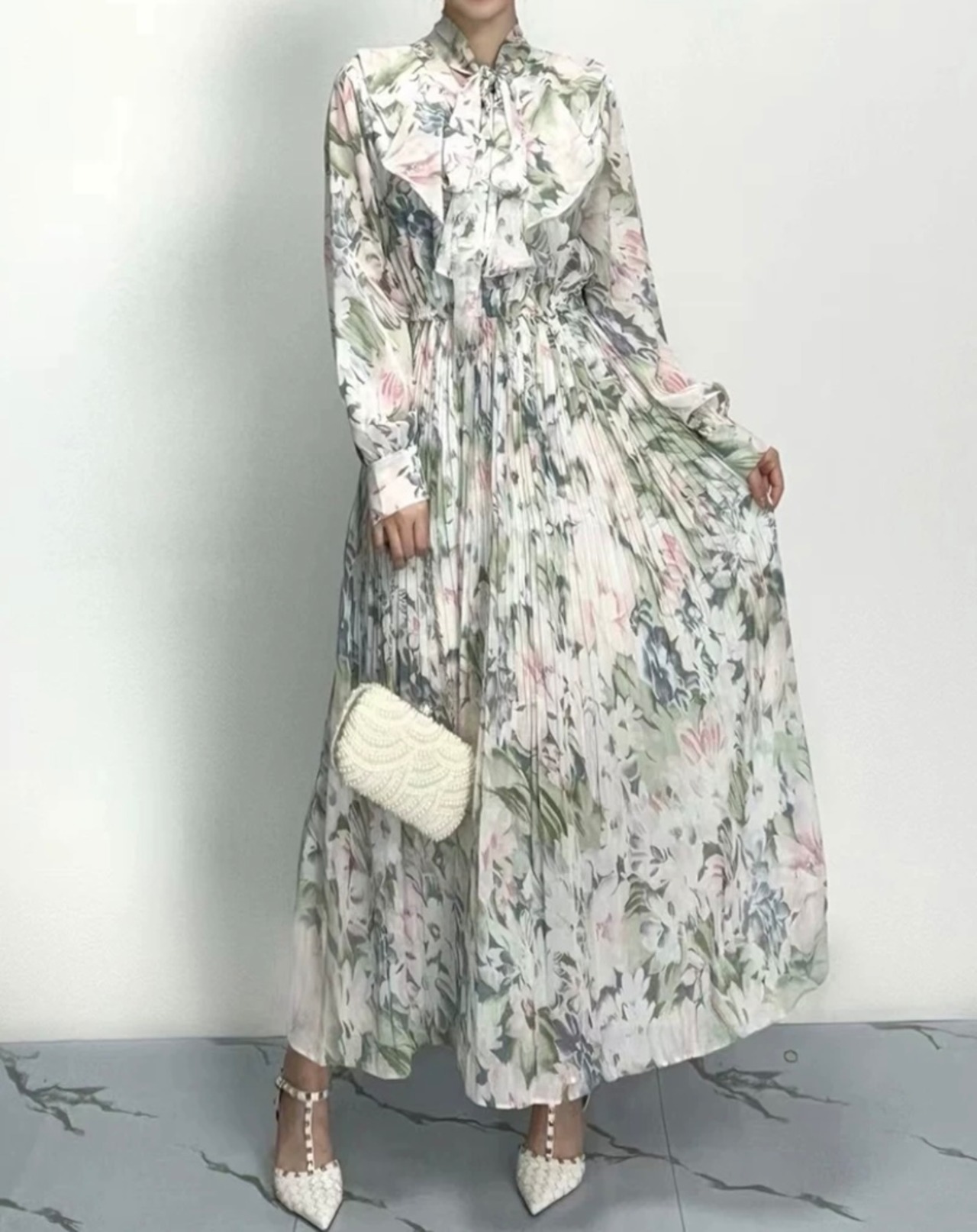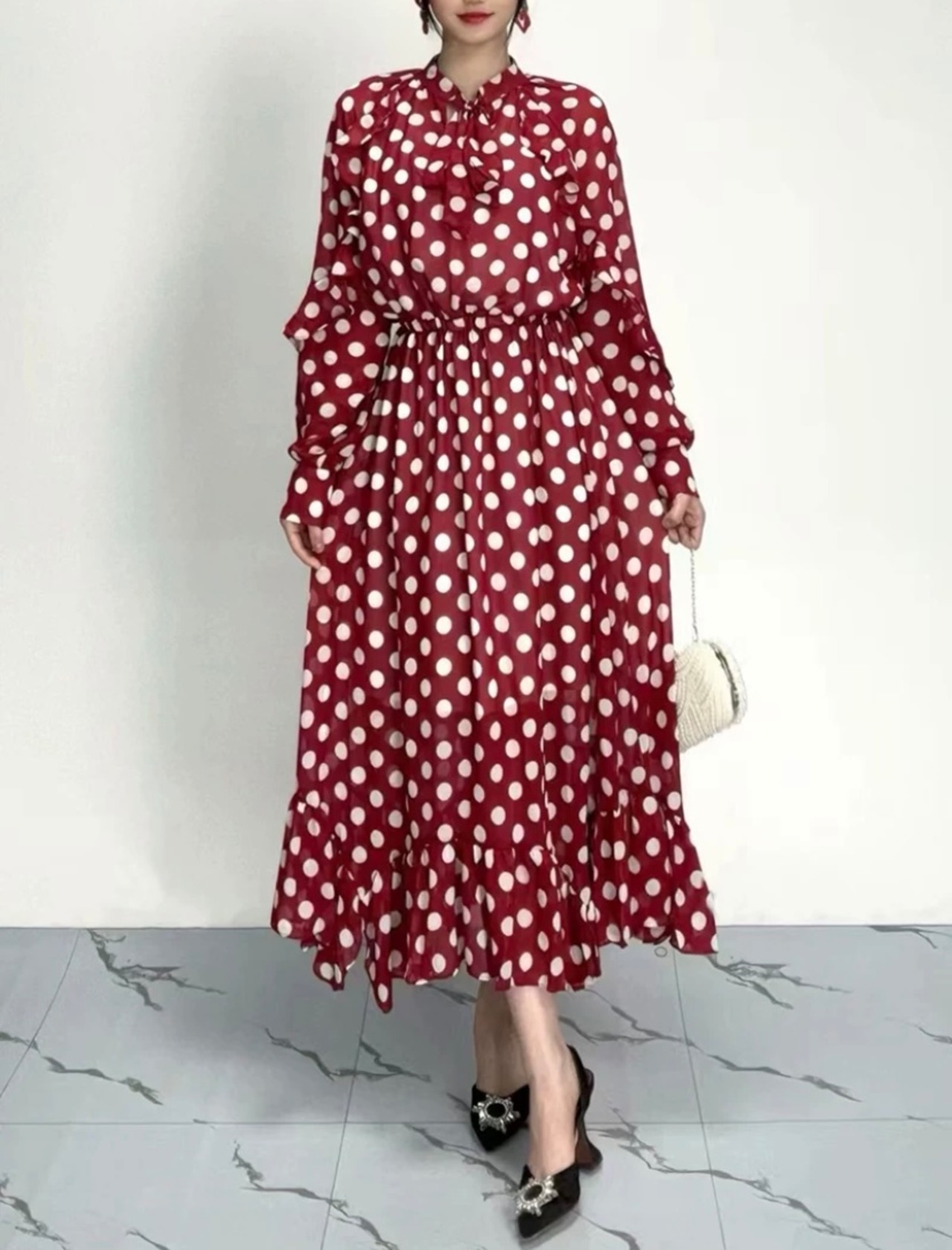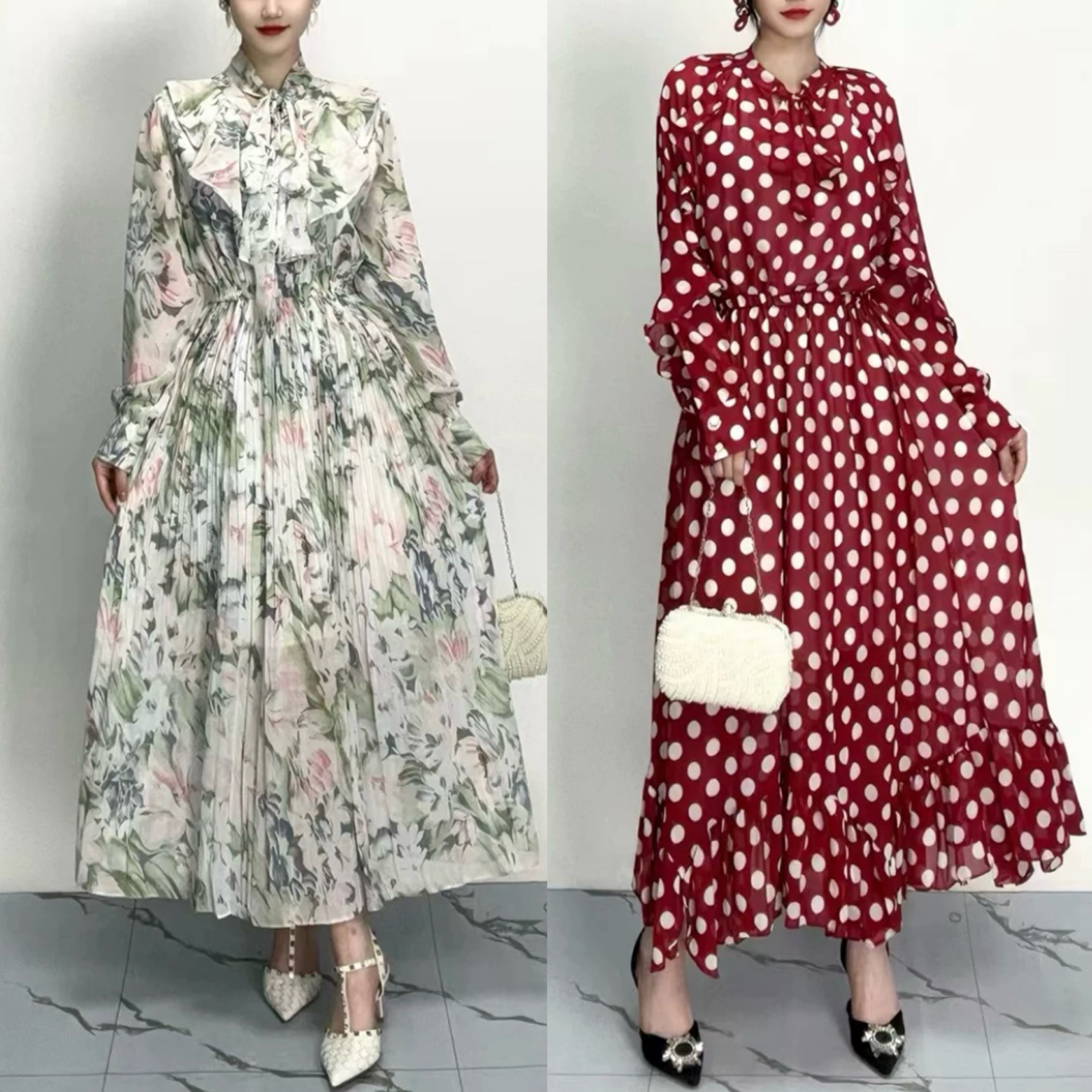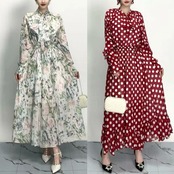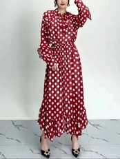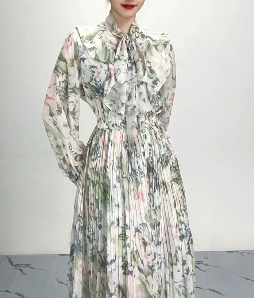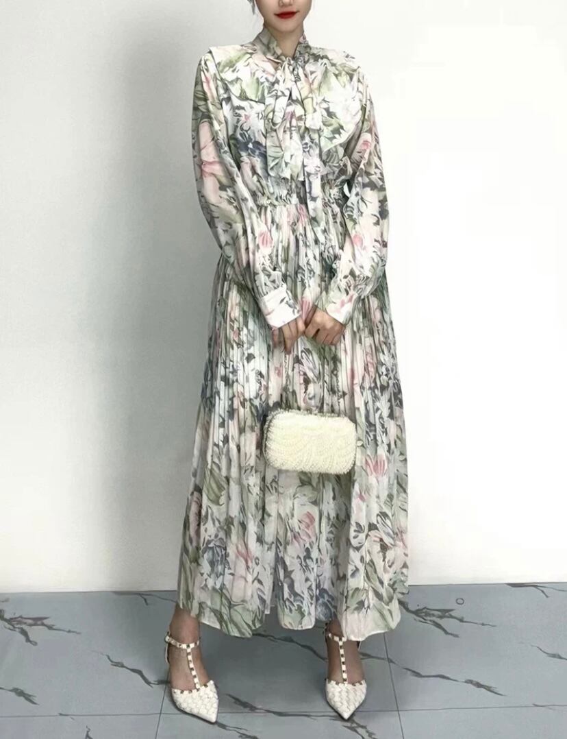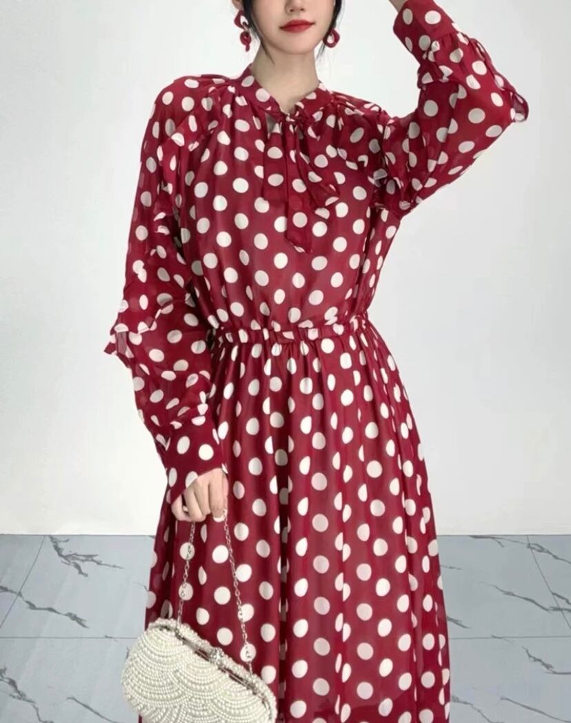 水玉 赤 茶色 グレー 水色 花柄 ゆったり フラワー リボン ブラウス ワンピース XL